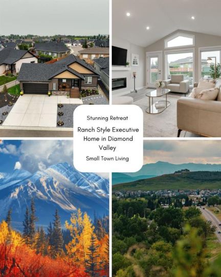 Executive Custom-Built Bungalow – Just 30 Minutes from Calgary! This beautiful ranch-style bungalow is located in the serene community of Riverwood Estates. Less than a year old and protected by full builder warranties - offering peace of mind, this one-level home combines comfort, style, and modern convenience. The open-concept living area features vaulted ceilings in the kitchen, dining, and living rooms, creating an airy and inviting atmosphere. A wall of rear windows fills the space with natural light, while beautiful LVP flooring flows seamlessly throughout. At the heart of the home, the designer gourmet kitchen features a walk-in pantry, full-height cabinetry, stainless steel appliances, a sleek chimney hood, and a stylish island—perfectly balancing everyday function and entertaining appeal. Luxury upgrades throughout include a built-in California closet, energy-efficient triple-pane windows, quartz countertops and backsplash, and dimmable lighting. The oversized, extra-high double attached garage provides ample space for vehicles and storage, ideal for commuters seeking functionality with flair. A mudroom off the garage adds convenience and organization. Both bathrooms are spa-inspired: the primary ensuite features a full-tile walk-in shower, while the second bathroom showcases a full-tile bathtub and shower combination. Step outside to enjoy morning coffee on the welcoming front porch or relax on the spacious backyard deck. The newly landscaped, low-maintenance yard has been thoughtfully designed and will flourish beautifully in the years to come—allowing more time to enjoy hobbies, entertaining, relaxing, or soaking in the peaceful surroundings. The unfinished basement provides a blank canvas for your personal touch—ideal for creating a media room, home gym, or additional living space tailored to your lifestyle. Perfectly located, this home is just minutes from medical clinics, pharmacies, and Oilfields General Hospital, offering peace of mind and convenient access to healthcare. Diamond Valley is renowned for its tranquil lifestyle and direct access to the scenic Sheep River walking paths, making it one of the most sought-after communities outside the city. Nearby shops, restaurants, schools, golf, and local markets for groceries make daily living effortless. Okotoks is only 15 minutes away, and Calgary is just 30 minutes—providing the ideal balance of small-town convenience and city access. This home blends style, practicality, and endless possibilities. A cinematic lifestyle video showcases the home’s design and peaceful setting. Book your showing today and experience the best of Riverwood Estates living.