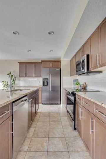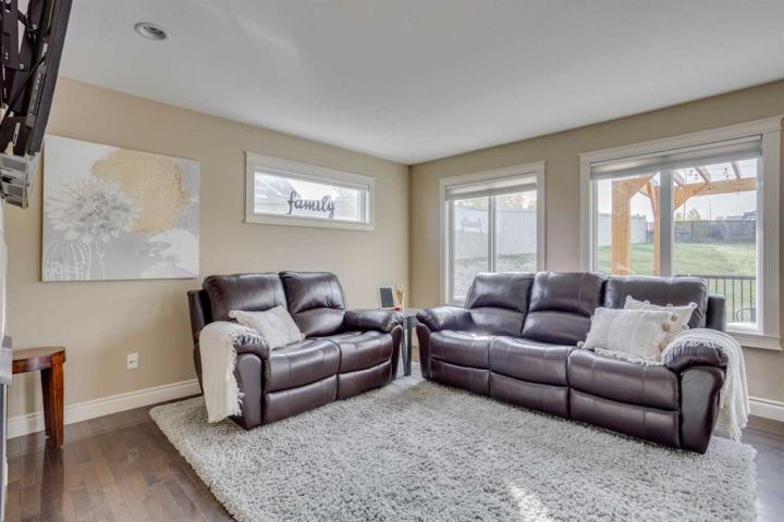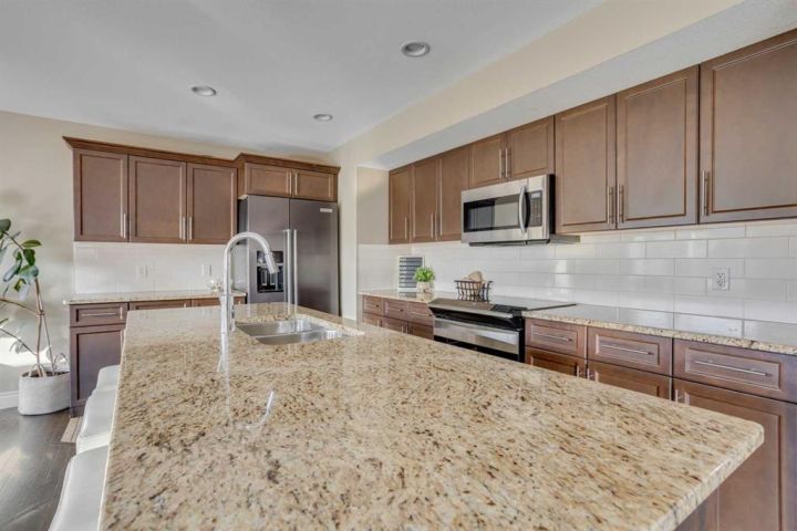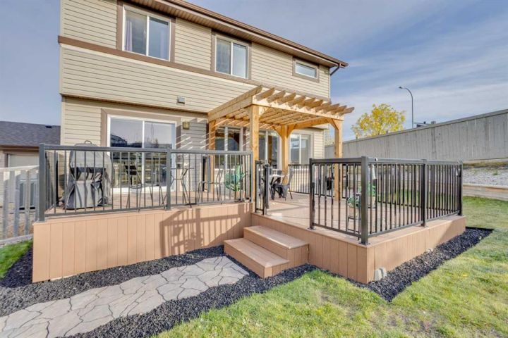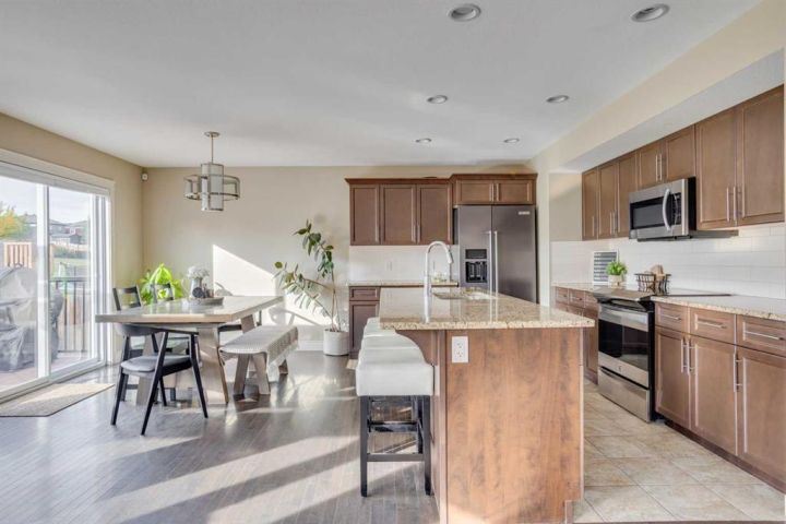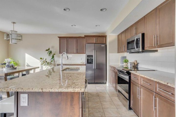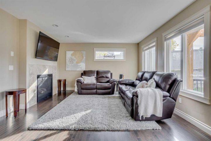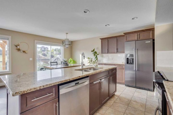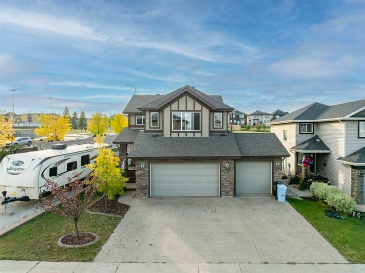 OPEN HOUSE SUNDAY OCTOBER 5th 1-3pm. TRIPLE CAR HEATED DRIVE-THROUGH GARAGE | MASSIVE 10,653 SQ.FT. CORNER LOT | RV PARKING | BACKING ONTO GREEN SPACE. Welcome to 104 Diamondstone Ridge, a beautifully designed home situated on an expansive corner lot in a highly desirable neighbourhood. Offering over 10,000 sq.ft. of fully landscaped property, this home is ideal for families, professionals, and hobbyists alike—especially those who need extra space for vehicles, toys, or RVs! Step inside to discover a thoughtfully laid out main floor, featuring a stylish home office with a two-way fireplace, shared with the spacious living room—perfect for cozy evenings and elegant entertaining. The chef-inspired kitchen is outfitted with granite countertops, stainless steel appliances, a central island, and plenty of cabinetry and prep space. The adjoining dining nook overlooks the backyard and offers direct access to the large composite deck, perfect for outdoor gatherings. The fully fenced backyard is truly a retreat—complete with access to walking trails and green space, a fenced dog run, and side gate entry to an additional RV or trailer parking pad. Upstairs, you'll find three generously sized bedrooms, including a luxurious primary suite with a spa-like ensuite featuring a soaker tub, separate shower, and access to a large walk-in closet. This level also includes laundry facilities, extra storage, an additional 4 PCE bathroom, and a bright bonus room—ideal for a media space or kids' playroom. The fully developed basement features a separate entrance, two additional bedrooms, a fourth bathroom, a large recreation room, and even more storage—making it perfect for guests, a growing family. The. basement offers electric heat as a second course of heating to keep the basement warm during those colder months. The highlight of this property is the heated triple car garage—with drive-through access to the backyard, 220V power, built-in cabinetry, and ample room for tools, vehicles, and workspace. A custom RV parking pad sits alongside the home, offering even more flexibility. Additional upgrades include: Central A/C, newer shingles and siding (2016), natural gas line to the BBQ, and much more! This one-of-a-kind property offers space, style, and smart functionality—all in an unbeatable location. Don’t miss your chance—book your private showing today!