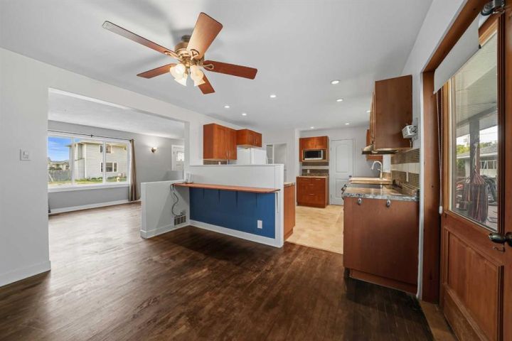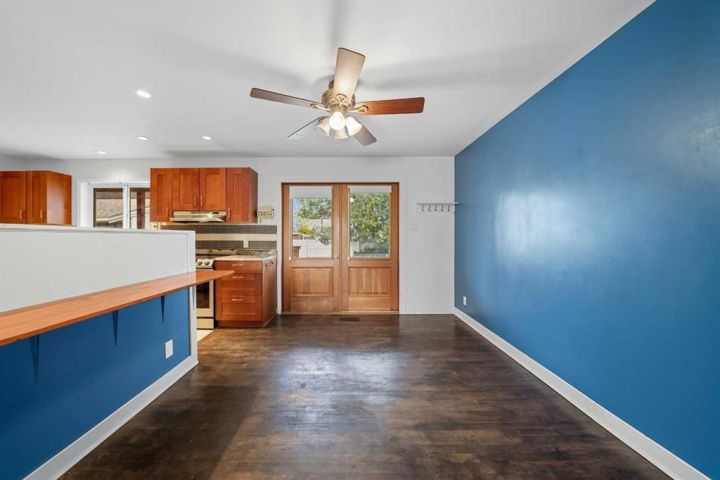 Welcome home to this inviting 4-bedroom, 1.5-bath single-family residence in the growing community of Springbrook. Thoughtfully laid out, the main level flows easily from the entry to a comfortable living & dining space as well as the large open kitchen with breakfast bar. Double doors leads out to the beautiful wrap around deck. Three bedrooms & 1 bathroom are conveniently located together on the upper level, providing a private sleeping wing and family flexibility. The basement has one bedroom that just needs trim and flooring to complete. The remaining space is a blank canvas: finish it to create a rec room, home office, gym, - the potential is yours. Outside you will find a good sized fenced yard, a detached single garage & long driveway for extra parking. Well-situated and full of charm, this home combines classic comforts with room to grow.