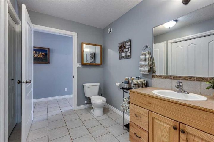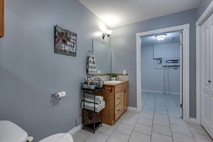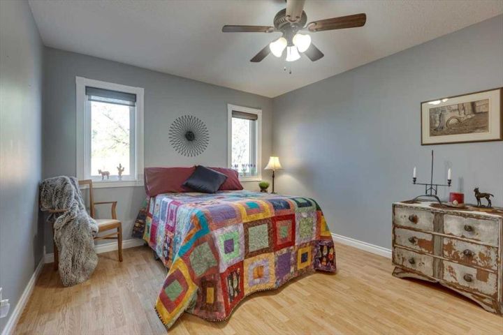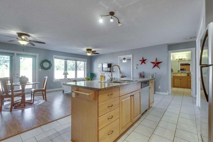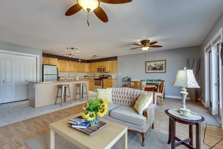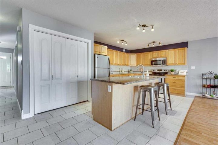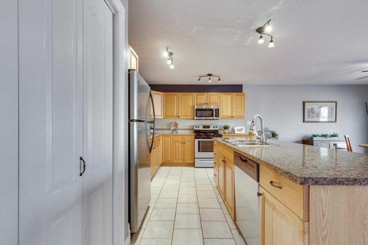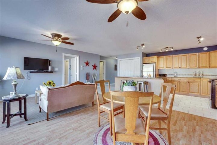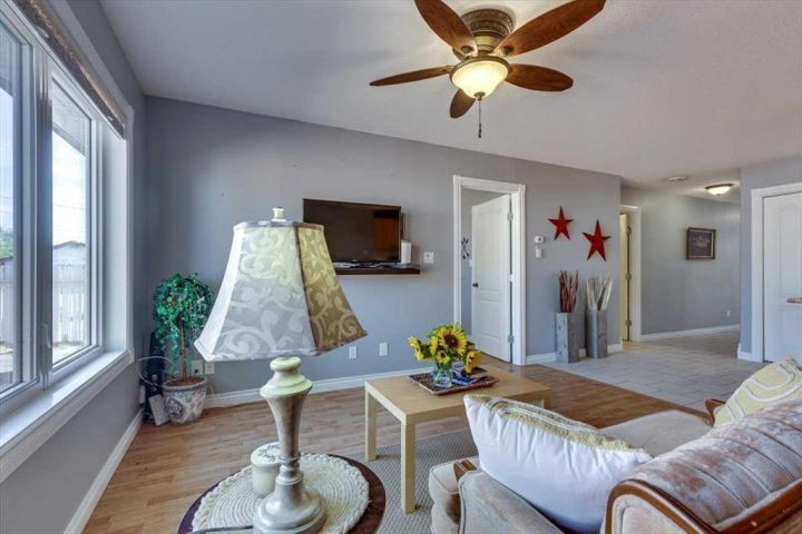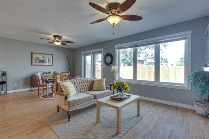 STYLISH, WELL PLANNED, OPEN CONCEPT 1/2 DUPLEX WITH NO CONDO FEES IS FOR SALE IN INNISFAIL! This 3 bed/2 bath beauty has many great features: All living space is on one floor (No basement or stairs), No carpet (laminate & ceramic tile), kitchen island for extra seating, stainless steel appliance's, upgraded ceiling fans, tiled back splash, custom closet system in master bedroom, 2 way cheater door to 4 PC bathroom, blinds, extra wide doors and extra storage cabinets in the large laundry room. There are lots of windows that let in the natural light plus the door from the dining/living room leads to a private fenced patio with interlocking paving stones area that's great for entertaining. Yard maintenance is a breeze with having grey stone and shrubs to give it a classy curb appeal in the front yard. The heated attached double car garage is insulated, drywalled (17'8"x22'11") with extra storage plus hosts the energy efficient hot water boiler system for the in floor heating & air exchanger. This is a very well planned home that is central to walking distance to all the amenities.