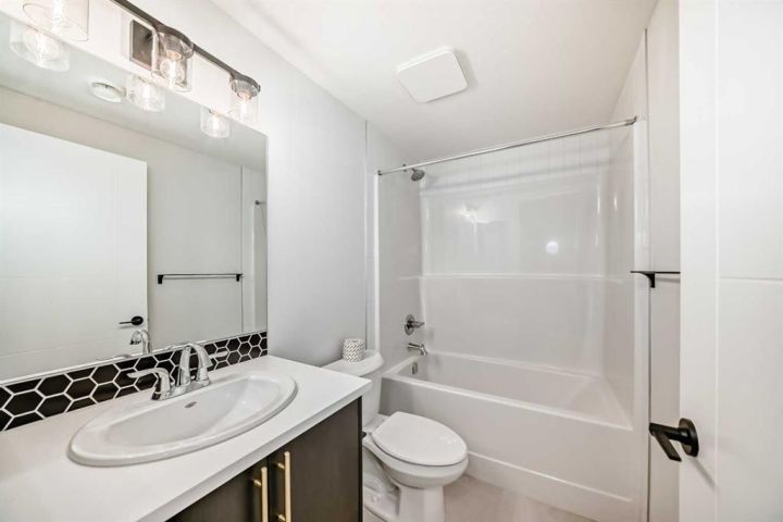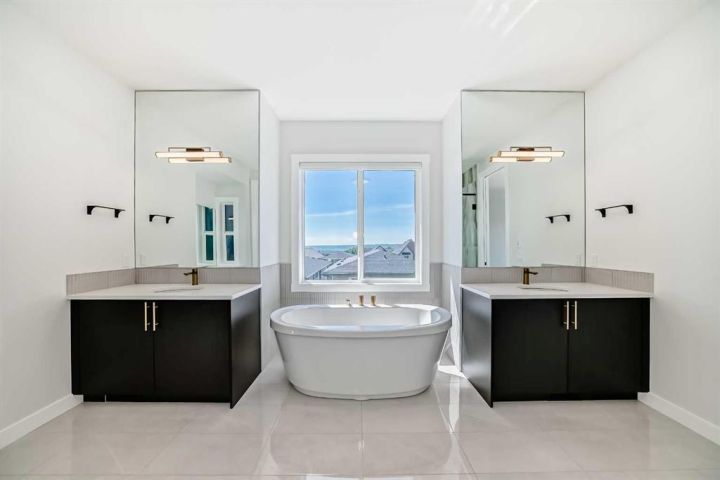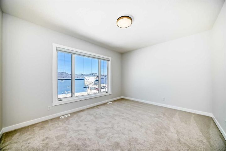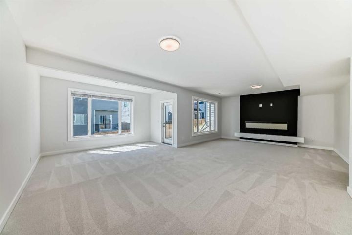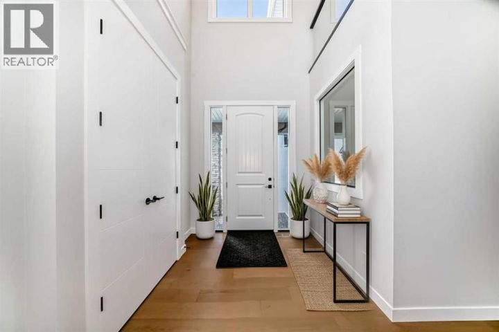 Newly Built, Never-Occupied Executive Shane Homes residence situated in the prestigious Aspen Spring Estates in Springbank Hill. This stunning property blends striking design with everyday functionality while offering exceptional value and elegance. With over 4000 sqft of thoughtfully designed living space, this home delivers an elevated lifestyle in one of Calgary’s most sought-after neighbourhoods. Step inside to an architecturally striking open-concept main floor that impresses at every turn. High ceilings with large windows, a spacious flex room ideal for a home office or den, a bright and inviting living room, and a sleek 2-piece powder room. Large windows flood the space with natural sunlight, highlighting the beauty of the hardwood flooring that flows throughout the main level. At the heart of the home, the chef-inspired kitchen is both stylish and functional. It features stainless steel appliances, a 67-inch refrigerator, a gas cooktop, Vent-A-Hood, large upgraded countertops, a convenient walk-through pantry and a private spice kitchen—making it the perfect hub for family living or entertaining guests. The dining area opens seamlessly to a south-facing deck and backyard, offering the ideal indoor-outdoor lifestyle. Upstairs, the primary retreat offers a serene escape, complete with a generous walk-in closet and a spa-like 5-piece ensuite. Two additional bedrooms, a well-appointed main bathroom, a bright bonus room, and a laundry room complete the upper level—designed with convenience and growing families in mind. The finished walkout basement provides incredible versatility with two more bedrooms, a spacious living area, a full bathroom, and a kitchen rough in—ideal for multi-generational living or guests. Additional upgrades include: an oversized island with waterfall edge and hidden cupboards for extra storage, elegant window coverings, pot lights throughout the house, vaulted ceilings, widened staircase with glass railings, 10 mm glass in the private office, luxurious primary ensuite with oversized shower, drywalled and insulated garage and much more. Located just minutes from Aspen Landing Shopping Centre, top-rated schools, LRT and transit, walking paths, parks, and with easy access to the mountains and close to downtown, this home offers unmatched convenience and connectivity. Enjoy peace of mind with comprehensive new home warranty coverage, ensuring your investment is protected as you settle into this exceptional property. The home is vacant and move-in ready—this is luxury living redefined in Springbank Hill!