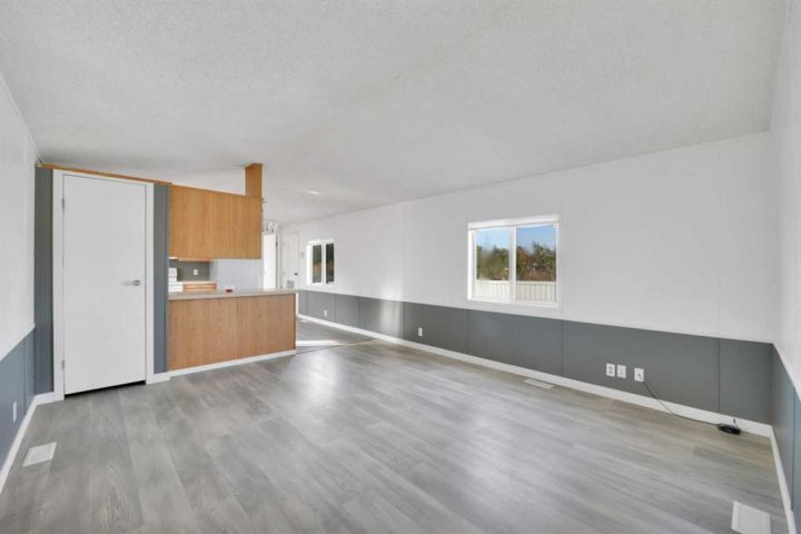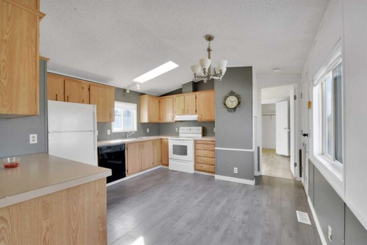 Welcome to 1911 20 Street in the charming community of Delburne! This well-maintained 1,123 sq ft, 3-bedroom, 2-bathroom mobile home sits on a spacious corner lot, fully fenced for privacy and backing onto peaceful greenspace—a perfect setting for families, pet owners, or anyone who values a bit of extra room to breathe. Step inside to a large entryway, offering plenty of space for coats, boots, and seasonal storage. Just off the foyer is a versatile flex space that can serve as a home office, playroom, or hobby space—whatever suits your lifestyle. The home features updated vinyl plank flooring throughout, giving it a modern feel with easy maintenance. The primary bedroom includes a walk-in closet and a private 3-piece ensuite, offering a quiet retreat at the end of the day. Two additional bedrooms and another full bathroom provide comfortable living for family or guests. Outside, you'll find a large storage shed and room to garden, entertain, or simply relax. The tin roof adds durability and peace of mind. Located just a short walk from Fawn Meadows Golf & Country Club, this home is perfect for golf enthusiasts or those who enjoy outdoor recreation. Affordable, comfortable, and located in a welcoming small-town setting—this is a great opportunity to own a home you’ll love!