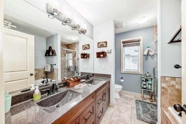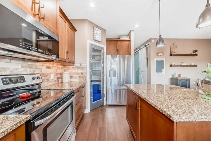 Open House Sat Oct 4 at 12-2Pm | STUNNING VIEWS | AMAZING PRICE! This CHARMING home offers many upgrades including beautiful wide-plank HARDWOOD, 9’ ceilings & A/C! This layout is well-designed for families, boasting a large dining area offering loads of space to entertain, a well-appointed kitchen with GRANITE & STAINLESS appliances, corner PANTRY with UPGRADED wood shelving, upgraded cabinets, and island with seating. Get COZY by the gorgeous STONE-FACED GAS fireplace with custom mantle & built-in shelves. This cheerful space is completed by a must-have OFFICE/DEN with privacy provided by the stunning BARN DOORS & a main floor powder room. Upstairs, enjoy MOUNTAIN VIEWS from the SUPERSIZED PRIMARY with walk-in closet & 5pc ensuite w/ JETTED TUB and oversized shower. Two more spacious bedrooms complete the level with a 4pc bathroom, UPPER FLOOR LAUNDRY room & custom linen closet for added storage. You will find the perfect place to relax in the PROFESSIONALLY finished basement featuring a HUGE rec room, 4pc bath, additional bedroom and tons of storage. Get ready to move in & enjoy the fully landscaped yard and attached DOUBLE CAR GARAGE. Watch your kids walk ONLY ONE BLOCK to school with many amenities, restaurants & shopping nearby. Quick commute to Calgary or to mountain adventures!