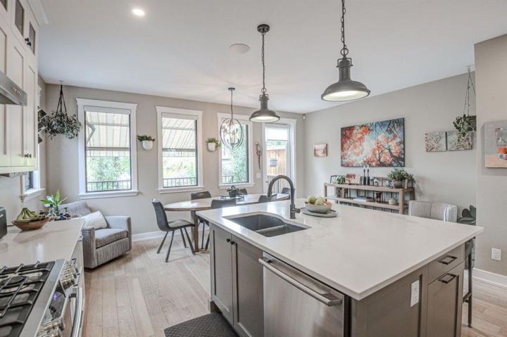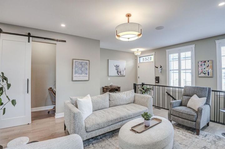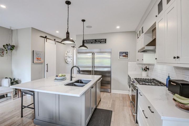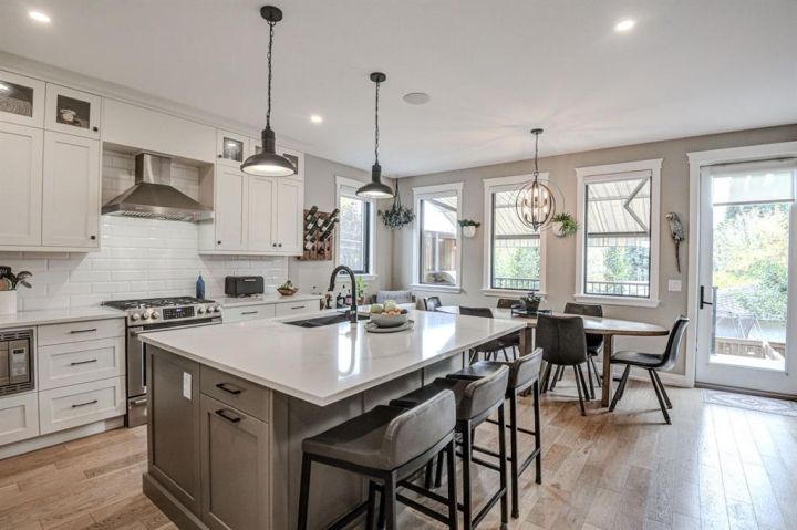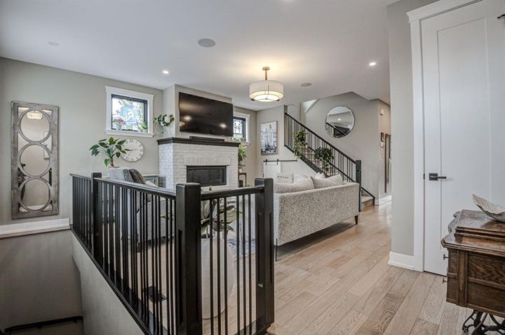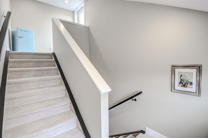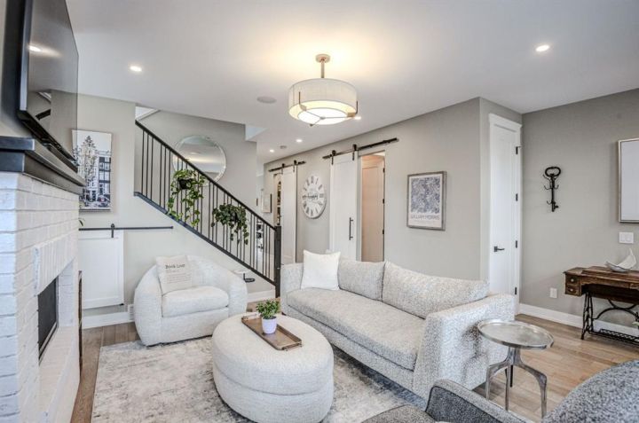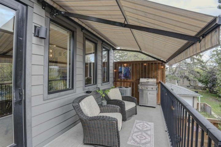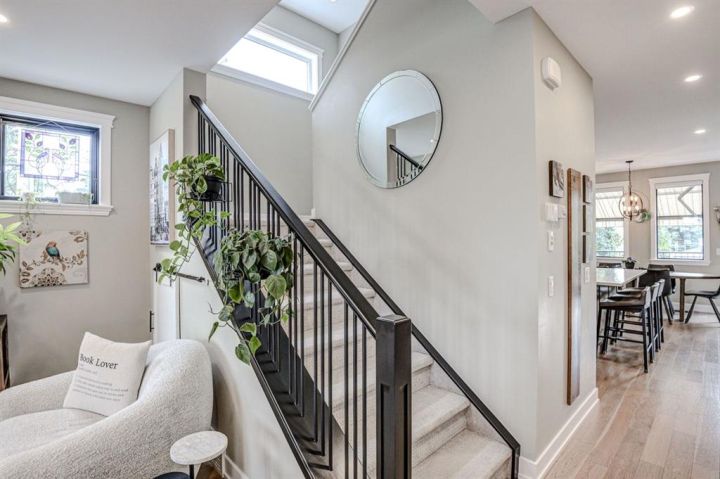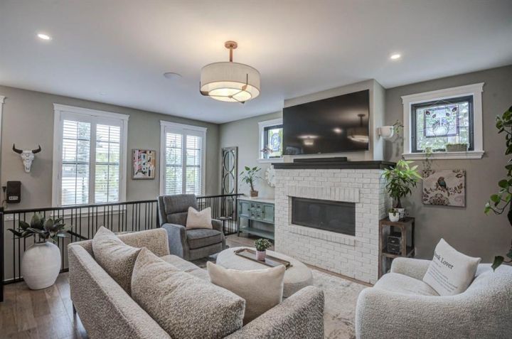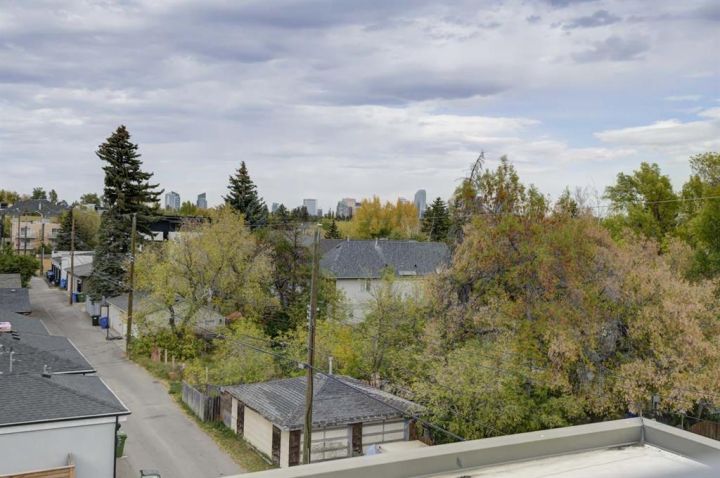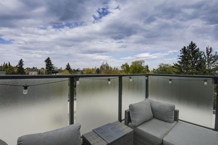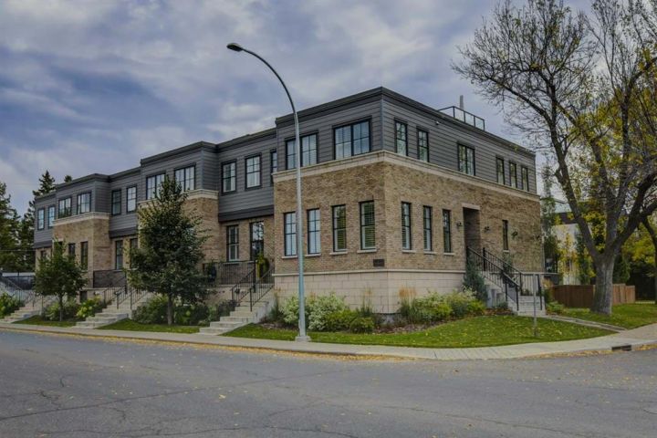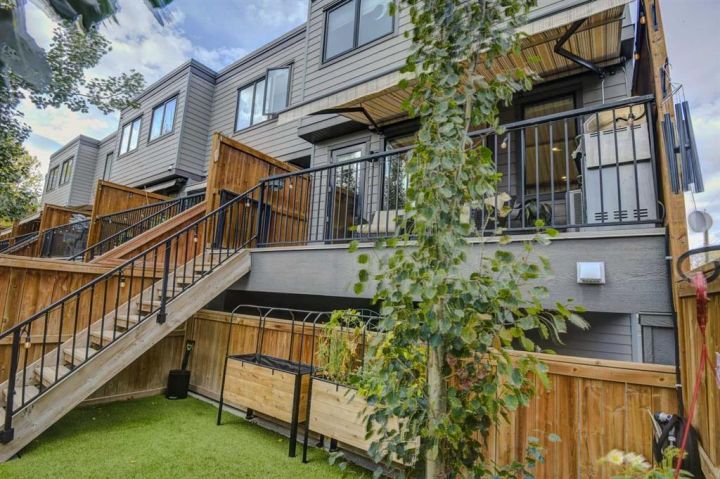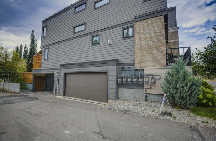 OPEN HOUSE OCT 4+5 SAT -SUN. 2-4 **Spectacular** Brownstone Townhome in Altadore S.W. Calgary – 3 Bed, 3 Bath | End Unit | Over 1,900 Sq. Ft. This elegant and rare brownstone offers over 1,900 sq. ft. of refined living across 2 spacious levels, with a third-floor rooftop patio that boasts stunning downtown views. Access your heated double attached garage directly off the back lane. As the end unit with 8 extra windows, this home is flooded with natural light and designed for both luxury and functionality. Located just steps from River Park, Sandy Beach, top-rated schools, shops, and dining—this home delivers the perfect balance of urban living and community charm. Main Floor Features: Bright layout with 10’ ceilings; Wide-plank white oak engineered hardwood flooring; Huge gas fireplace with whitewashed brick surround; Custom 8-ft barn door and hidden kid/pet playroom under the stairs; Modern dual-tone kitchen featuring: 60” Electrolux fridge/freezer, Gas stove, range hood, microwave, garburator, and Large walk-in pantry with wood shelving; Quartz countertops, under-cabinet lighting, and extra-tall cabinetry; South-facing deck off the kitchen with motorized awning, artificial turf, and outdoor heater; Fully fenced private yard, unique to this complex; Front patio area. Second Floor – Private Living Quarters: Spacious primary suite with Spa-inspired ensuite featuring double sinks, in-floor heat, quartz counters, and private water closet; Walk-in closet with window; Two additional large bedrooms; 4-piece main bathroom with upgraded finishes. Third Level – Rooftop Patio Retreat: Access your private rooftop dura-deck patio; Panoramic downtown skyline views—ideal for relaxing or entertaining. Additional Features: Double attached heated garage with mudroom and utility area; High-efficiency furnace, central A/C; Water softener & reverse osmosis water filter system; Built-in stereo system on both floors; Solid-core 8-ft interior doors, pot lights, upgraded lighting; High-end window coverings including PVC shutters. This home is part of an exclusive 6-unit complex where no units have ever sold through MLS—a truly rare opportunity. Impeccably maintained and move-in ready, this brownstone home delivers the best of luxury, location, and lifestyle in one of Calgary’s most sought-after communities.