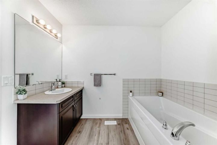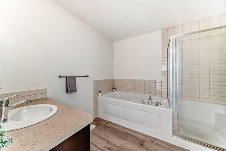 Click brochure link for more details** Welcome to this 2-storey home in the family friendly community of River Heights, offering over 1,557 sqft above grade! Step inside and experience the open-concept layout that combines comfort and style. The living room, dining area, and modern kitchen are ideal for everyday living and entertaining guests. The kitchen includes stainless steel appliances, a large island, and a Convenient and Spacious Walk-In Pantry. The fully fenced, spacious backyard, is an ideal space for fun-filled BBQs, and where kids and pets can play freely. Enjoy long-lasting, newer luxury vinyl plank flooring and carpet upstairs. The primary bedroom, with a Spacious Walk-In Closet, provides you space for rest. The private 4-Piece ensuite bathroom boasts a large soaking tub and a separate shower, for relaxation. Two additional bedrooms and a full bath provide you the space to include a workspace, kids bedrooms or a guestroom. The undeveloped basement provides the opportunity to customize and design your entire living space. You'll love the convenience and extra space of your Single Attached Garage, all year round. This home offers tremendous access to a host of features including stunning views of the Bow River, Mountain Views, Schools, Playgrounds, SLS recreation centre, Co-op Food and more. This move-in-ready home offers the right value and easy access to everything the town has to offer!