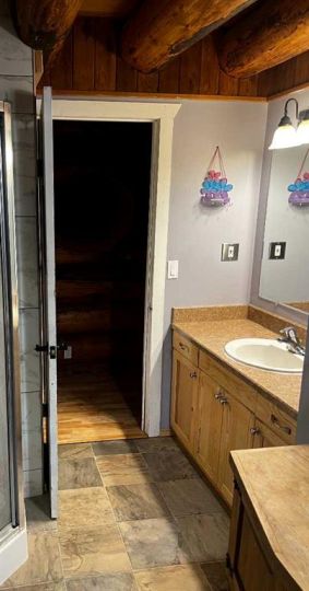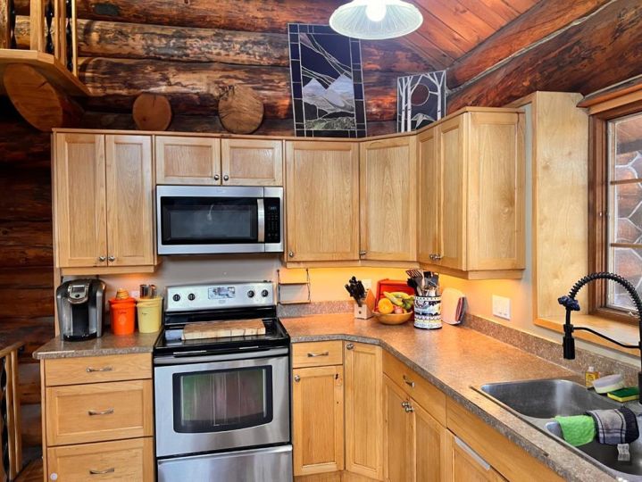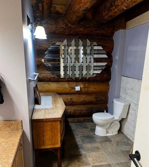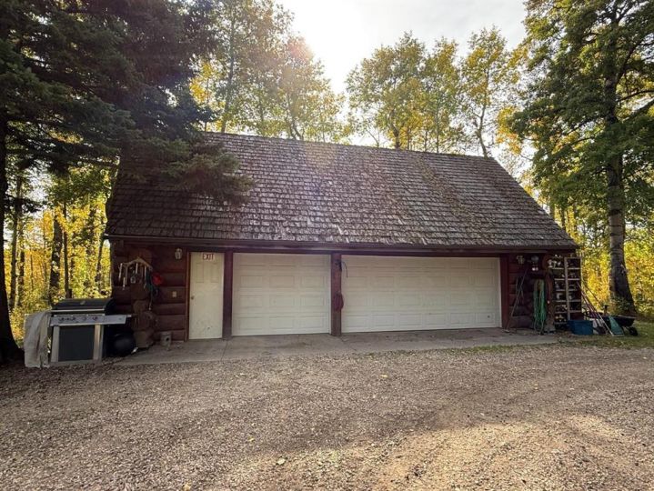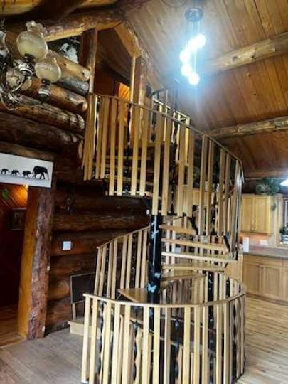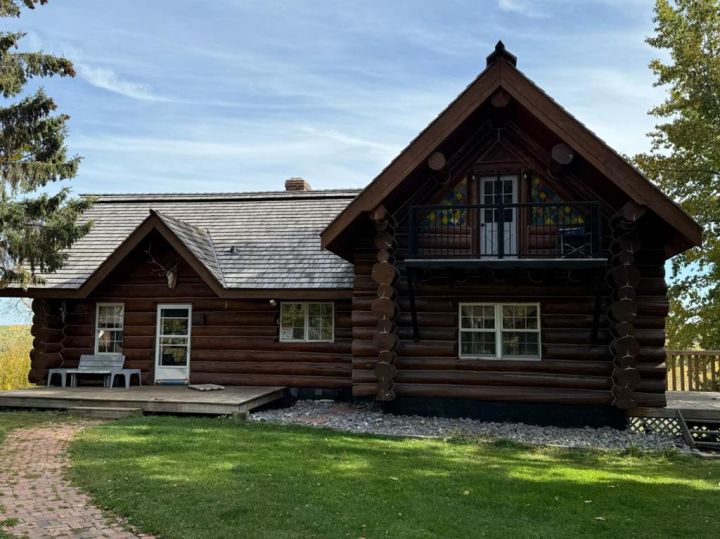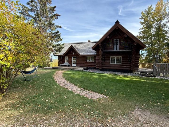 Discover the perfect blend of rustic charm and modern comfort in this stunning 1½ storey log home, set on over 14 private, treed acres. With 5 bedrooms, 3 bathrooms, and nearly 2,000 sq. ft. above grade plus a large walkout basement, this home is ideal for those seeking space, character, and connection to nature. The main floor welcomes you with a spacious entryway that immediately showcases the home’s rich wood beams, warm log details, and hardwood floors. The living room features a classic brick wood-burning fireplace, while the adjoining sunroom offers interchangeable screen/glass panels for year-round enjoyment. A functional kitchen with maple cabinets, stainless steel appliances, and an interior gas BBQ with rotisserie flows into a bright dining area with access to the outdoors. Two bedrooms and a full 4-piece bath complete this level. A striking circular staircase leads to the upper level, where you’ll find two more large bedrooms—each with steel frame–reinforced private decks—and a 3-piece bathroom. The walkout basement adds incredible living space, featuring a large family room with a second wood-burning fireplace, patio doors to the lower deck, and a spacious primary suite complete with a huge 4-piece ensuite with soaker tub and walk-in closet. This home offers thoughtful updates and meticulous maintenance, including: New boot room flooring Newly installed rock siding and parging Brand new front weeping tile (June 2025) Chimneys cleaned (May 2025) Gas lines inspected (July 2025) New window in master and main-floor bedroom 2 sides of the house freshly stained New deck with concrete block supports Septic cleaned (Aug. 2025) New exterior light fixtures (Aug. 2025) New dishwasher (2023) Enjoy modern comforts with two furnaces, central vac, water softener, 5G/Starlink internet, and plenty of storage options, including a 32’ x 22’ heated garage with usable loft, plus two storage sheds. Outdoor enthusiasts will love the 2+ acre dog run, biking trails, chicken compound, and dual well access. Gas is prepaid to anywhere on the property. Rail fencing, rails, and cattle gates are negotiable. Two C-Cans are excluded. A truly one-of-a-kind property offering space, serenity, and timeless log-home beauty — perfect for family living, hobby farming, or a peaceful country retreat.