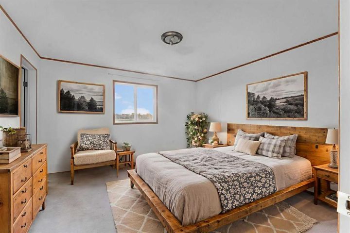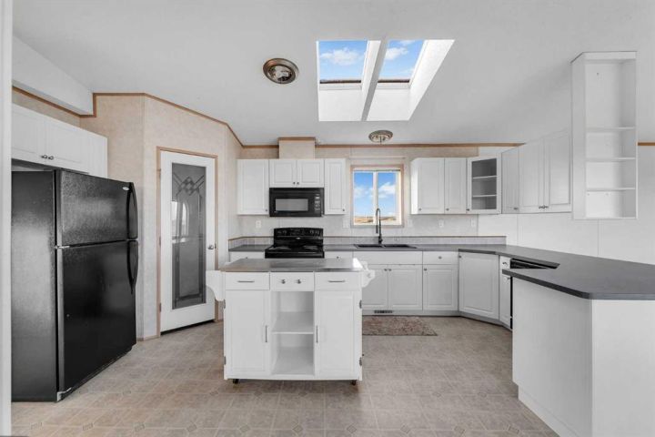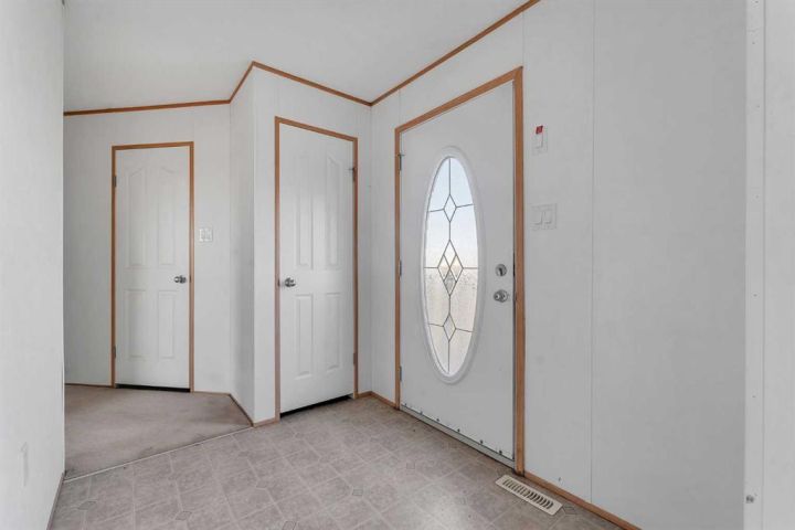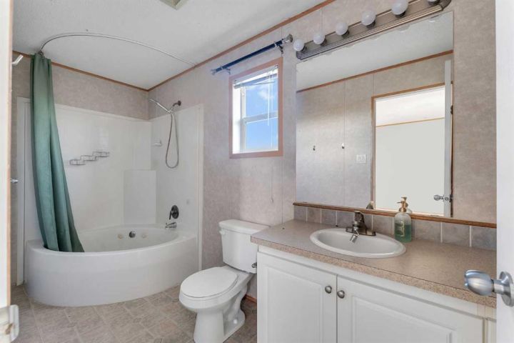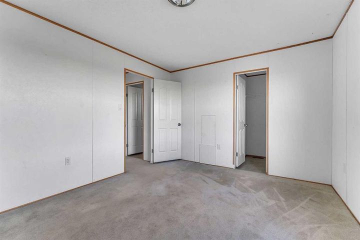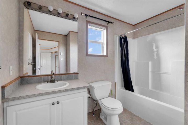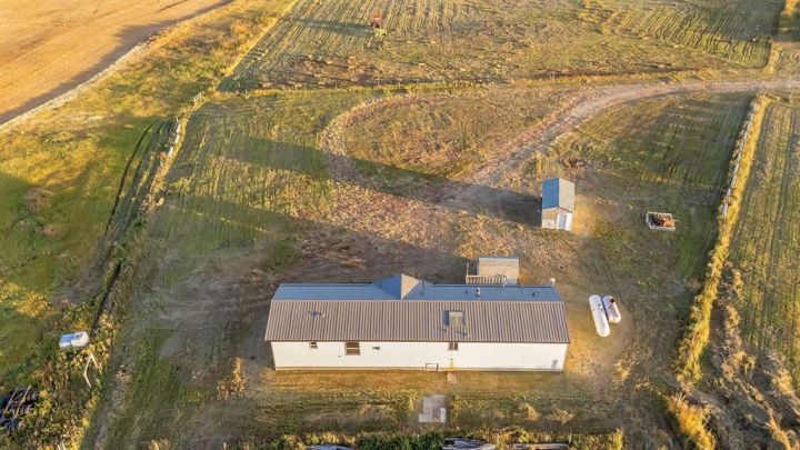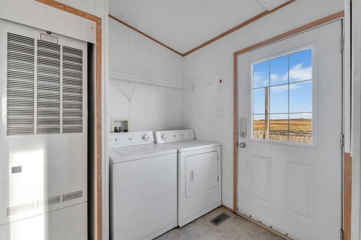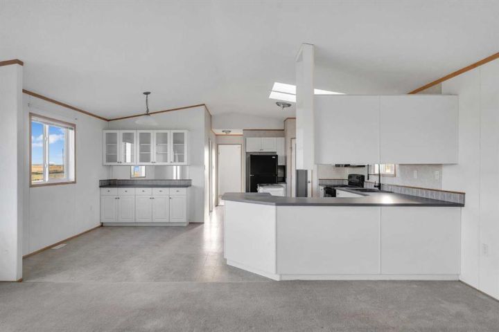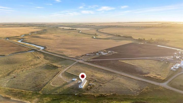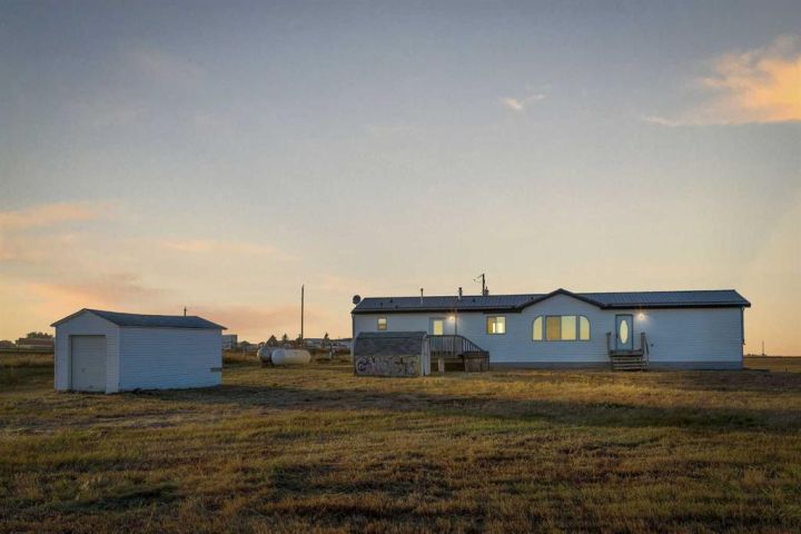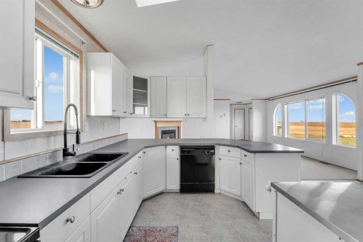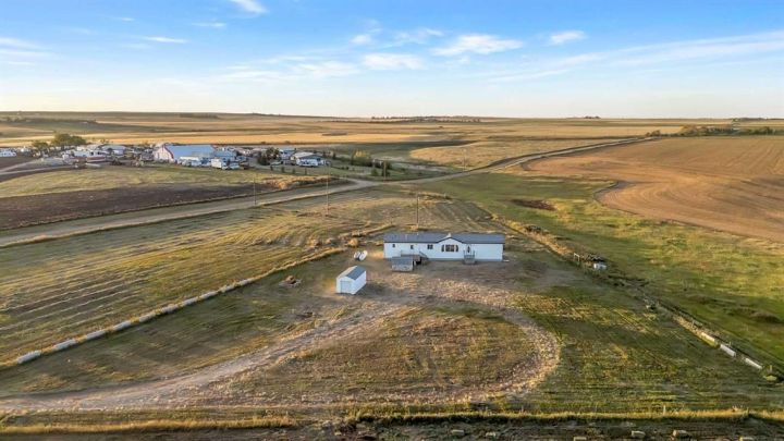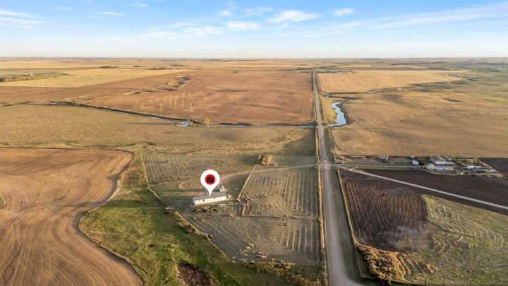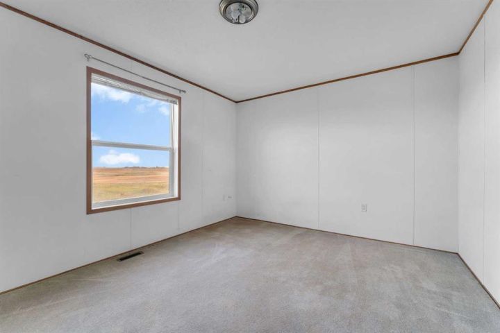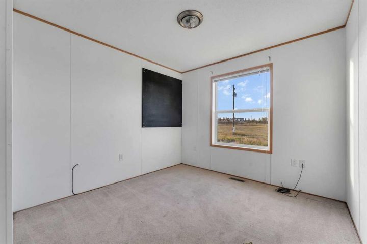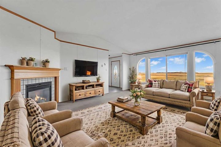 8 ACRES!! ONE OF THE BEST PRICED ACREAGE NEAR THE CITY OF CALGARY!! ONLY 10 MINS TO CALGARY!! SINGLE DETACHED GARAGE!! Sitting on 8 acres, this well-kept single wide mobile offers a bright open concept floorplan with spacious living, dining, and kitchen areas. The HUGE KITCHEN features ample cabinetry and counter space, while the cozy living room is anchored by a charming fireplace. The home includes 3 BEDROOMS and 2 FULL BATHS, including a PRIMARY BEDROOM with WALK-IN CLOSET and 4PC ENSUITE. The two additional bedrooms also feature walk-in closets and share a full bath. Step outside to enjoy the peaceful setting with a DETACHED SINGLE GARAGE and plenty of room to expand. Perfectly located just 12 minutes from Calgary city limits, this acreage combines country living with city convenience. A RARE OPPORTUNITY TO OWN 8 ACRES SO CLOSE TO THE CITY!!