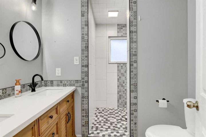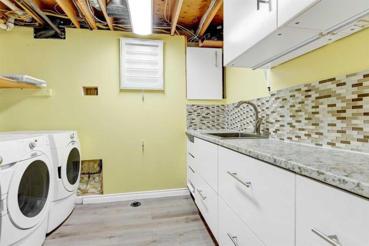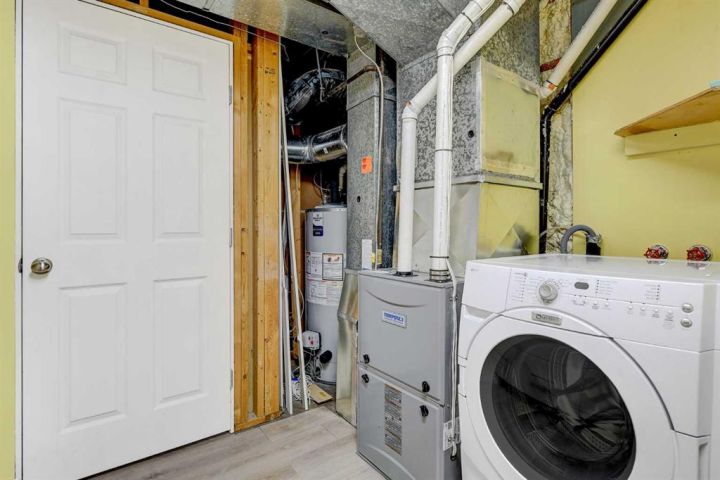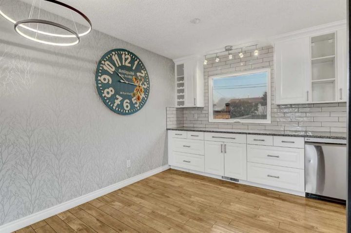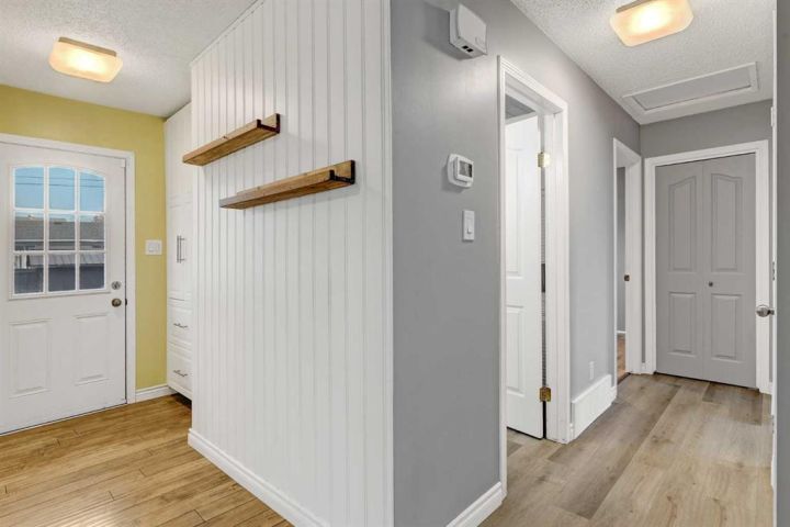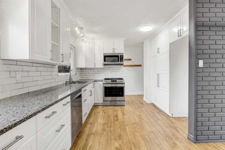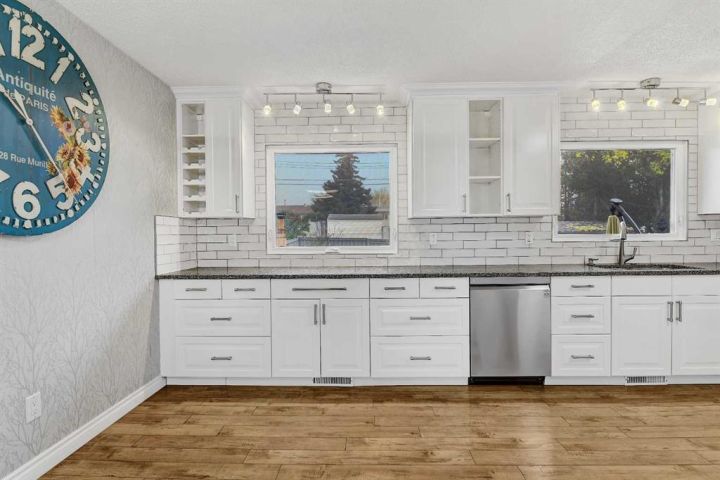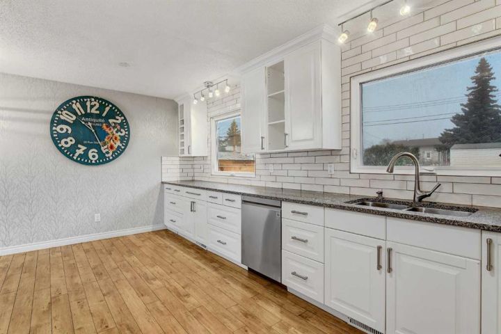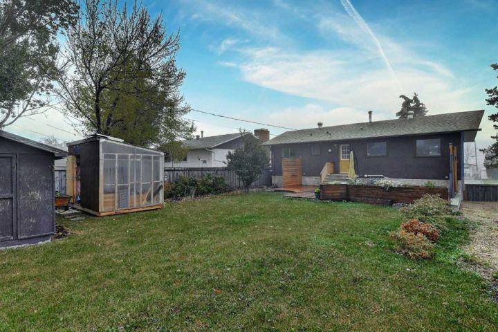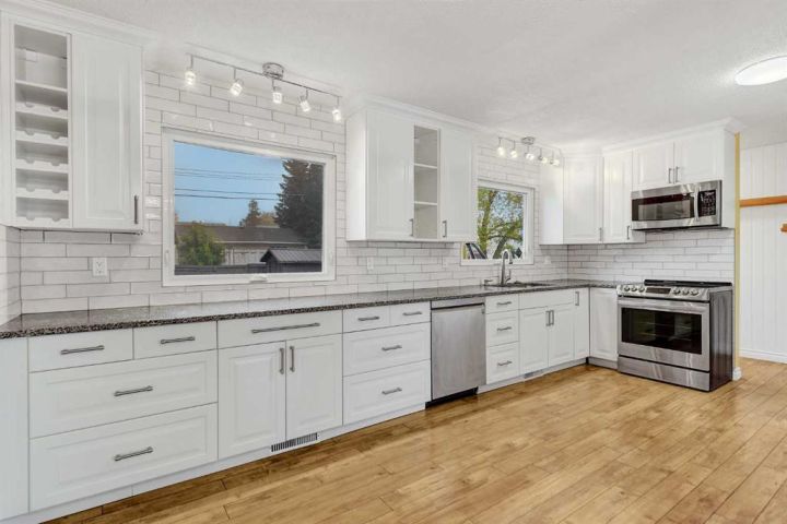 A fully turn-key opportunity, this meticulously updated home with new triple-pane windows, high efficiency furnace and extra spray foam insulation offers style and energy efficiency. Step into a huge kitchen featuring sleek soft-close cabinets, quartz countertops, tile backsplash, touchless faucet, garburator and stainless-steel appliances. The stylish modern bathroom is a major highlight, boasting a 4ft tiled spa shower with a 16" rainfall showerhead, hexagon and encaustic tiles, vinyl plank, and dual sink vanity. The fully developed basement includes plenty of storage, full bathroom, finished laundry room, bedroom and rec room with electric fireplace. Outside, the new vinyl-sided front exterior provides great curb appeal, while the private, fenced backyard is an entertainer's dream with a huge deck, a 12'x12' greenhouse, a large shed, and producing plum and cherry fruit trees plus additional haskap, raspberry and blueberry bushes. The property also features convenient gravel RV parking and a single-car garage, all backing onto grassed easement for additional privacy. Hardwood flooring, custom steel handrail, updated electrical, and LED lighting throughout complete this exceptional package, ready for you to move in immediately. Come experience the quality and attention to detail in person!