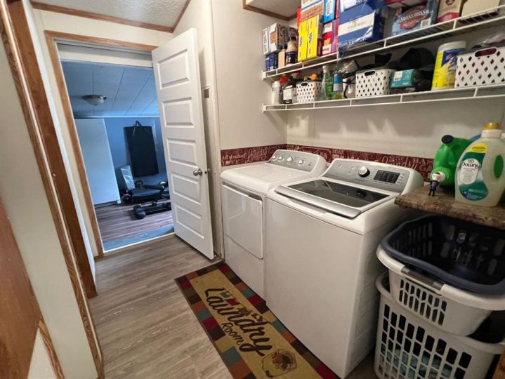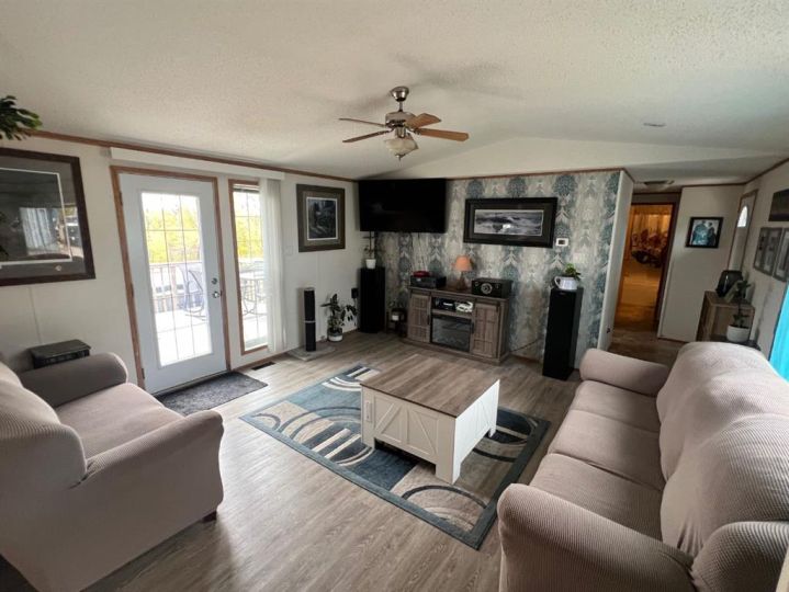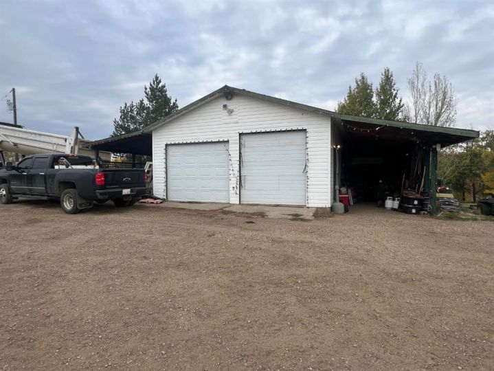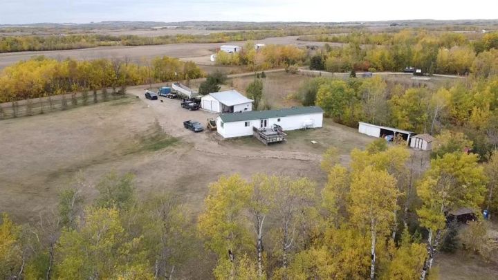 Set on a beautifully treed acreage, this charming modular home comes with a flexible addition and offers both comfort and serenity. Featuring 3 bedrooms with tasteful finishings, the home is warm, inviting, and move-in ready. Master Bedroom is nice and big featuring a 3 piece ensuite. The main level has tasteful finishing's throughout. Outside, you’ll love the detached double garage/shop—perfect for storage, projects, or extra parking. This detached shop comes with 100 amp services with 220v plugs ready to go. A seasonal creek runs through the property, adding a touch of natural beauty and tranquility. With plenty of trees providing privacy and a peaceful setting, this acreage is the perfect blend of modern living and country charm. You will find RV stalls ready to go and wired in!
