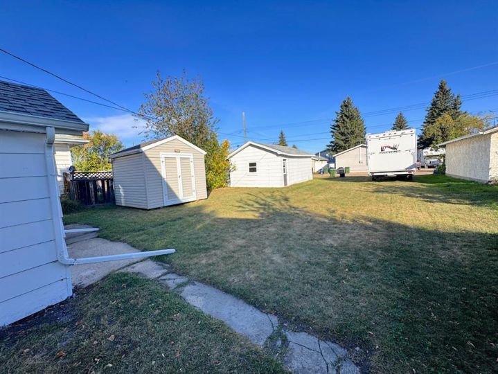 Step into this beautifully updated 3-bedroom character home, perfectly located in the heart of downtown Camrose. With its blend of original charm and modern updates, this home is move-in ready and full of warmth. Inside, you’ll find all new vinyl plank flooring and casings throughout plus updated shingles and vinyl windows. Take in the bright and welcoming updated kitchen with granite counters and a completely renovated 4pc main-floor bathroom. 9ft ceilings throughout and lots of light give this space the ultimate appeal. The Upper level sees 2 bedrooms while the 3rd can be found on the main level alongside a large living room, eat-in kitchen, 4pc bath and a dedicated laundry room with updated cabinets and granite counter. Outside, enjoy a large lot with plenty of space for gardening, entertaining, or simply relaxing. The oversized single garage gives great options and there's plenty of room for RV Parking. Centrally located, nicely updated, walking distance to schools and shopping - whether you’re a first-time buyer, looking to downsize, or wanting an affordable home close to all downtown amenities, this property is an excellent opportunity.