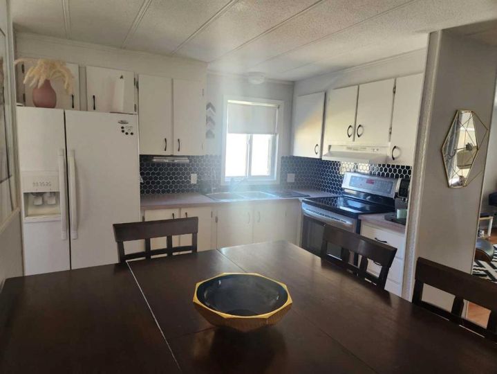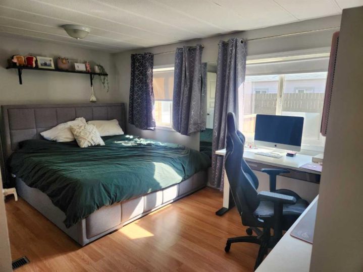 Welcome to a place that feels like home the moment you arrive. This charming and well cared for mobile home offers a wonderful mix of comfort, practicality, and value. Inside, you’ll find a bright and inviting space with 2 bedrooms that can easily be converted into 3, giving you the flexibility to grow or create the perfect office or hobby room. The modern 3-piece bathroom and air conditioning make everyday living easy and comfortable. The kitchen is warm and functional, offering plenty of room to cook, gather, and enjoy everyday family meals. Step outside and you’ll quickly fall in love with the fully fenced yard. It's a private retreat where kids can play, pets can roam, or you can simply unwind. The beautiful deck is perfect for morning coffees, summer BBQs, or relaxing evenings under the stars. Two insulated sheds provide all the extra space you need for storage, projects, or hobbies. Located in Taber, this home is close to everything a family needs. Schools, parks, and shopping is all nearby and making it an ideal place to settle in and make memories. This is affordable living without compromise, and it’s ready for you to move right in. Don’t miss your chance to make it yours.
