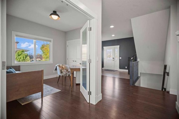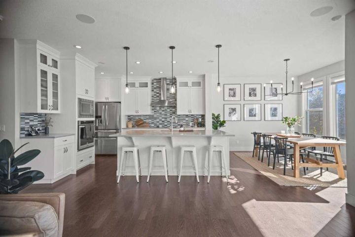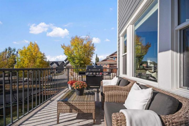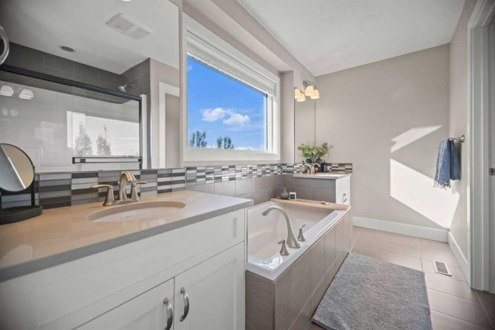 Welcome to Ranchers Rise — one of Okotoks’ most desirable family neighbourhoods. This home has serious curb appeal with Hardi board siding, air conditioning, and brand-new landscaping featuring fresh mulch, thoughtfully placed trees for current and future privacy, and a gathering area perfect for relaxing and taking in the south-facing sun. Inside, you’re greeted by 9-foot ceilings and a spacious front entry with a big closet and a large main-floor office — ideal for working from home or keeping family life organized. There’s also a half bath, and another mudroom/boot room that connects to the triple car garage (finally, space for everything). The kitchen is a showstopper with ceiling-height cabinets, a massive island, two dishwashers, an induction cooktop, built-in oven and microwave, and a walk-in pantry that keeps everything tidy. The dining area is surrounded by windows, flooding the space with natural light, and from the kitchen, you can easily keep an eye on the kids playing in the backyard while you cook or entertain. The living room ties it all together with a gas fireplace feature wall that makes the space warm and inviting. Upstairs is a layout you almost never find — four bedrooms plus a bonus room. The bonus room is big, bright, and finished with vinyl plank flooring and a dry bar. Down the hall are three generous kids’ bedrooms, a full bathroom, and a laundry room with a top-load washer and dryer. The primary suite is a true retreat with a walk-in closet, double vanity, soaker tub, and walk-in shower. The basement is ready for your creative touch — already functional, with a large mechanical room, rough-in for a future bathroom, room for one or two additional bedrooms, and still plenty of open space for a rec area, gym, or games room. This home truly has it all — a functional layout, thoughtful finishes, and a yard designed for both privacy and play. It’s a great value for the area, and homes like this don’t come up often in Ranchers Rise. You have to see this place in real life to appreciate the love and detail that has gone into it.