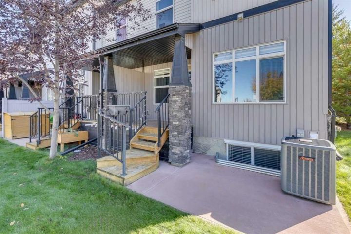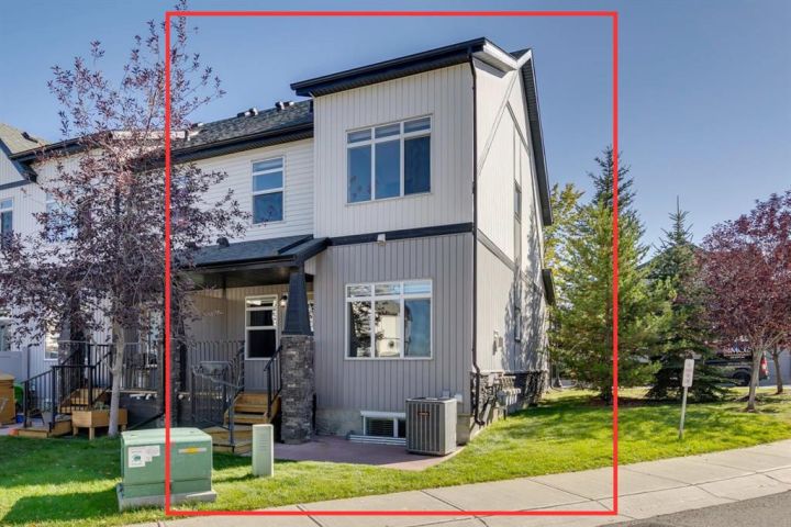 Welcome to your next chapter in the heart of Copperfield—this sun-filled end unit townhome offers modern convenience, thoughtful design, and unbeatable access to everything this vibrant SE Calgary community has to offer. From the single attached garage, central air conditioning, and fully finished basement, to being mere steps from scenic ponds, parks, playgrounds, pathways, and a bustling year-round community centre—this home has been crafted for connection, comfort, and ease. Surrounded by green spaces and multiple shopping hubs, you're also just minutes from Mahogany, Seton, McKenzie Towne, and New Brighton. Inside, the bright open-concept main floor welcomes you with large windows, durable laminate flooring, and a smart layout that makes entertaining effortless. Cozy up by the modern gas fireplace or stay cool in any season with built-in A/C. The stylish kitchen features quartz countertops, stainless steel appliances, a spacious peninsula with breakfast bar seating, and a generous pantry for extra storage. The adjacent dining area leads out to your private covered deck and poured concrete patio—a perfect setup for BBQs, gardening, or simply enjoying peaceful evenings overlooking community green space. Upstairs, the primary retreat offers a large walk-in closet and private 4-piece ensuite, while two more spacious bedrooms and a second full bath provide plenty of room for family, guests, or a home office. The finished basement adds even more flexibility with a large rec room that can serve as a movie lounge, playroom, fitness area, or guest space—tailored to fit your lifestyle. And outside? Whether you're hosting friends or watching the kids play on the nearby pathways and playground, this quiet corner of the complex gives you space to breathe, grow, and feel at home. Whether you're a growing family, busy professional, or anyone looking for that perfect balance of comfort, community, and convenience—this Copperfield gem checks all the boxes.