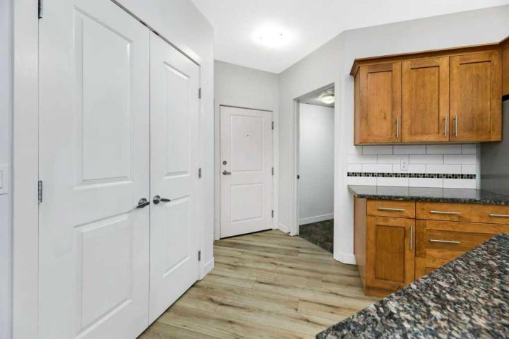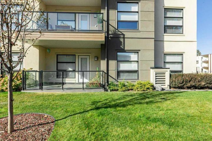 This bright and well maintained, main floor unit offers 2 bedrooms, 2 bathrooms, and a den with a built-in bookshelf is ideal for a home office or reading space. The open-concept kitchen features granite countertops and ample cabinet space, perfect for cooking and entertaining. The primary bedroom includes a walk-in closet and a 3-piece ensuite. A second bedroom and full bathroom provide plenty of space for guests or family. Enjoy added convenience with titled heated underground parking and a separate storage unit. Brava Condominiums offers exceptional amenities, including a fitness room, social room, games room, theater room, rooftop terrace, elevator, and secure entry. Whether you're a first-time buyer, downsizing, or looking for an investment, this unit combines location, lifestyle, and value.