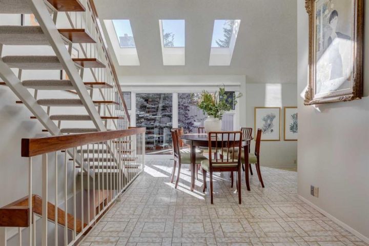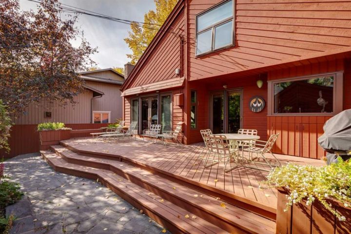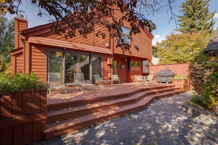OPEN HOUSE SATURDAY OCT 18th 1-3pm. This modern-architectural family home offers an unbeatable location in the heart of West Elbow Park on a quiet street. The community centre is at the end of the block with tennis, basketball, skating, playfield and an off-leash area. Just over a block to Elbow Park School with other top schools close by. Also a quick walk to The Glencoe Club and the river pathway system for walking and biking. Large 50’ x 125’ (6243 sq ft) lot. Architect Robert Miller designed this significant home which incorporates site-specific design to capture maximum natural light and provide exciting spatial volumes. Very much a “Dwell Magazine” vibe. Over 3600 square feet total development with 4 bedrooms and 3.5 baths. Expansive main floor plan with living room and dining room at the front to host family and friends while enjoying the wood burning fireplace, wet-bar and dramatically vaulted ceilings. Open plan across the rear overlooking the yard. Newer high-end kitchen with great workspace, storage and top appliances (Subzero, Wolf and Miele) adjacent to a casual dining space. Large family room with vaulted ceilings, wood burning fireplace and built ins. Real site-finished hardwood floors run throughout. A mudroom, laundry room and 2-piece powder room complete the main level. The bright upper floor holds 3 bedrooms including a large primary suite with closet wall and renovated 3-piece ensuite with shower. 2 additional bedrooms with vaulted ceilings and a renovated house bath with soaking tub. Superior lower level…a result of the newer vintage of the home. Great windows and nice ceiling height throughout the recreation room with fireplace, large 4th bedroom, renovated bath and extensive storage. Access out from the kitchen and family room to a full width deck and fenced yard with large grassed playspace. Oversized double garage off the paved alley. A rare opportunity!