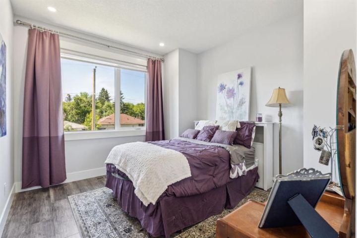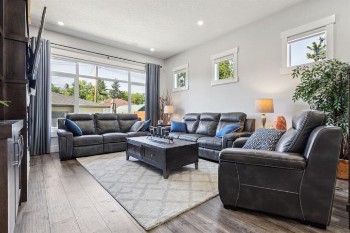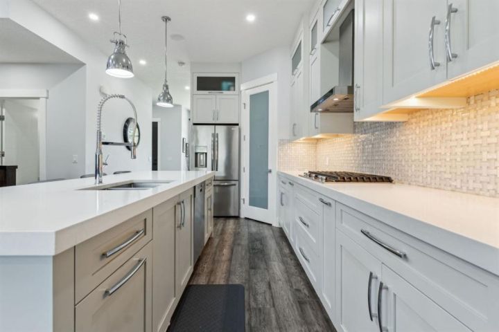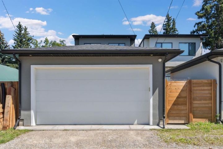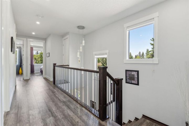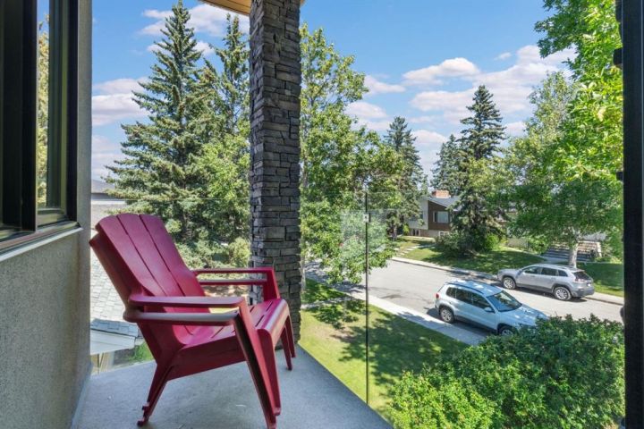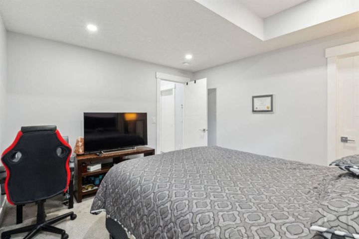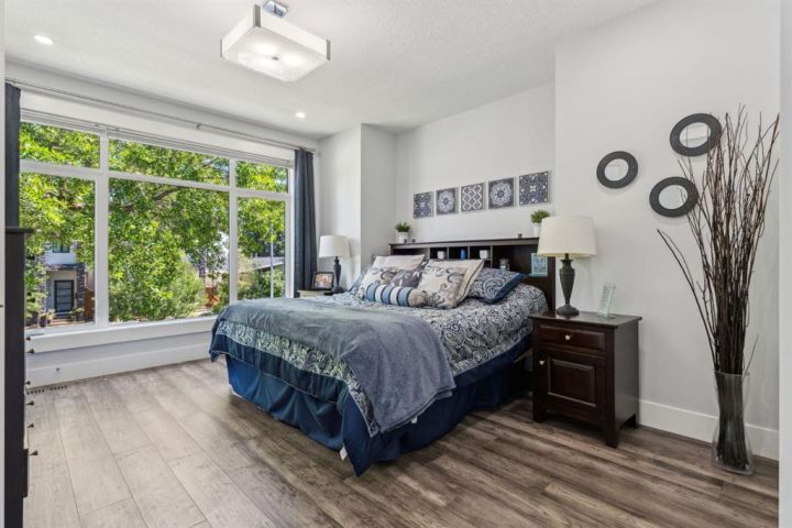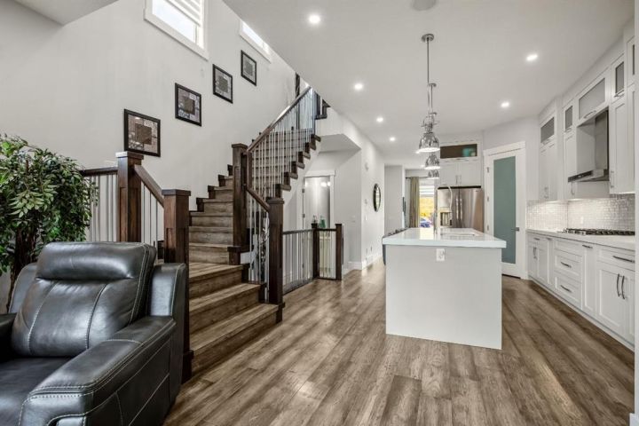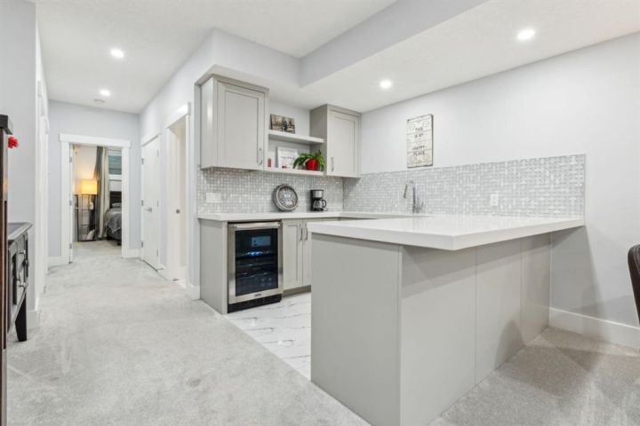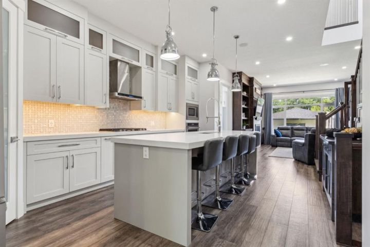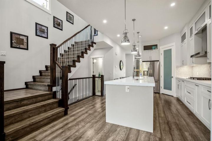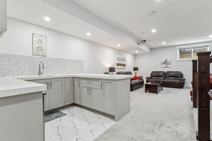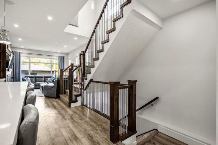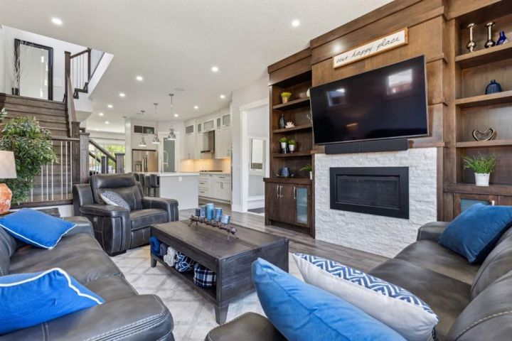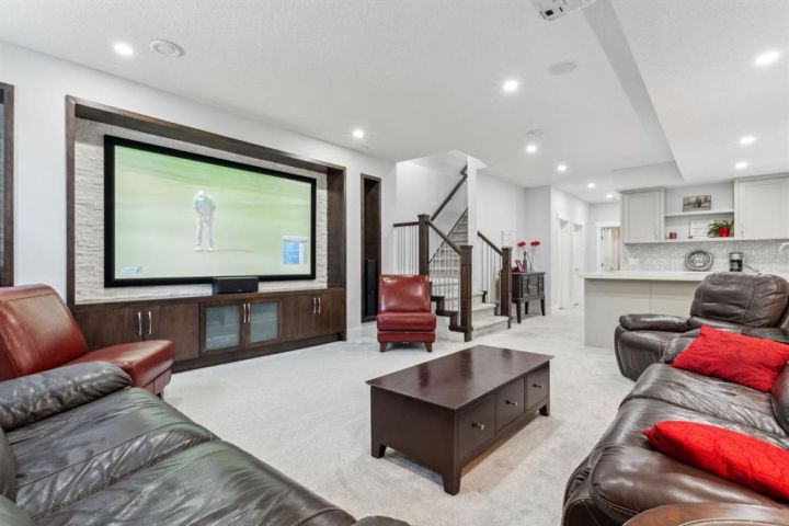 Boasting over 3,300 developed sq ft this impeccable DETACHED home is situated on a quiet picturesque, tree-lined street. As you approach you will notice the masterfully crafted curb appeal, exposed aggregate walkway and attention to detail. You are then greeted by soaring 10-foot ceilings, gleaming hardwood floors and a bright dining room. The central gourmet kitchen is a focal point with custom cabinets that reach to the ceiling, including pull outs and glass inserts, gorgeous 2 ¼” Quartz counters, under cabinet lights, plenty of storage with a corner pantry, and high-end SS appliances including a gas cooktop, built-in wall oven/microwave, chimney style hood fan and Bosh dishwasher. The expansive 10 ft island is ideal for entertaining and seamlessly connects to the spacious living room. The spacious living area is showcases a gas fireplace with stone surround and a built in detail. The main is complete with the powder room tucked away for privacy and a well thought out mud room with custom built-ins. The private well sized SUNNY WEST backyard has plenty of grass, an exposed aggregate patio and path plus a convenient BBQ gas line. Making it the perfect place to enjoy the outdoors. As you head to the second level you will notice the elegant railing, and 9’ ceilings. There are 2 well sized bedrooms with walk-in closets including custom built-ins, a nicely appointed 4 piece bath, and a convenient upper laundry room with sink and plenty of cabinets for storage. The primary is a true sanctuary with large windows, a private balcony to enjoy morning coffees, and a big walk-in closet with built-ins. French doors lead to your luxurious ensuite. This spa inspired space includes heated tile floors, a steam shower, freestanding tub, a private water closet, dual sinks and comfort height stone counters. The fully developed lower level with in SLAB HEAT, is fabulous for those Alberta winters. There is a large rec room showcasing a projector and 100 inch screen with custom cabinetry, perfect for movie night or your favorite sporting events. This space is complete with a sleek wet bar including beverage fridge. An additional fourth bedroom with walk in closet and a full 4-piece bathroom. Other noteworthy features are the Double detached garage with 220 wiring, the comforts of air conditioning, upgraded solid core doors, flush mount vents, built in speaker system, security cameras, upgraded roof with full ice and water shield membrane, upgraded roof ventilation and added R50 blown insulation creating energy efficiencies. Just minutes from excellent schools, athletic fields, and Westhills Shopping Centre, including Save-On-Foods, GoodLife Fitness, Cineplex, The Keg, Tim Hortons, and much more. Enjoy quick access to Stoney Trail, Sarcee Trail, and downtown. Don’t miss your chance to own this pristine home. View the virtual tour or book your private showing today!