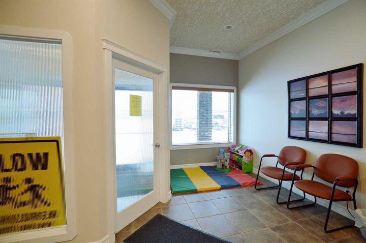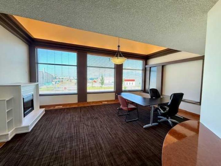 Beautiful 4498 sq ft space suitable for many different types of businesses. Originally built by a home builder to showcase their workmanship. This space feels more like a home than an office building. Gorgeous finishings throughout including quality cabinetry, granite countertops, high end trim, lighting & plumbing fixtures. The space even includes a fireplace & waterfalls in the large upstairs board room. Currently houses a therapy clinic but would be ideal for any business which requires lots of offices/rooms of varying sizes. Presently the space is configured with a total of 13 offices (2 very large spaces which could be board rooms), reception area, 3 washrooms, file/storage room, 2 kitchen areas, 3 exterior entrances. Could also accommodate a business which needs office space and a retail showroom. Basic rent is $18/sq ft = $6747/month. Additional rent is $5.90/sq ft = $2211.51. Fabulous building - TOTAL CLASS! This is a must see space. See attached Matterport tour. Or lease the entire building including the 1702 sq ft shop.
