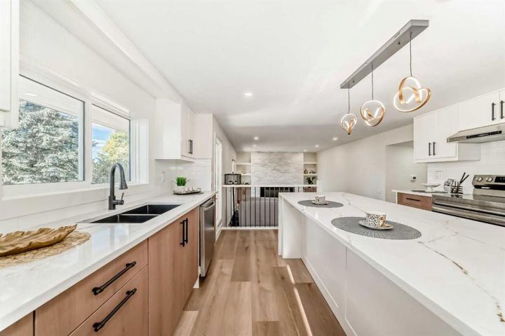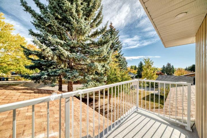 ** OPEN HOUSE: Thursday, October 9th 2:30-4:30pm and Sunday, October 12th 1-3pm ** Welcome to 19 Ranch Estates — a newly renovated home in a charming, established neighbourhood that truly offers the best of both worlds. Enjoy quiet, tree-lined streets within walking distance to parks and corner stores, with easy access to main roads for a quick commute while still tucked away from the traffic. Inside, a complete renovation combines modern style with classic warmth. The main floor features a spacious kitchen with a large island and brand-new appliances, a cozy living room with a fireplace and balcony access, plus an office, half bath, and a double attached garage. Upstairs, you’ll find three bright bedrooms, including a generous primary suite with a private balcony, and beautifully updated ensuite. The two secondary bedrooms share a connecting balcony and a renovated full bathroom, making it a perfect setup for families. The fully finished walkout basement includes a separate entrance, an additional bedroom, a wet bar with bar fridge, and plenty of storage. Outside, enjoy mountain views, an apple tree, and a spacious backyard ideal for gardening or entertaining.