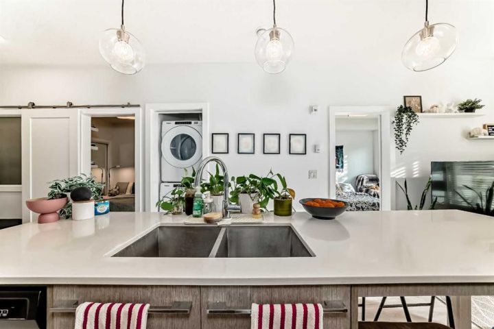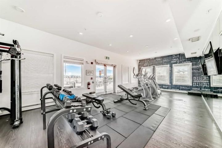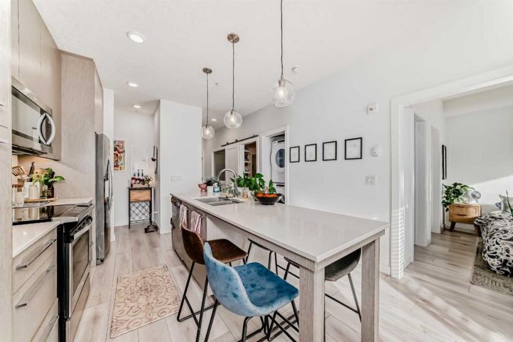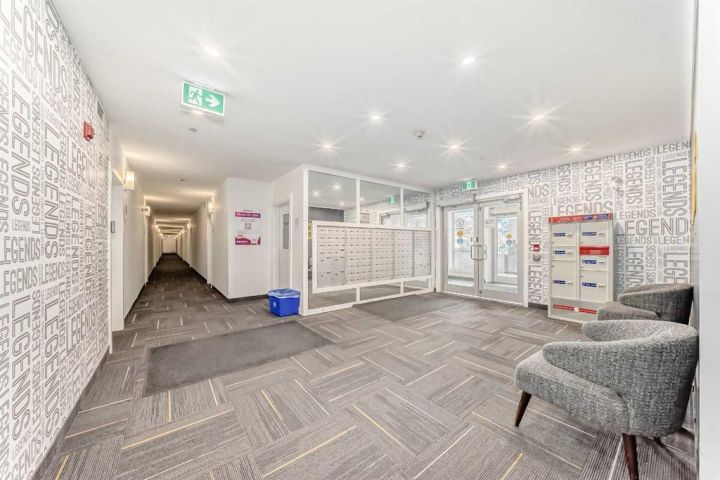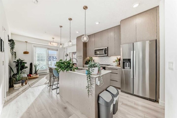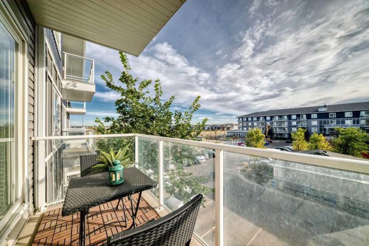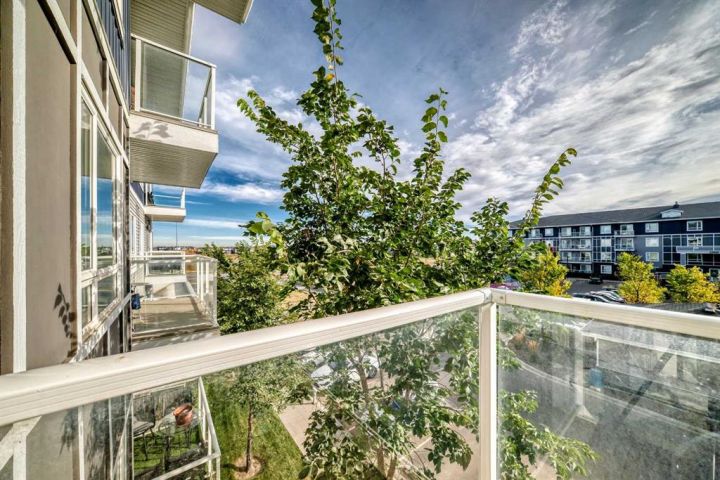 Welcome to the Legends of Cornerstone, where thoughtful design, premium amenities, and a prime northeast location combine to offer an unparalleled lifestyle. This stunning suite is a true gem, showcasing modern elegance and functionality. Step into the inviting foyer and be greeted by beautifully appointed interiors bathed in natural light. The heart of this home is the showstopping kitchen, featuring floor-to-ceiling contemporary cabinetry with integrated storage, sleek quartz countertops, an undermount single sink, and a versatile cutlery drawer. Soft-close cabinetry, a spacious pantry, and high-end energy-efficient integrated appliances elevate the culinary experience. The bright and open living area is perfect for showcasing your finest furniture, flowing seamlessly onto a covered balcony with breathtaking blue sky views and a BBQ gas line, ideal for enjoying Calgary’s beautiful weather year-round. Retreat to the primary bedroom, where east-facing windows welcome stunning sunrises. Complete with a walk-in closet and a luxurious 4-piece ensuite, the contemporary finishes and upgraded fixtures create a spa-like atmosphere for ultimate relaxation. Enjoy exclusive amenities, including: Owners Lounge: Perfect for hosting large gatherings, with comfortable seating, entertainment, and billiards. Fitness Centre: Stay active with on-site cardiovascular and strength training equipment. Community Garden: Cultivate your own produce in a private garden, enhancing your health and lifestyle. Don’t miss your chance to own this exceptional home in the vibrant Legends of Cornerstone community. Schedule a viewing today!
