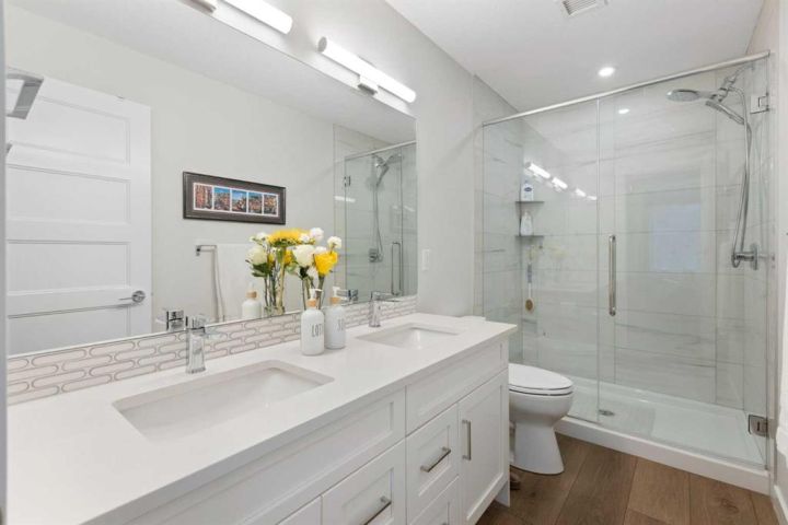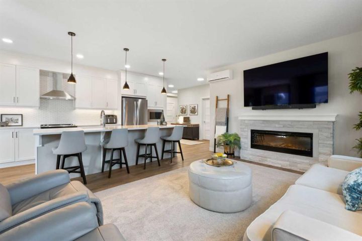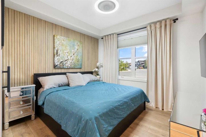 Welcome to this stunning, fully upgraded 2-bedroom plus den corner unit located in the heart of the highly sought-after Wolf Willow community. This spacious main-floor condo spans 1,165 square feet and showcases over $70,000 in custom renovations, offering an exceptional blend of elegance, comfort, and convenience. The expansive primary suite easily accommodates a king-sized bed and features a spa-inspired 4-piece ensuite complete with double vanities, a 5-foot walk-in shower, and a custom California walk-in closet with built-in organizers/drawers. The generous second bedroom includes a custom step-in closet and is adjacent to a beautifully finished 4-piece guest bath with a full-size tub tiled to the ceiling. A versatile den with double French doors provides the perfect space for a home office, studio, or reading nook. Designed for both entertaining and everyday luxury, the chef’s kitchen features a show-stopping 10-foot island with quartz countertops, ceiling-height cabinetry with pull-out drawers, upgraded stainless steel appliances, a built-in coffee bar, undermount lighting, and a garburator. The space opens seamlessly into a dedicated dining area and a bright, airy living room anchored by a fireplace and framed by expansive windows that flood the home with natural light. Comfort and style abound with 9-foot ceilings, luxury vinyl plank flooring, air conditioning, custom wood paneling with built-in soundproofing, and 3M privacy window tinting throughout. The full-size in-suite laundry area includes custom cabinetry for added convenience. This unit comes with a titled oversized accessible underground parking stall and two full-size storage lockers - one located underground and the other on the main floor. Secure bike storage and ample visitor parking are available, and residents enjoy direct access to a private walk-out patio with a gas hookup for BBQ and fire table, which also serves as a secondary entrance. The location is unbeatable - just steps from Fish Creek Park, the Bow River, a 9-acre dog park, 80 kilometers of scenic bike trails, playgrounds, and the Blue Devil Golf Course. Everyday amenities, coffee shops, and major routes like Stoney Trail and Macleod Trail are only minutes away. The pet-friendly building offers low condo fees, and a welcoming community of friendly neighbours. Whether you're a first-time buyer, downsizing, or investing, this move-in-ready condo is a rare find that checks every box. Experience the perfect balance of nature and city living—schedule your private viewing today.