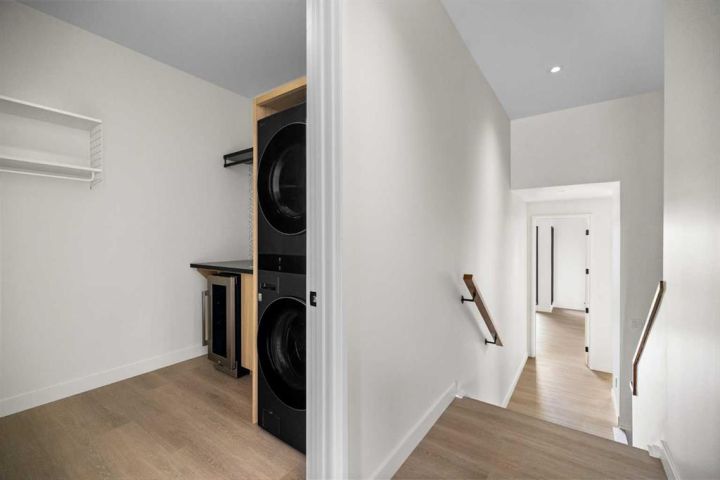 Set beneath the canopy of a 70-year-old larch and overlooking the green expanse of Poplar Park, 3A Willow Crescent offers a rare combination of thoughtful architecture, inner-city convenience, and space to grow. Designed by Richard Davignon of Davignon Martin Architecture—recipient of the American Institute of Architects Award of Excellence—this residence is part of The Larches, an exclusive collection of four modern homes. Built in collaboration with Infinity Construction, the homes borrow the durability and craftsmanship usually reserved for custom estates while bringing it into a livable, just-under-2,600-square-foot footprint. Inside, the main floor unfolds in an open concept, with a custom kitchen at its centre and oversized windows framing calm, park-like views. Handcrafted oak railings, almond-hued floors, and built-in storage create a balance of warmth and function. The second level holds three bedrooms, each with its own ensuite. The primary retreat stands apart with a freestanding soaker tub, double shower, heated floors, and a walk-in closet by California Closets. The lower level, with 11-foot ceilings (yes, you could fit a golf simulator downstairs), radiant in-floor heating, and roughed-in solar and A/C, is ready to adapt—whether that’s a media room, gym, or suite. The private backyard is generous for inner-city living, offering room for gatherings, barbecues, or simply quiet afternoons. An oversized double garage with lane access, full yard irrigation, and carefully curated landscaping complete the property. Every element—from Italian stone counters and Quebec-made lighting to double-pane Lux windows and hidden eavestroughs—was selected for beauty, longevity, and ease of living.