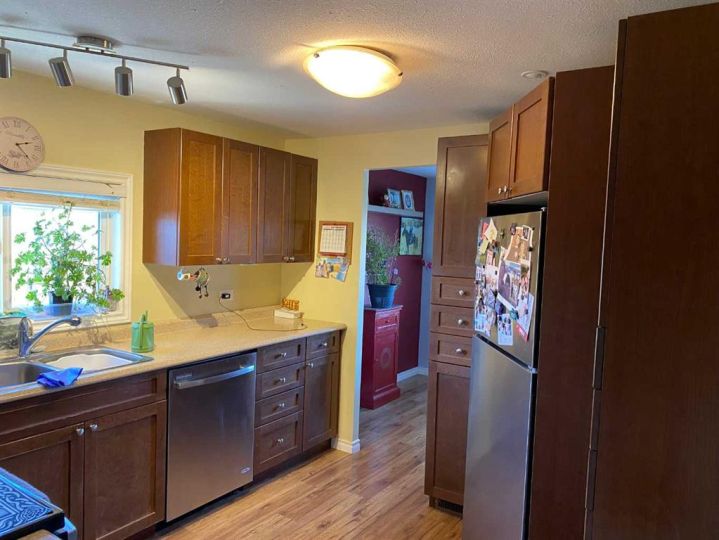 This very cute home is totally renovated with a 32 x 8 attached addition. It rests on a concrete foundation and is totally refinished from the studs out in the recent years. This home has received new Roof,furnace, drywall, insulation, hot water tank, flooring, paint, doors, bathroom, kitchen and appliances and shows beautifully. It has a fenced yard, 2 driveways...for lots of parking, and is close to Clairmont school, parks and walking trails. It a large bright living room, open to the dining area, and a beautiful kitchen with lots of cupboards and counters. You get 3 bedrooms, and the addition is a huge bonus room with an office as well...call to view today You also get 2 heat sources, forced air, natural gas, and secondary heat source is base board.