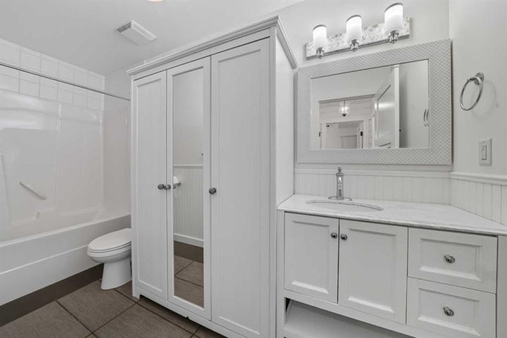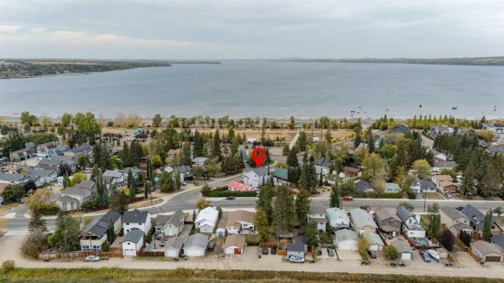STEPS FROM SYLVAN LAKE! This charming freshly painted 2 storey located in Cottage Area is sure to impress offering 4 bedrooms and 3.5 bathrooms. Located just minutes from the beach, playground and everything Lakeshore Drive has to offer ~ a wonderful Airbnb opportunity (permits to be obtained by buyers). Functionally designed with a spacious living room with large windows overlooking the Lake and accompanied by a lovely gas fireplace and built-ins on either side. The kitchen offers lake vibes with butcher block countertops, an abundance of white cabinets, blue accented island and a stainless steel appliance package. There is a large dining nook with additional built-in storage. The upper floor features three bedrooms great for a family or for investment purposes including the farmhouse style primary suite equipped with an ensuite with a double vanity, walk-in shower and tile floors but the cherry on top is the private balcony overlooking the Lake. The two additional bedrooms are a great size and share the 5pc family bathroom with an interior linen closet. The developed basement offers another bright living space, the large 4th bedroom, a 4pc bathroom, additional den with bunk beds plus storage space! Extra's include Central A/C, in-floor heat, a H/E furnace and hot water on demand. The backyard is fully fenced and features a stone fire-pit area, deck with enclosed storage below and of course off street parking for your vehicles or RV! With this home just being professionally painted and cleaned it is completely move-in ready and awaits new ownership!