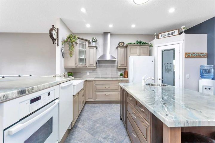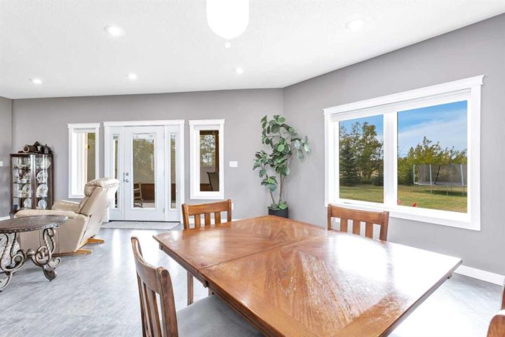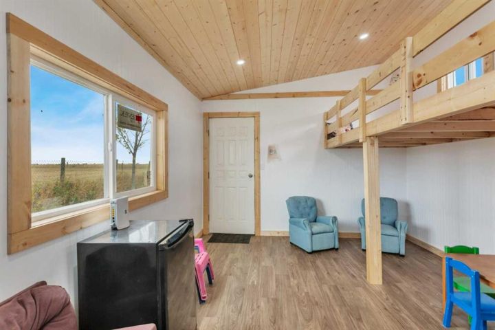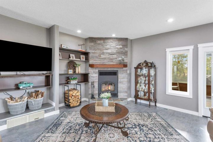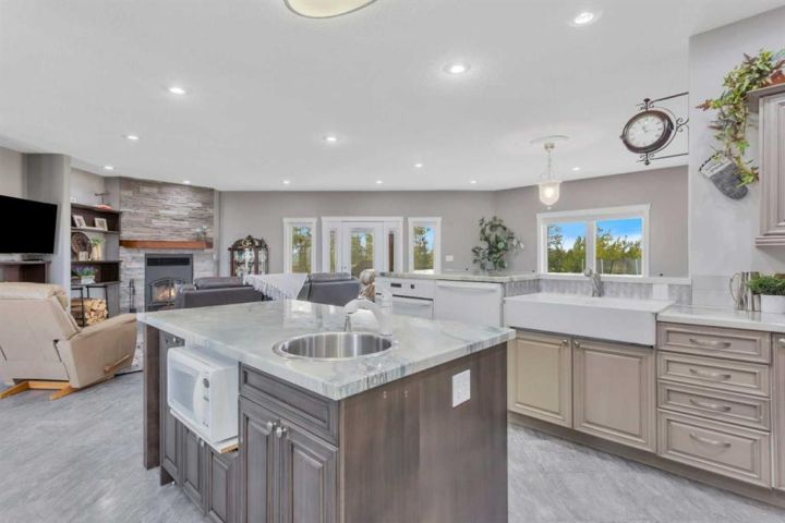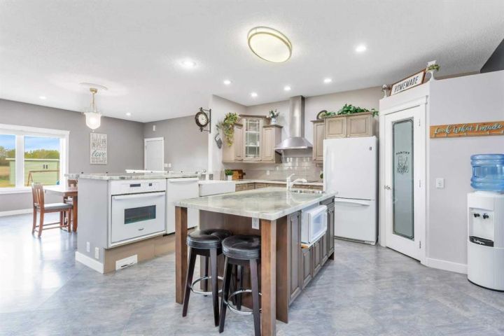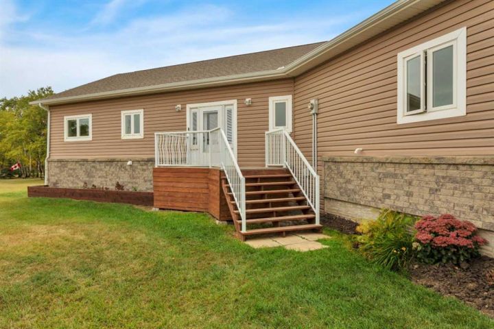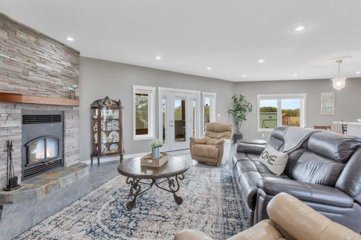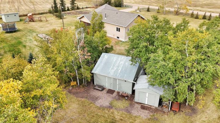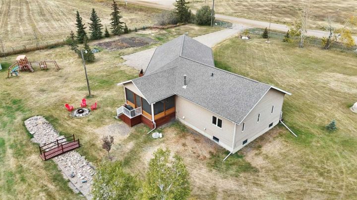 Just 3 minutes east of Stettler, this 2-acre family acreage offers the perfect balance of country privacy and town convenience. From the moment you arrive, pride of ownership is clear - not only in the home, but across every corner of the property. Outdoors, it’s all about space to play, relax, and gather. A fully finished powered playhouse, mini basketball court, play structure, garden space, and firepit retreat create endless opportunities for family connection. The property is fully fenced and gated with dual entrances, offering both privacy and practicality. Mature trees, new plantings, and natural brush with mowed pathways bring a secret-garden feel, while a rock bed and bridge feature, expansive lawn, screened-in porch, separate workshop, and garden shed complete the outdoor retreat. With municipal water to the home and well water for all exterior use, the acreage is as functional as it is beautiful. Inside, the main floor welcomes you with bright, open living spaces designed for ease and comfort. The modern kitchen with island and pantry flow seamlessly into the dining are and living room with high ceilings and a cozy wood-burning fireplace, not to mention access to your screened in deck and yard. The primary suite includes a walk-in closet and private 3-piece ensuite, while an additional bedroom and main bathroom provide convenience for family life. Main-floor laundry adds to everyday practicality as well. Downstairs, the fully finished basement expands the living space with two more bedrooms, an additional bathroom, and a large open family/rec area - perfect for movie nights, kids’ play, or hosting friends. Built in 2009, this home was constructed with an ICF (Insulated Concrete Form) foundation, providing exceptional strength, durability, and year-round comfort. Paired with a geothermal heating and cooling system that regulates temperatures efficiently - keeping utility costs lower while offering a consistent, eco-friendly climate. Together, these features ensure a home that’s not only modern and welcoming, but also built for long-term sustainability. This acreage is designed for family living, memories, and more - not just a property, but a place to grow, gather, and create a lifestyle you’ll treasure for years to come.