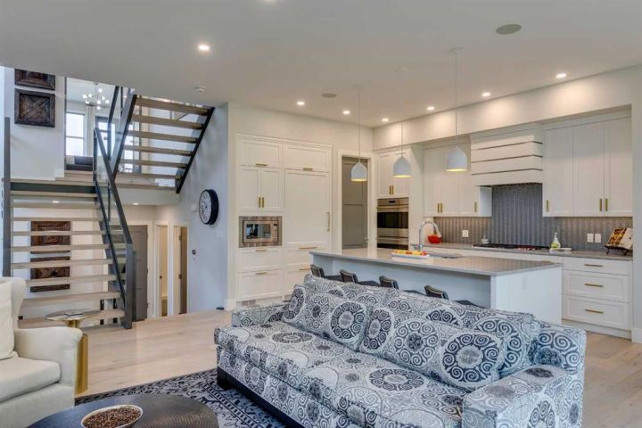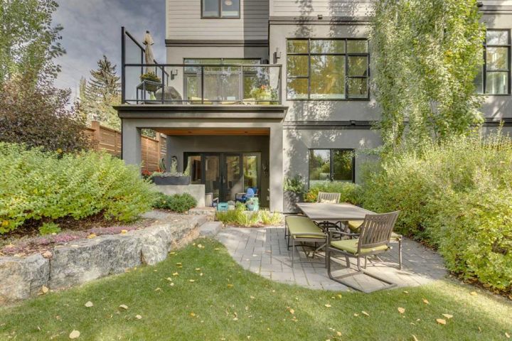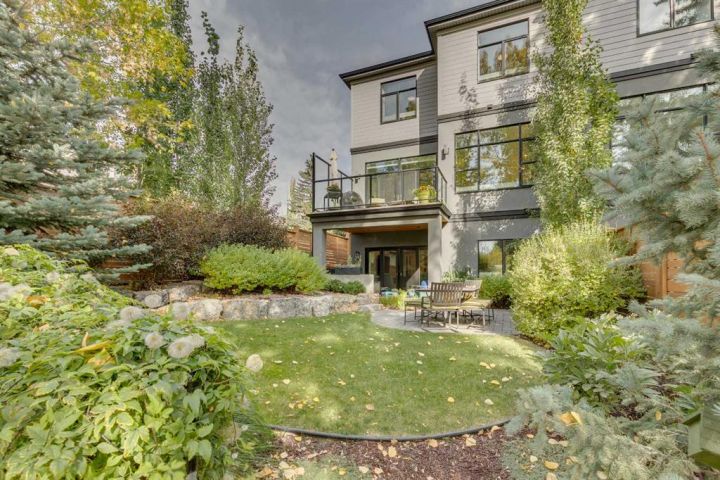 Welcome to an inner-city English garden living - with 2,847 sq ft of luxury situated in the vibrant community of Bankview. Offering 5 bedrooms throughout, this semi-detached walk-out home is perfect as an executive and/or family home. Built by luxury builder Grandscape Homes with superior finishes and completed by interior designer Denise Panagakos, this stunning home blends contemporary design with comfortable living finishes. The S & W facing main level has 10 ft ceilings, a two-storey front foyer and floor to ceiling windows, flooding the home with natural light. The gourmet kitchen has a large island with breakfast bar, pantry plus amazing storage. Top end appliances include a 5 burner Wolf Cooktop, dual Wolf wall ovens (one convection) and an integrated Sub-Zero fridge. The open living/dining area with gas fireplace leads to a south facing balcony through large sliding doors. On the 2nd floor, French doors lead to the private primary suite that occupies the entire level. Complete with a gas fireplace, a large walk-in closet, and a north facing balcony with downtown views. The 5-pc ensuite has a soaking tub, double vanity, a large steam-shower, and heated flooring. The 3rd level has 2 large bedrooms, both with walk-in closets. This floor also includes a 5-pc bathroom and a laundry room with sink and storage. On the 4th level is a very large loft bedroom/suite with downtown views and a 4-pc bathroom - perfect as a bedroom, office space or living area. The fully finished walk-out level has heated polished concrete floors, a 5th bedroom or office, and a 3-pc bathroom with an oversized walk-in shower. This level is the perfect entertaining area with a wet bar and wine room off the sitting area and walk-out covered patio. The sunny south facing back yard is professionally landscaped with plenty of shrubs and trees creating a private and quiet oasis. Backing directly onto a city park the home's multiple outdoor living spaces will bring the outside in, either from the main living area balcony, or the large lower patio. Throughout the entire home you will find custom millwork cabinets providing ample storage. This clean air home has high efficiency heating/ventilation and includes central air conditioning. The double attached finished garage also has heated floors. Its minutes to downtown and walking distance to the shops, restaurants and amenities of either 17th Avenue or Marda Loop - also close to Mount Royal, Downtown Core, University of Calgary, Foothills Hospital Campus, SAIT & Kensington. Experience both quiet park and vibrant inner city living & book a showing with your realtor today!