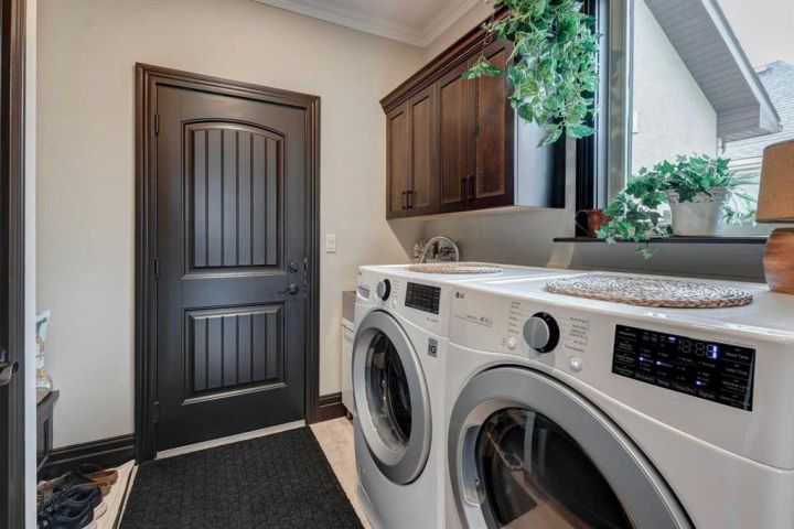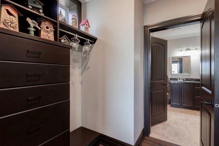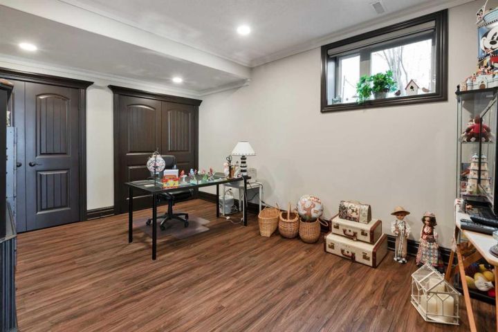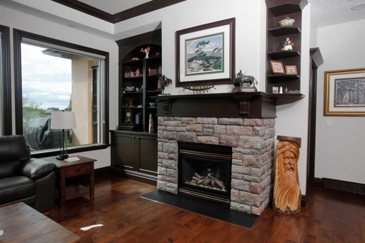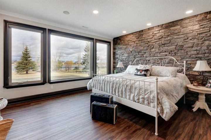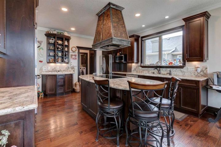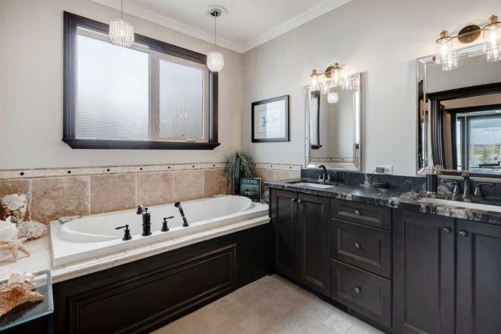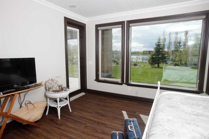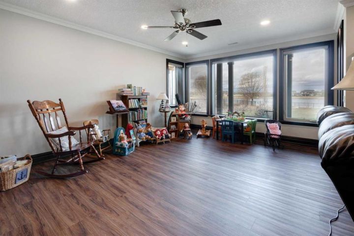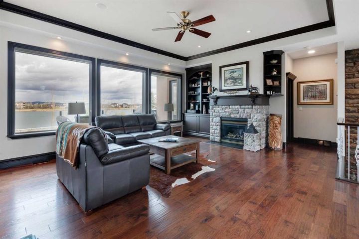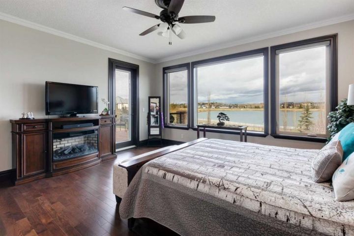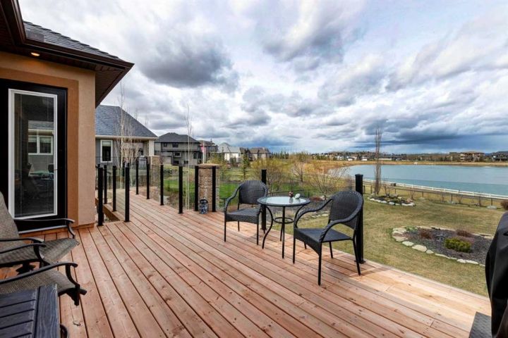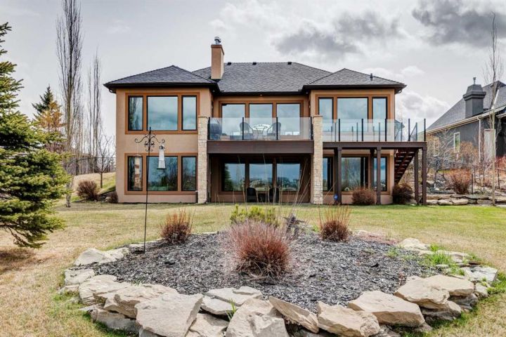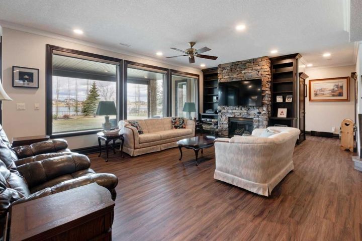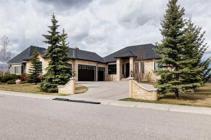 Luxurious Executive Custom-Built Bungalow Home with Walkout Basement backing onto the LAKE with SPECTACULAR ROCKY MOUNTAIN VIEWs. This home is in the charming community of Monterra on Cochrane Lakes. Country Living with City Convenience. This HOME nestled on .48 Acres offers over 3600SF of LIVING SPACE with HEATED 4 CAR GARAGE and a FENCED YARD. The features of this property are endless from the STONE ENTRANCE WING WALLS, exposed AGGREGATE DRIVEWAY to the EXTENSIVE RENOVATIONs. Step inside and be greeted by custom 10-foot ceilings, elegant hardwood flooring, and a wall of windows that provide expansive views and abundant natural light. Main level offers a PRIVATE OFFICE at the front of the home with custom built in bookcase, WALK-IN FRONT CLOSET with ample space, Luxurious OPEN SITTING/DINING AREA is off the living room, LIVINGROOM room offers a stone gas fireplace with custom made mantel, a wall of windows looking over the backyard toward the lake with the mountains beyond that. A “CHEF INSPIRED” Kitchen with cooper hood fan, double wall oven, sizable island, undermount lighting and custom granite backsplashes that duplicates the look of mountains extending into the BUTLERS PANTRY, The LAUNDRY ROOM/MUD ROOM leads into the 4 car GARAGE for all your vehicles and toys. The PRIMARY BEDROOM offers a wall of windows with STUNNING VIEWS of the Rocky Mountains with access to the large deck overlooking the backyard and lake. Retreat to the 5-piece ensuite spa with heated floors, double vanities with leathered granite countertops, jet tub, large shower with body jets, and walk-in closet. LOWER LEVEL offers in-floor heat throughout, a floor to ceiling stone gas fireplace, and a wall of windows once again to enjoy the outdoor views. There are 2 VERY SPACIOUS BEDROOMS, a 4PC BATH with leathered granite countertop, separate tub and stone tile shower with jets, CUSTOMIZED WET BAR with cabinet and undermount lighting, granite counter tops and bar fridge offers a great entertaining space, as does the great RECREATION ROOM for FAMILY FUN NIGHT and/or ENTERTAINING GUESTS. There is not a LUXURY or CRAFTMANSHIP that has been overlooked when this custom home was built or renovated, here are just a few: stunning unique interior stone walls, stone fireplaces, elegant crown moulding throughout, phantom doors to allow a nice breeze, LUX triple pane NEAT windows, surround sound throughout, and frameless decking system so as not to obstruct the magnificent views. The views are stunning from either level as are the gorgeous sunsets over the mountains. This is a MUST-SEE PROPERTY as very few properties in Monterra offer LAKE AND MOUNTAIN VIEWS AND A STUNNING HOME! Call today for your private viewing.