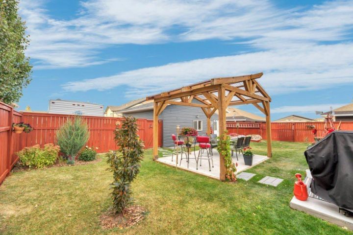 If you’re ready to live a quieter, more peaceful life away from the hustle and bustle of the city then this home is for you! Located in the heart of Alberta’s majestic prairies Nanton offers the perfect balance of country life with city convenience. Fall in love with the charming heritage buildings, grain elevators and many other unique shopping experiences and attractions all just 40 minutes South of Calgary. This like new 3 bedroom bungalow has all the charm of a character home coupled with the modern & stylish finishes of a new home. The curb appeal is second to none. A sprawling ground level timber frame front porch is surrounded by beautifully manicured gardens featuring a variety of trees, shrubs and perennials creating the perfect place to enjoy your morning coffee and the beautiful surroundings. Soaring vaulted ceilings welcome you into the main living space which is open to the kitchen and dining area. The well equipped kitchen is finished with cheery two toned blue and white cabinetry complemented by white quartz counter tops and gleaming stainless steel appliances. This home’s terrific layout has the primary bedroom with ensuite and large walk in closet on one side of the home. The other side of the home has 2 more bedrooms plus a full bath perfect for providing a somewhat private space for your guests or children’s rooms. The fully fenced backyard has been meticulously landscaped creating your own outdoor oasis. A hand crafted gazebo on a cement pad is in the centre of the yard providing the perfect place for outdoor dining & relaxing. You’ll be able to sit back and enjoy the previous owner’s green thumb for years to come. Rounding out this terrific home is a detached double garage with oversized door, 10' ceilings, built in shelving, back alley access and RV parking. This extremely energy efficient home with in-floor heating, hot water on demand and air recirculation will lower your utility bills and reduce your overall energy consumption. You’re going to love living in Nanton - the gateway to the Canadian Badlands and the Rocky Mountains. Don’t miss your chance to make this one your own.