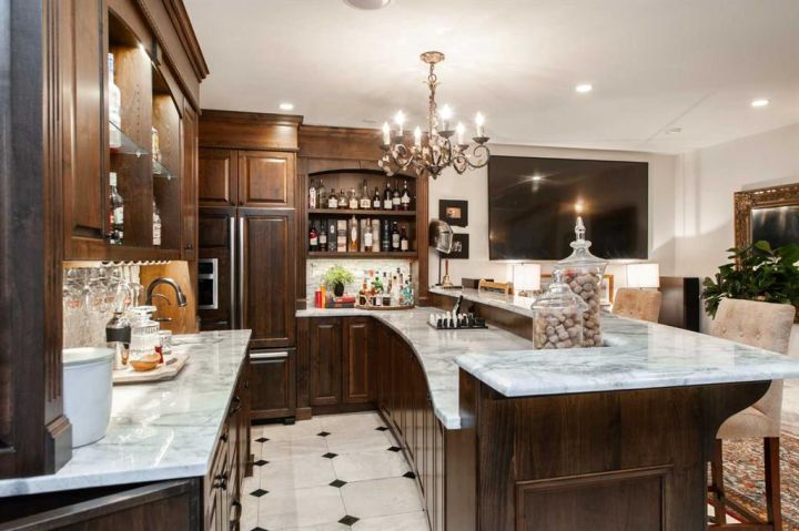 - Bar, Beamed Ceilings, Built-in Features, Central Vacuum, Chandelier, Closet Organizers, Crown Molding, Double Vanity, French Door, Granite Counters, High Ceilings, Jetted Tub, Kitchen Island, Natural Woodwork, No Smoking Home, Open Floorplan, Pantry, Recessed Lighting, See Remarks, Separate Entrance, Skylight(s), Soaking Tub, Stone Counters, Storage, Sump Pump(s), Walk-In Closet(s), Wet Bar, Wired for Data, Wired for Sound