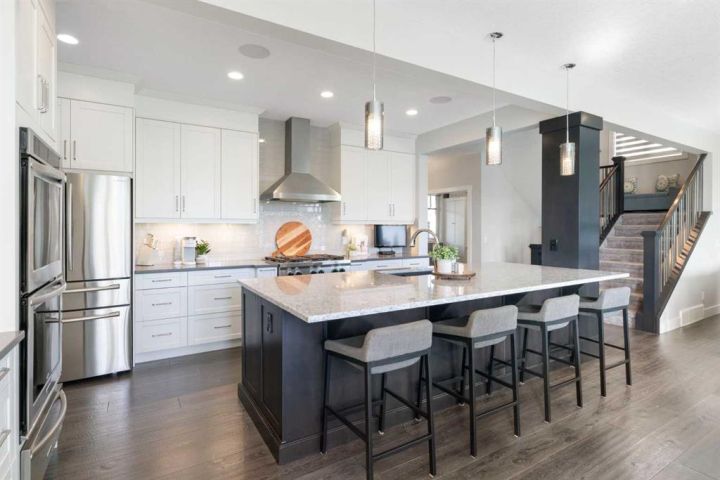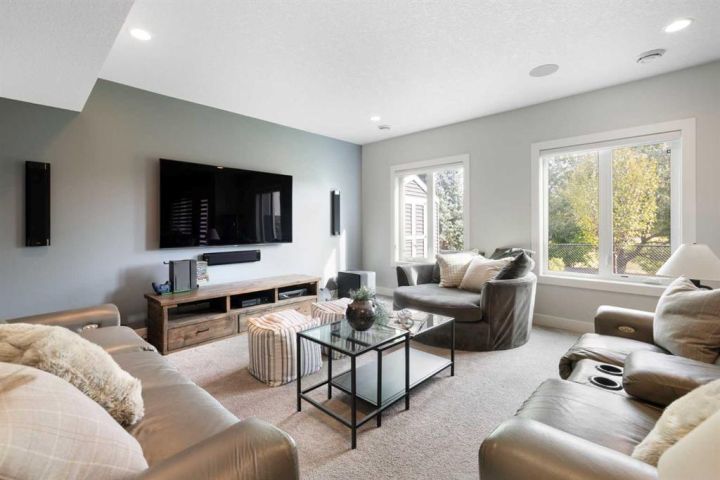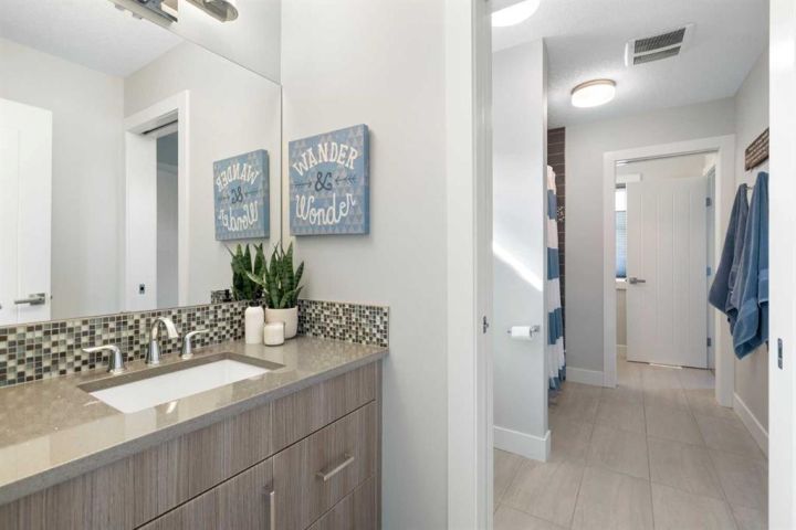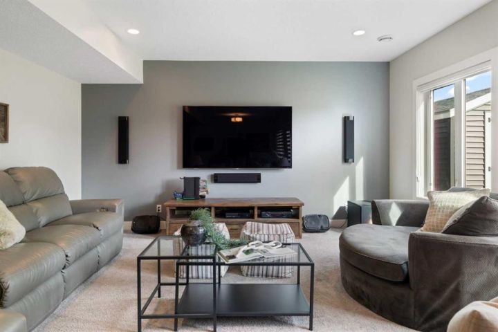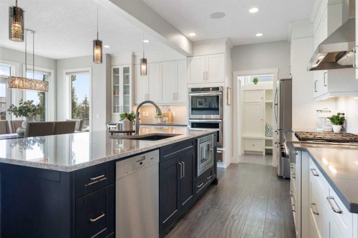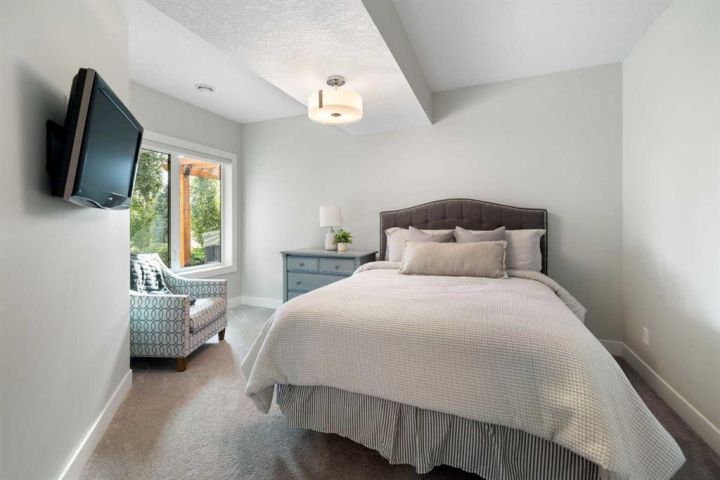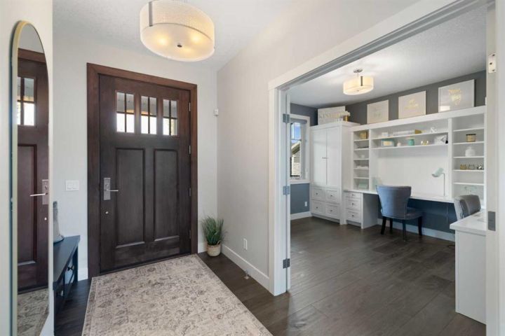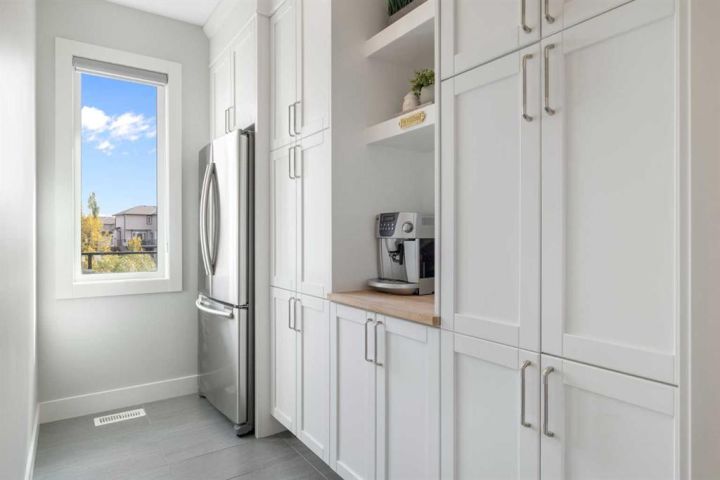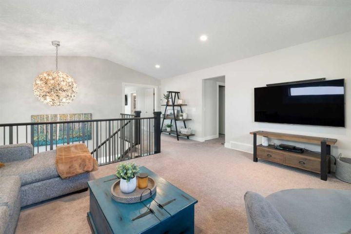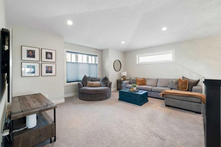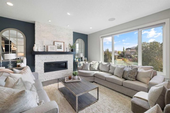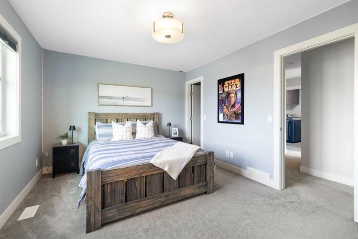 Hello, Gorgeous! Welcome to 158 Canoe Crescent SW in Airdrie, a stunning executive walkout home offering over 3,000 square feet above grade plus a fully finished basement, with 5 bedrooms and 3.5 bathrooms. Backing directly onto the canal and walking paths, this property offers the perfect blend of serenity and convenience in the desirable Canals community. From the Hardie board siding and cedar garage doors to the oversized solid wood front door, the curb appeal sets the tone for what awaits inside. Step into a grand main floor with soaring ceilings, engineered hardwood, and a chef inspired kitchen featuring floor to ceiling cabinetry, dual ovens with warming drawer, a six burner gas cooktop, and a walk in pantry with custom built-ins. The upper level provides a vaulted bonus room, three additional bedrooms, and a luxurious primary suite complete with steam shower, heated floors, and a custom walk-in closet system. The fully finished walkout basement is designed for entertaining with a wet bar, large rec room, in floor heating, and two more bedrooms. Outdoors, enjoy a professionally landscaped yard with exposed aggregate, a stamped concrete fire pit area, cedar pergola with hot tub, and a glass railing deck overlooking the water. Additional features include a fully finished heated triple car garage with epoxy flooring, two furnaces, two air conditioning units, upgraded crank windows, and a built in speaker system indoors and outdoors. This is more than just a home, it is a lifestyle, offering luxury, comfort, and location all in one.
