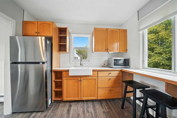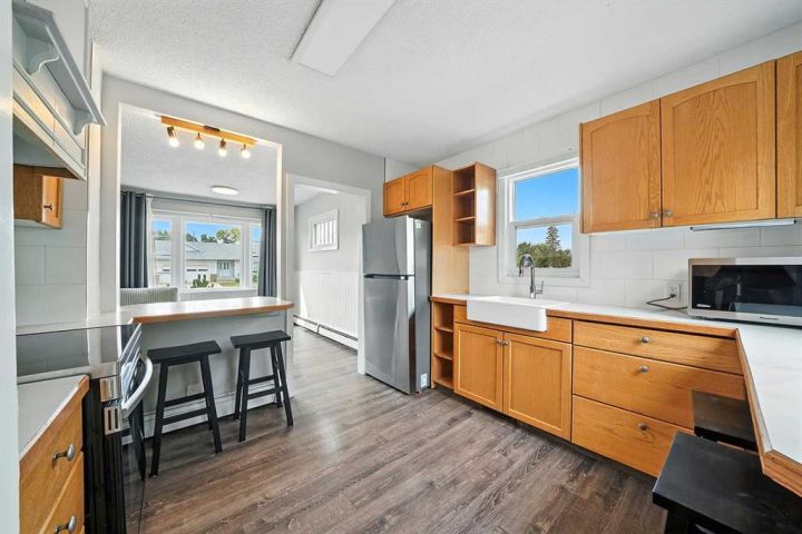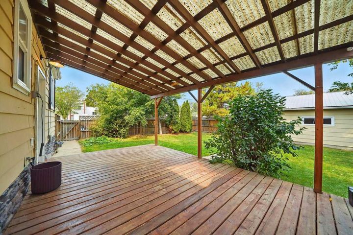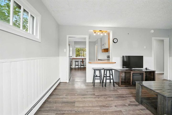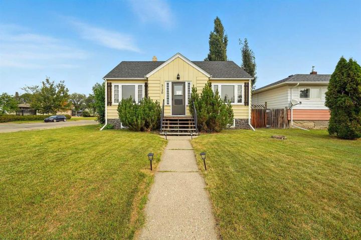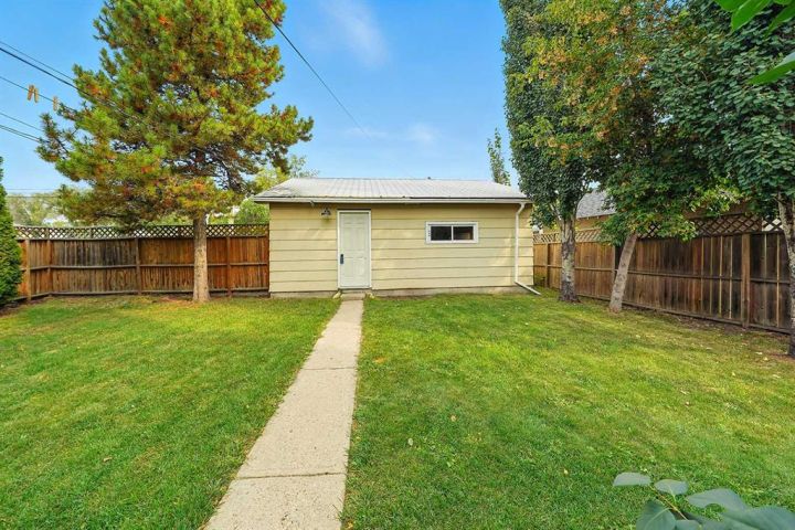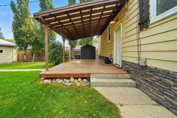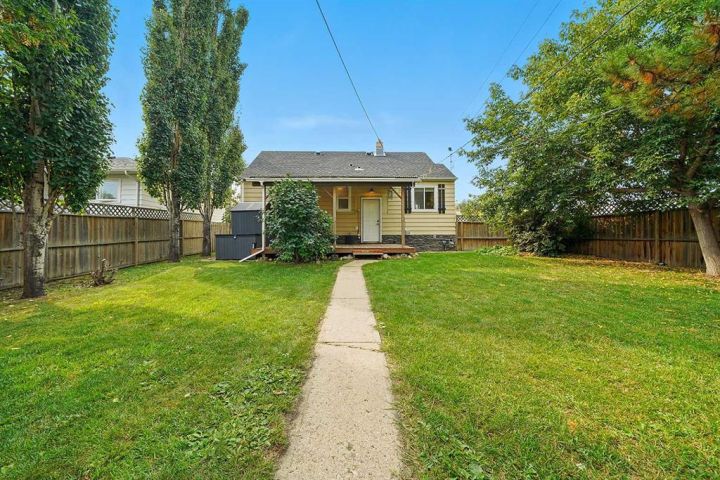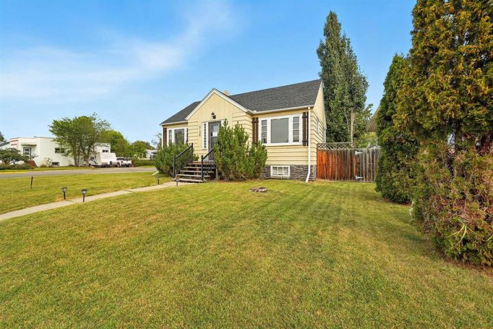 Very quaint, updated bungalow on a corner lot with a double detached garage, in a very convenient and walkable location of Ponoka! There are 2 bedrooms on the main floor and 1 in the basement with 1.5 baths, a private, fully fenced and landscaped yard & a covered deck! Upgrades over the years include: new washer & dryer, & stove in the last year, two new fridges (August 2025), eavestroughs on garage and covered deck, plumbing, some electrical, flooring, doors, jambs hardware, lights, some windows, shelving, thermostats, parging, exterior lights, updated kitchen with a farmhouse sink, water tank, & shingles. The kitchen has two counter top seating spots - one overlooking the backyard and one looking into the living room. The two main floor bedrooms are good sizes and the 4 pc bath is bright and functional. Laundry and an extra storage room (would be great for canned goods and pantry items) downstairs, with a family room, 2 pc bath, and another bedroom/den. The garage, built in 1983 measures 23'4"x23'3", ample room to park two vehicles, has a workbench, storage shelves, an extra fridge and deep freeze. You will love spending time in the backyard, which you can rain or shine under the covered deck! Level lawn, mature trees & 2 newer sheds. Tons of value, great location and very affordable whether just starting out or downsizing.