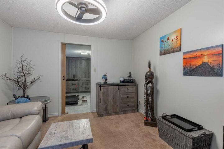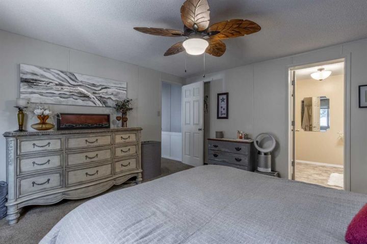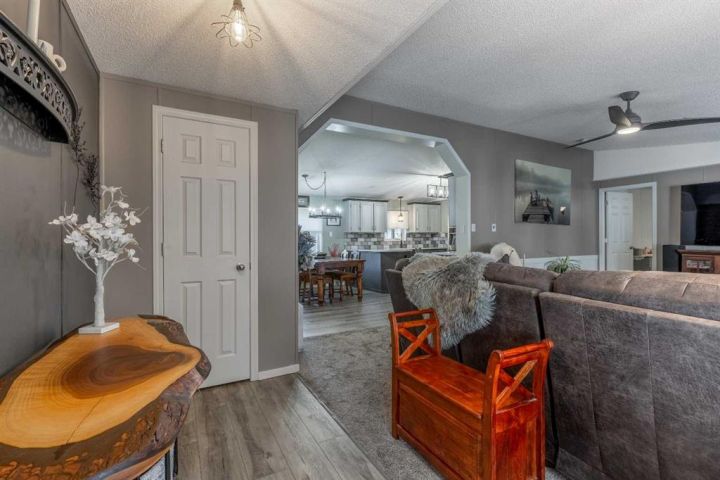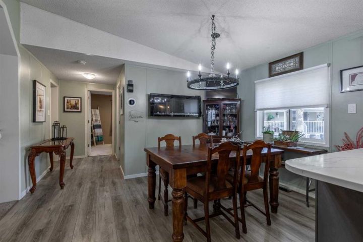 Welcome to 3004 29 Street S, a beautifully maintained manufactured home in a sought-after adult-oriented community. This inviting property offers a comfortable lifestyle with numerous upgrades and thoughtful touches throughout. Step inside to find an open and spacious layout with upgraded lighting, modern flooring, updated bathrooms, and a beautiful, large kitchen featuring stainless steel appliances and plenty of storage. The cozy electric fireplace adds warmth and character to the living space, while central A/C keeps the home comfortable year-round. Enjoy the outdoors on the expansive front porch or the low-maintenance composite deck, complete with a BBQ gas line for easy entertaining. Custom storage solutions have been added throughout the home for everyday convenience. The oversized 21' x 19' garage is insulated, wired with 220V, and includes built-in cabinetry—offering ample workspace while still leaving plenty of room for parking. This welcoming community allows one small pet, is just steps from shopping and amenities, and is known for its friendly atmosphere. Truly a move-in ready home with comfort and convenience at its core!