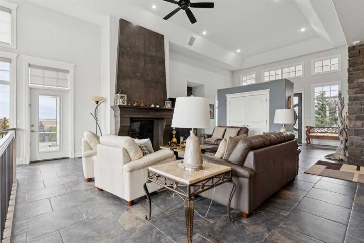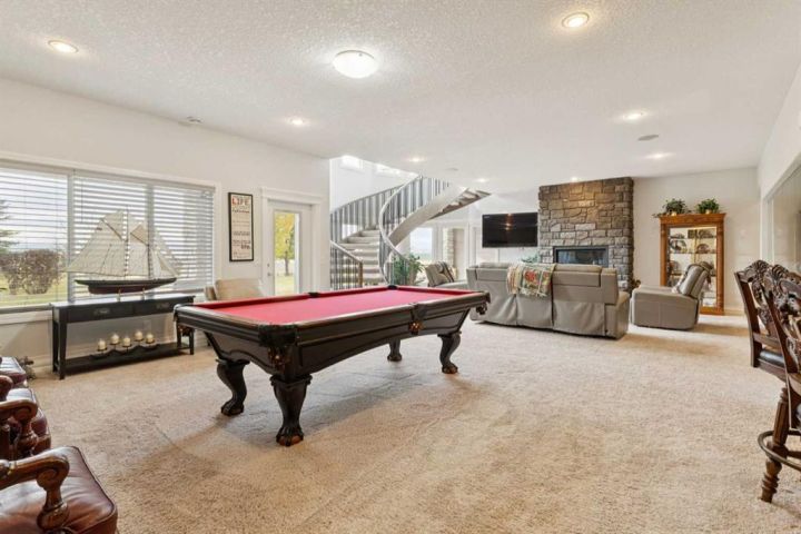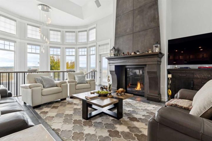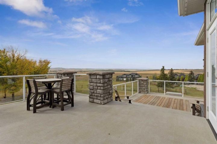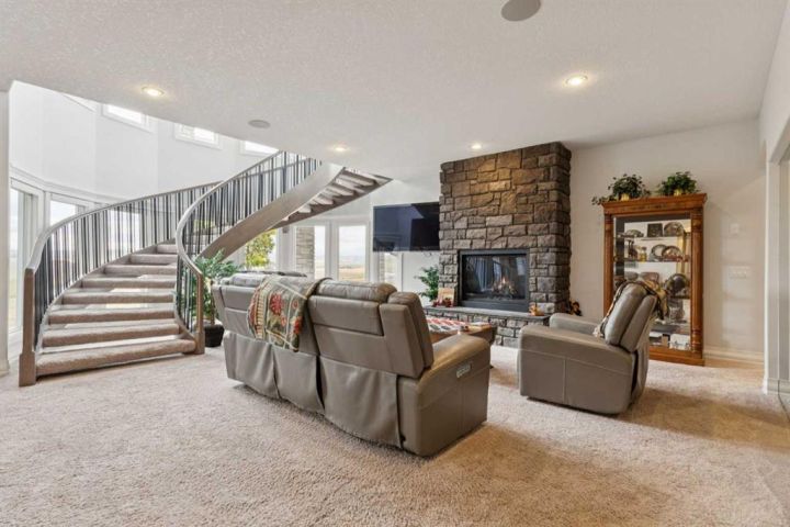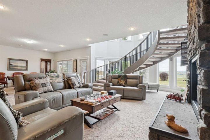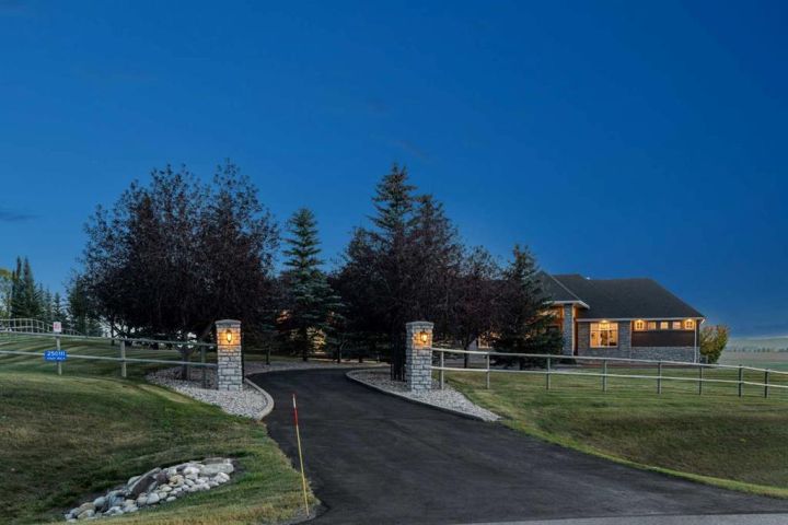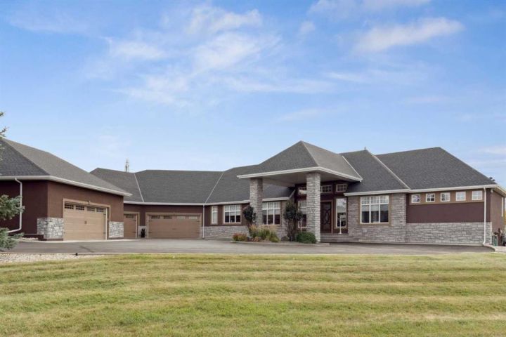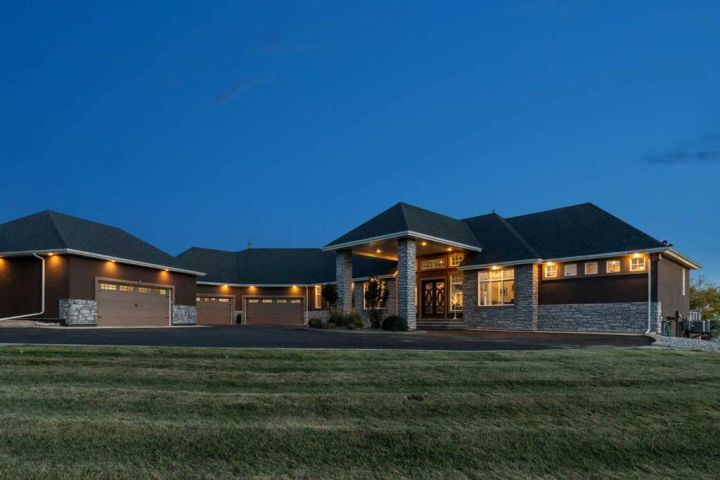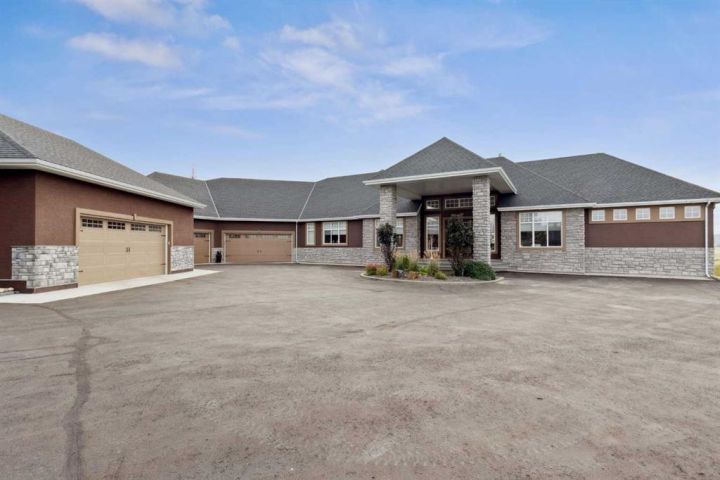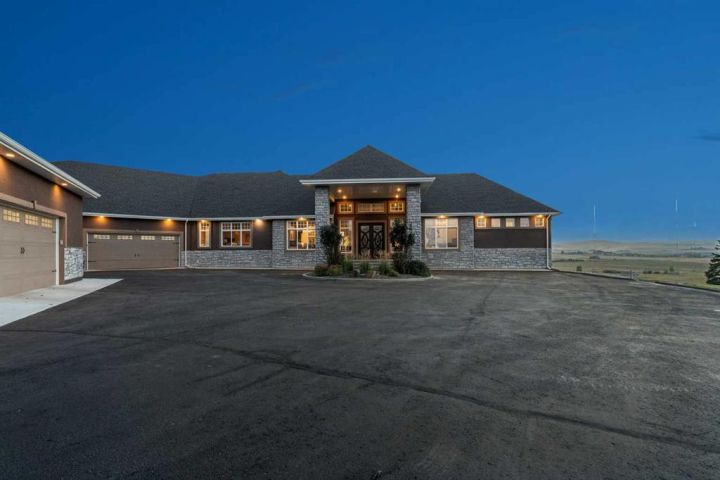 Welcome to country living at it best with mountain and city views. 3 acre gated acreage with a custom built bungalow has over 5600 square feet of space and a 6+ car garage with room to store your toys as well. Inviting entrance invites you into this bright home with high ceilings, large windows, tile flooring, cornice moldings and loads of built-ins throughout. Huge, bright and warm living room welcomes you with a floor to ceiling stone fireplace. Large dining room has loads of built-in cabinetry. Wonderful gourmet kitchen, complete with a built-in Fridge/Freezer, dual ovens, microwave and induction cooktop that is set to host guests around a massive island. The primary bedroom has a luxurious 5 piece ensuite bathroom with his and her sinks, large soaker tub, a walk-in shower and a huge walk-in closet with loads of built-ins and a large island with granite counter. Great den with a built-in double desk for all to work from. 2nd bedroom on the main floor has its own 3 piece bathroom with a walk-in shower. The lower level is completely developed with all the amenities a family would want, starting with a wonderful and warm family room with a full height gas fireplace, a desirable bar area with loads of built-ins and a storage/wine making room. The theatre room is complete with a projection TV with big screen with 8 reclining movie chairs and an amazing sound with built-in speakers. There are 2 other bedrooms, each with their own 3 piece ensuite bathrooms and there is a separate 2 piece bathroom as well. Huge furnace/storage room with loads of room for all of your things and up to date mechanical system. There is hydronic floors throughout the home to make it more comfortable. The huge heated garage houses 7+ vehicles, outdoor equipment, sitting/work area, work benches and loads of storage. The 3 acre parcel has underground sprinklers and is fully fenced with a separate dog run. View from the south and all the way to the north leave nothing to be desired. Loads of upgrades have recently been competed on this home including; garage addition, newer roof, furnaces and air conditioners, boiler, gemstone lighting and whole home backup generator system. Call to view this amazing home today.