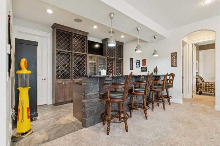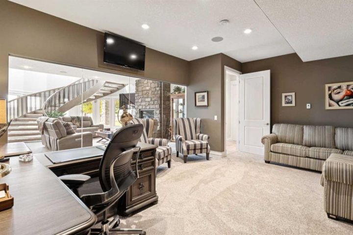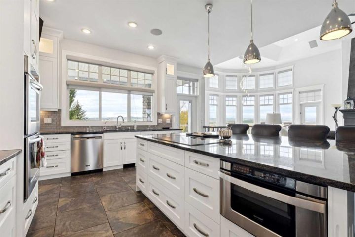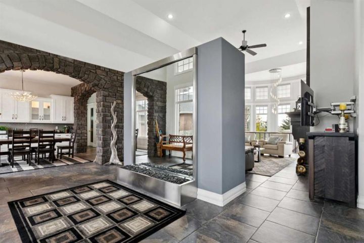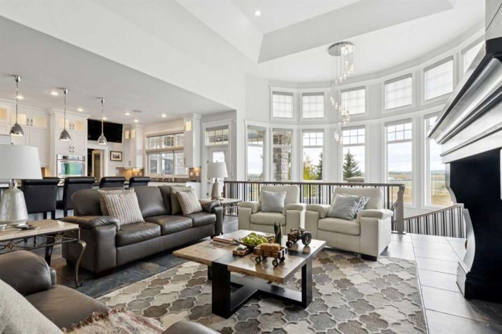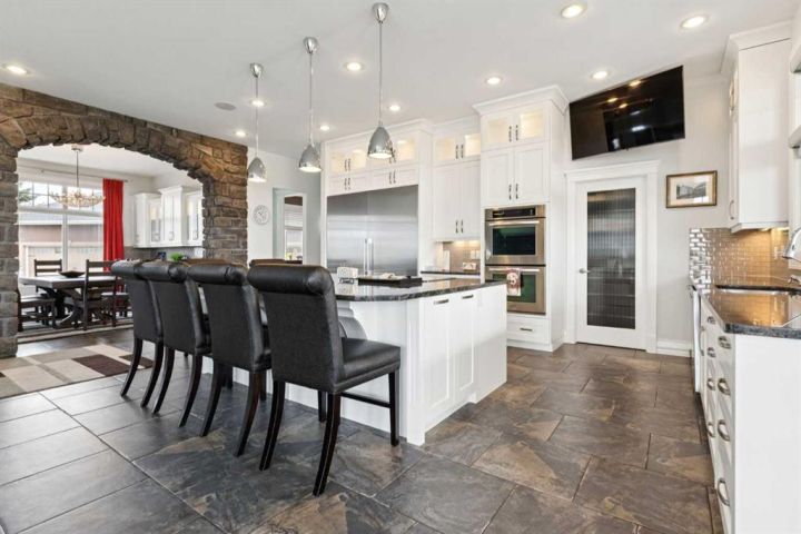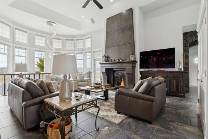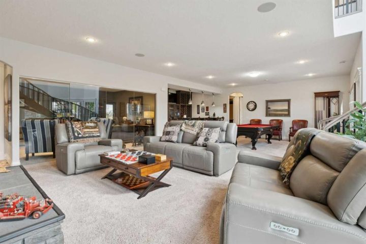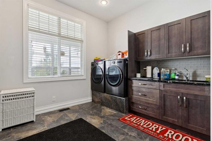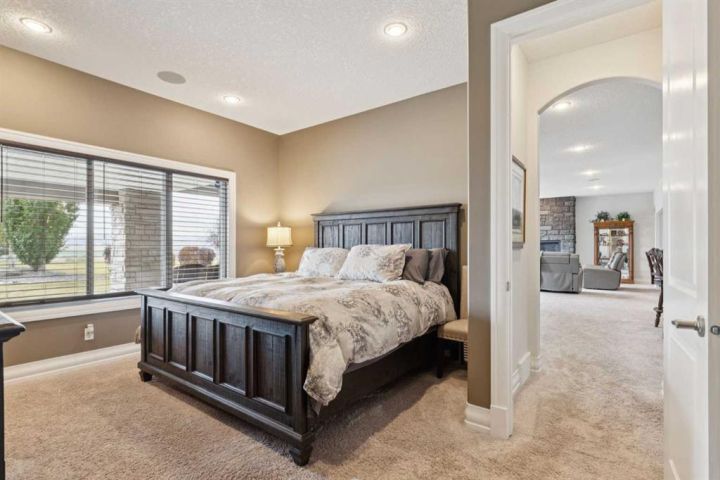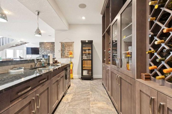 Welcome to country living at it best with mountain and city views. 3 acre gated acreage with a custom built bungalow has over 5600 square feet of space and a 6+ car garage with room to store your toys as well. Inviting entrance invites you into this bright home with high ceilings, large windows, tile flooring, cornice moldings and loads of built-ins throughout. Huge, bright and warm living room welcomes you with a floor to ceiling stone fireplace. Large dining room has loads of built-in cabinetry. Wonderful gourmet kitchen, complete with a built-in Fridge/Freezer, dual ovens, microwave and induction cooktop that is set to host guests around a massive island. The primary bedroom has a luxurious 5 piece ensuite bathroom with his and her sinks, large soaker tub, a walk-in shower and a huge walk-in closet with loads of built-ins and a large island with granite counter. Great den with a built-in double desk for all to work from. 2nd bedroom on the main floor has its own 3 piece bathroom with a walk-in shower. The lower level is completely developed with all the amenities a family would want, starting with a wonderful and warm family room with a full height gas fireplace, a desirable bar area with loads of built-ins and a storage/wine making room. The theatre room is complete with a projection TV with big screen with 8 reclining movie chairs and an amazing sound with built-in speakers. There are 2 other bedrooms, each with their own 3 piece ensuite bathrooms and there is a separate 2 piece bathroom as well. Huge furnace/storage room with loads of room for all of your things and up to date mechanical system. There is hydronic floors throughout the home to make it more comfortable. The huge heated garage houses 7+ vehicles, outdoor equipment, sitting/work area, work benches and loads of storage. The 3 acre parcel has underground sprinklers and is fully fenced with a separate dog run. View from the south and all the way to the north leave nothing to be desired. Loads of upgrades have recently been competed on this home including; garage addition, newer roof, furnaces and air conditioners, boiler, gemstone lighting and whole home backup generator system. Call to view this amazing home today.