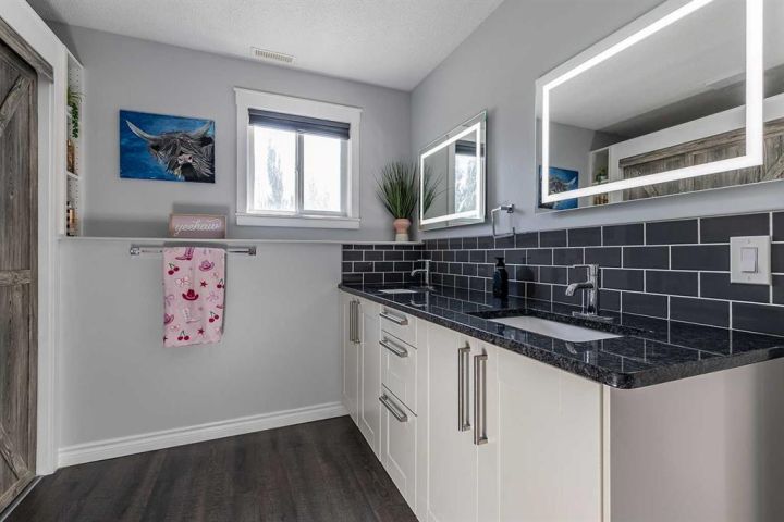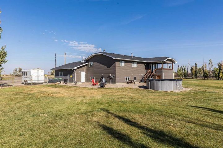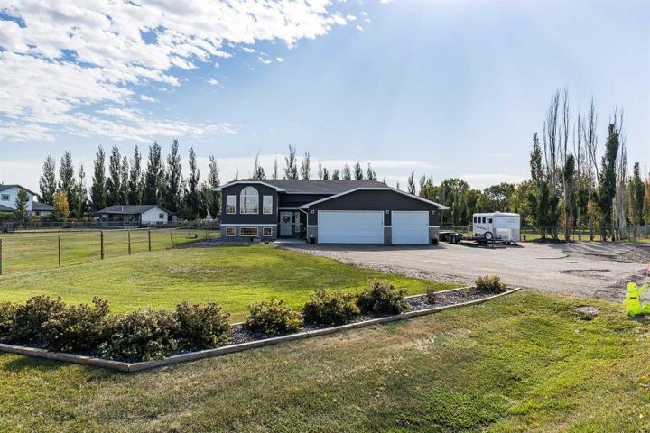 Looking for the best of both worlds? Acreage living just minutes from Medicine Hat! This fully renovated 5 bedroom, 3 bathroom bi-level sits on 1.22 acres with pavement right to your door—giving you all the space you crave without sacrificing convenience. From top to bottom, this home has been beautifully updated and is truly turn-key ready. You’ll love the modern finishes throughout, including new vinyl plank flooring, fresh neutral paint, updated cabinets, counters, some new windows, and stylish finishing touches. The bright entryway leads up to a stunning open kitchen complete with stainless steel appliances, corner pantry, an abundance of white cabinetry, bar sink, and a large island that flows into the spacious dining area. The living room is filled with natural light from the large front windows, creating a warm and welcoming space. The main level features 2 bedrooms, including a massive primary suite with walk-through closet and spa-like ensuite with dual sinks and a tiled shower. A main floor laundry room and full 4-piece bathroom complete this level. Downstairs offers even more room for family and guests, with a huge family room anchored by a cozy gas fireplace, 3 additional bedrooms, a bathroom with corner shower and double sinks, plus a bonus room perfect for a home gym, playroom, games room, or home theater. Step outside to enjoy your private outdoor retreat. A covered deck is perfect for relaxing or entertaining, while the fenced and landscaped yard with undergrounds is surrounded by mature trees. Extras like a chicken coop and above ground pool add to the country charm. Vehicle and hobby enthusiasts will love the triple attached heated garage with bar area plus the additional double detached garage/shop (28’11” x 26’ 11”). This property truly offers it all—acreage living, modern updates, space for the whole family, and just minutes from the city. Water hauling is approx. $120/load, City of Medicine Hat utilities is $350/month, Atco is $100/month.