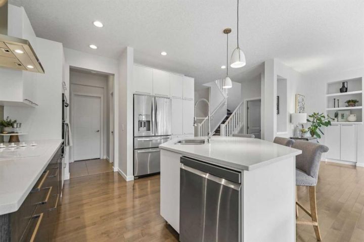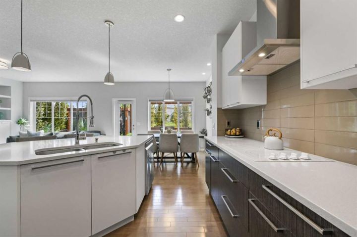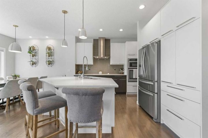 Click brochure link for more details** This 5-bedroom home – with over 3,500 sq ft of developed space has been maintained to a high standard and reflects true pride of ownership – and features a bright, open floor plan perfect for modern living. The gourmet kitchen has been designed for both style and function, featuring sleek cabinetry, quartz countertops, a spacious center island, walk-in and butler’s pantries, and abundant storage for effortless organization. Upper-level features hardwood flooring, four bedrooms including a luxurious primary bedroom with spa-inspired ensuite, a spacious bonus room with a cozy fireplace, an additional private ensuite, another full bathroom, and the convenience of upper-level laundry. The lower level offers a spacious rec room with custom built-in fireplace, a full bath, a flexible fifth bedroom, versatile flex space, and plenty of storage. Step into your own private retreat with a beautifully designed south-facing backyard perfect for relaxing and entertaining. The spacious deck and charming pergolas add both style and shade - creating an inviting space to enjoy. Surrounded by mature landscaping and backing onto a green-space and pathway – this backyard seamlessly blends comfort and functionality. Extras: new dual-zone furnace installed in 2022, A/C, heated garage with 220V.
