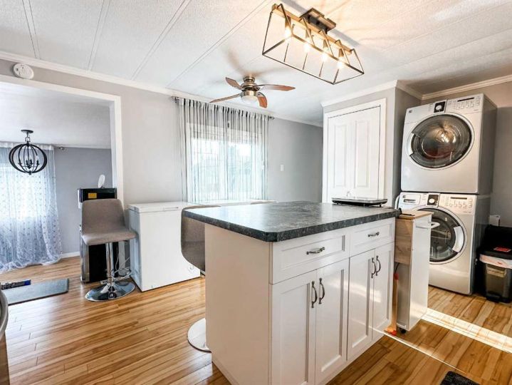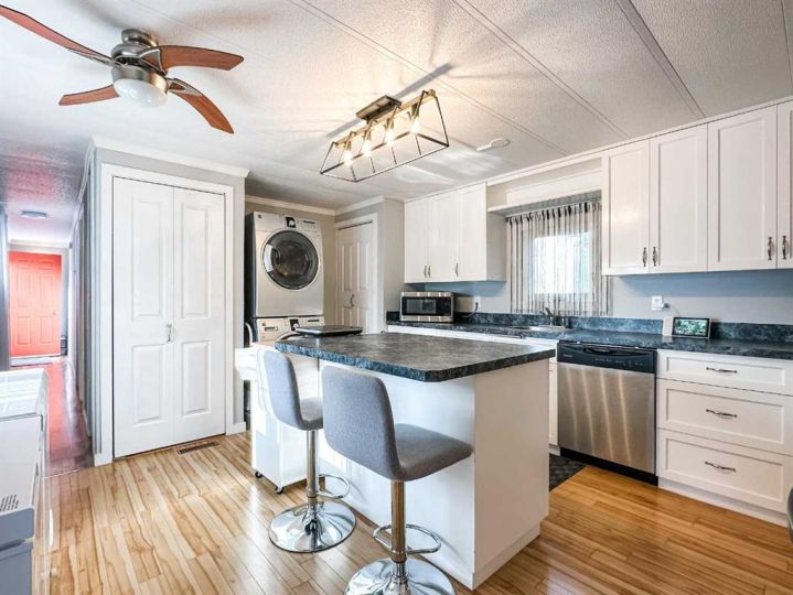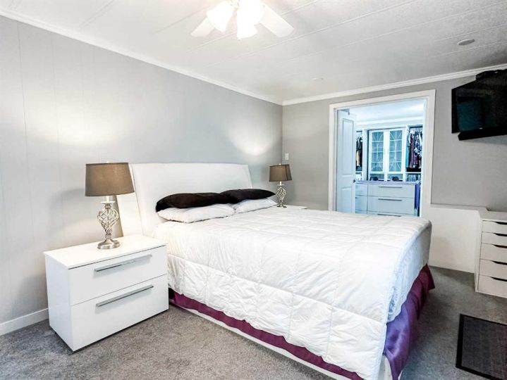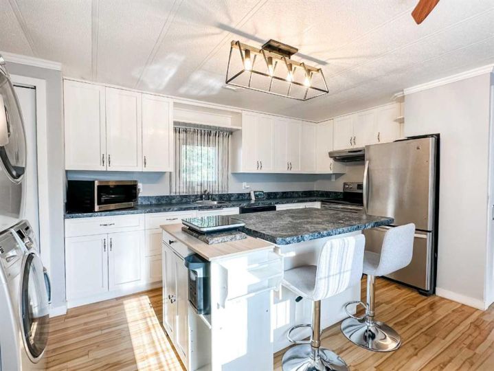 Charming and affordable, this 1 bedroom, 1 bathroom mobile home on its own lot is move-in ready with many upgrades throughout. Enjoy peace of mind with newer windows, flooring, trim, and doors, along with an updated kitchen offering plenty of cabinet space. The spacious entryway and large walk-in closet add comfort and functionality. Outside, relax in your private yard featuring a gazebo and hot tub, plus a powered shed for extra storage. Off-street parking and no lot fees. You'll appreciate the updates and the welcoming atmosphere of this home.