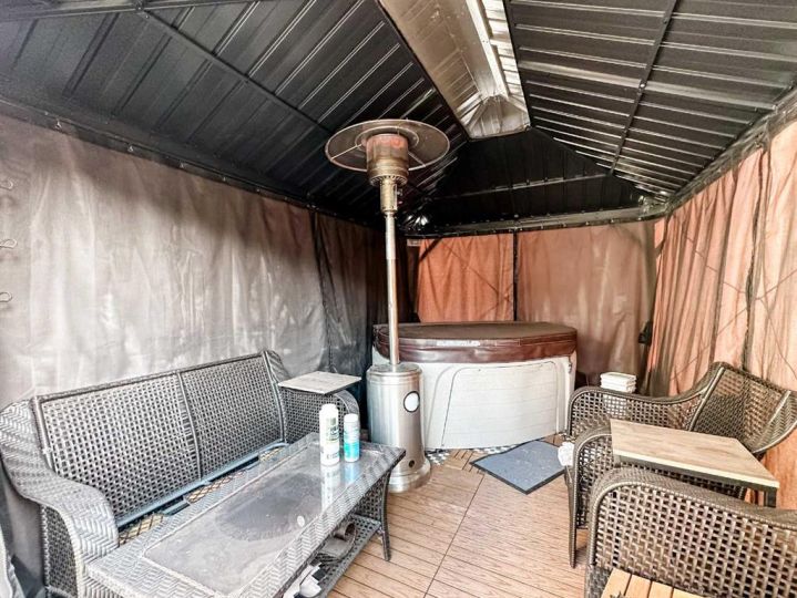 Fridge, Stove, Dishwasher, Washer, Dryer, Window Coverings, Hot Tub, Gazebo, Shed