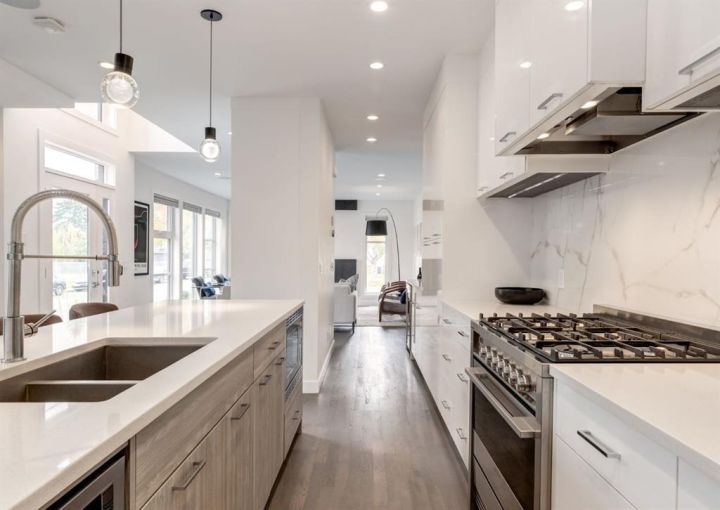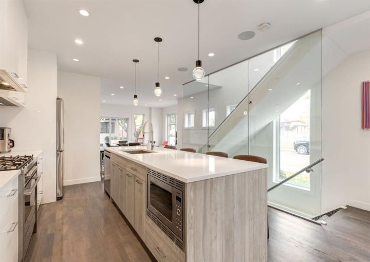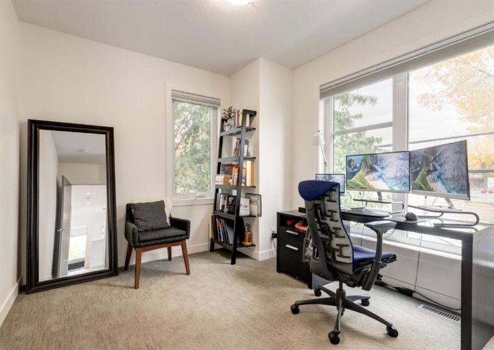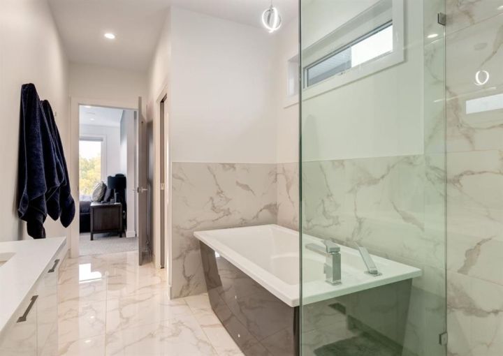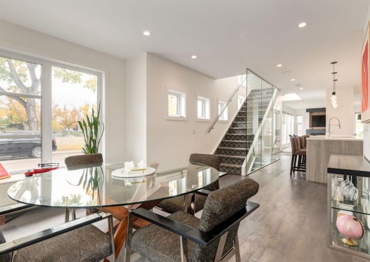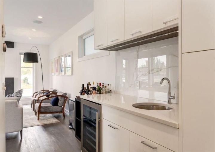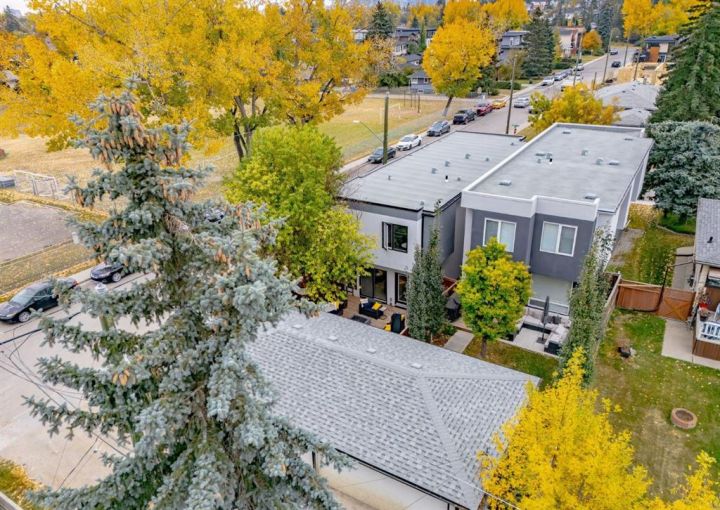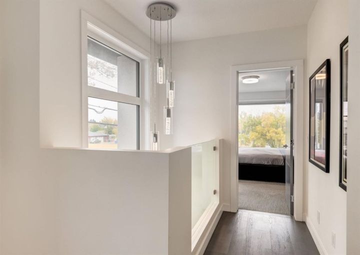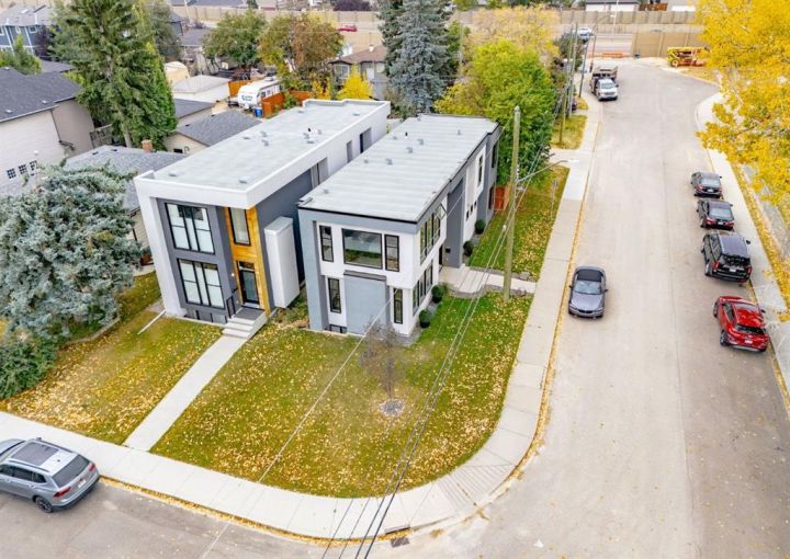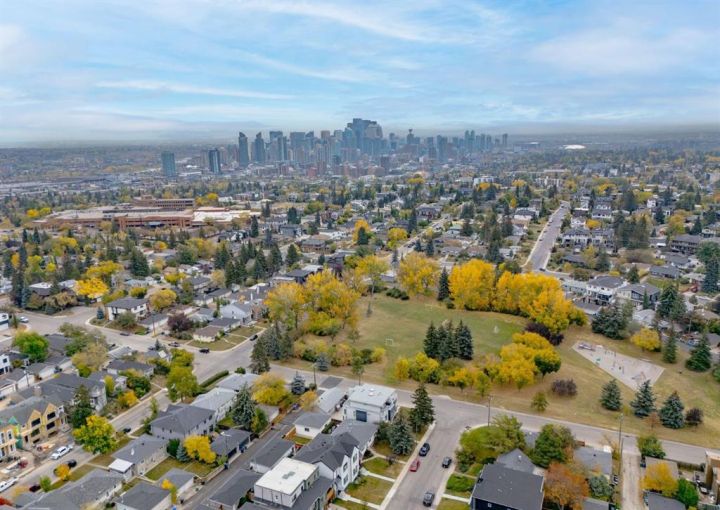 DETACHED HOME nestled on a quiet cul-de-sac in the heart of Richmond, this residence on a corner lot combines thoughtful design, a unique floor plan, and an unbeatable location. With parkside views and an abundance of natural light, this home is just steps to schools, public transit, and all the shops and restaurants of vibrant Marda Loop. The main floor is anchored by a full-width family room with custom fireplace millwork and a striking glass feature wall around the staircase. The chef’s kitchen offers a butler’s pantry, stainless steel appliances, a large gas range, quartz countertops, under-cabinet lighting, and a spacious dining room with patio doors that open onto the WEST-facing backyard. Here, a huge deck with gas lines for both BBQ and fire pit makes the perfect setting for entertaining. Upstairs, the primary retreat overlooks the green space with City skyline views. A large walk-in closet connects to the spa-inspired ensuite, complete with heated floors, dual vanities, soaker tub, curbless shower, and private water closet. Two additional bedrooms, a full guest bath, and a laundry room with sink complete this level. The fully developed lower level features a rec room with wet bar, a generous guest bedroom, sleek bathroom, and ample storage. Additional highlights include engineered hardwood flooring, ceiling speakers, built-in benches, custom millwork, air conditioning, and a fully insulated double garage with tire rack. Meticulously cared for by the original owners, this home is move-in ready. Floor plans and a 3D tour are readily available, providing a glimpse into this stylish home!