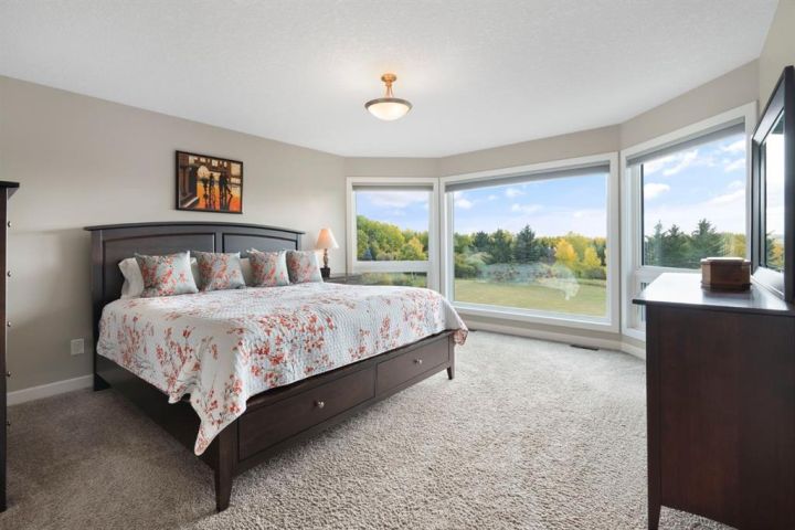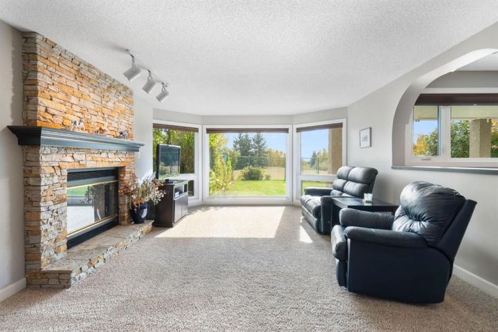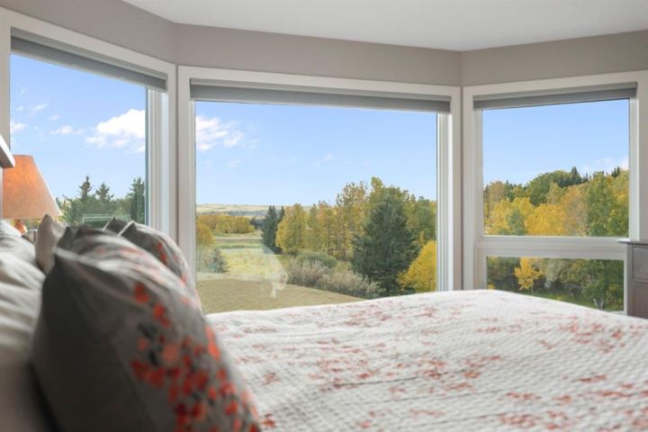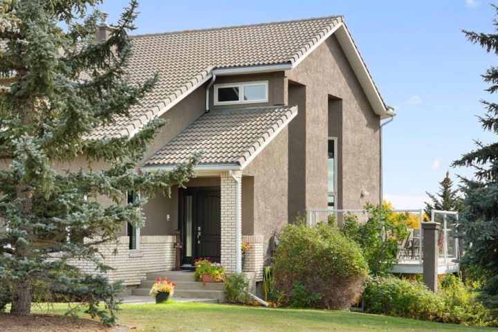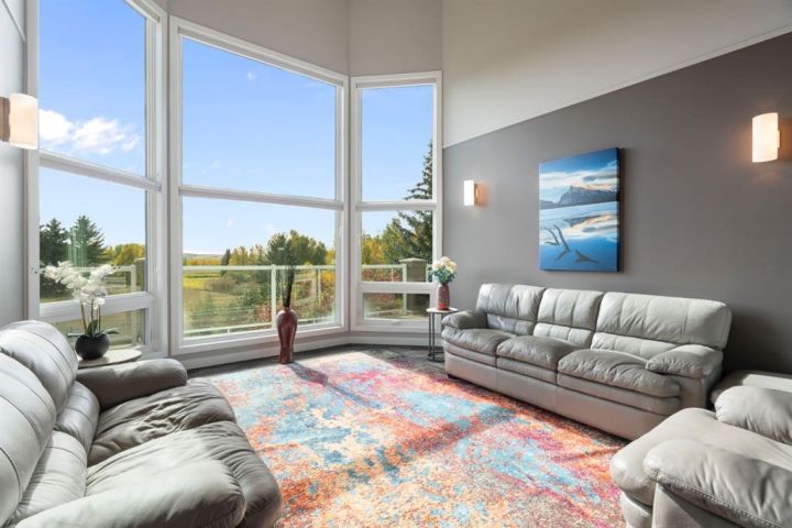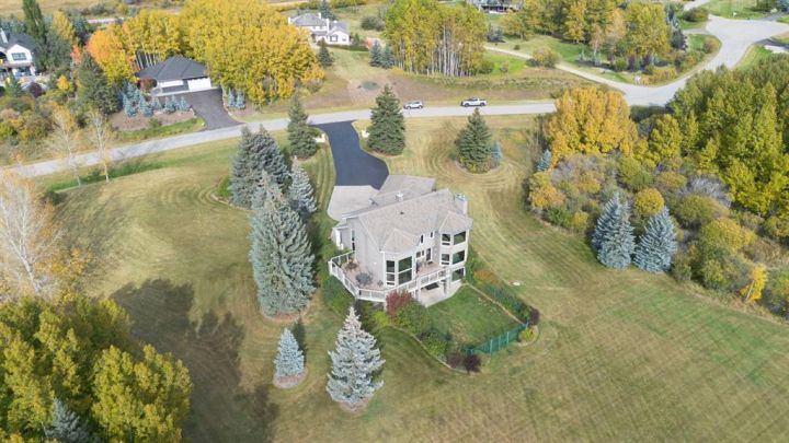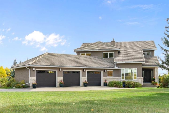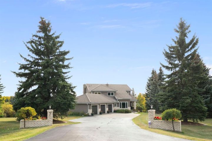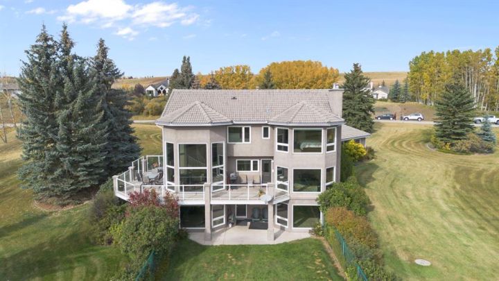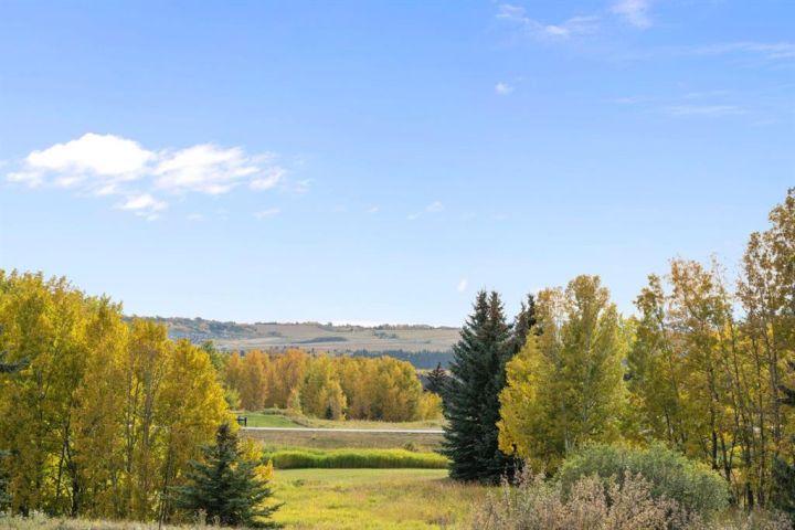 ** Check out our Cinematic Virtual Tour and the iGuide** This home in Blueridge Estates is walking distance to Calgary city limits! Surrounded by lush native landscape and mountain views this warm & inviting two storey walkout offers 4,456 sqft of total living space on a quiet cul-de-sac on 2.47 acres of rolling countryside. Lovingly maintained and upgraded throughout, this 4 bedroom home has many highlights; low-E triple pane windows throughout, oversized triple attached garage with built-in cabinets and workbench, concrete tile roof, 2-sided southwest facing deck with gas bbq line and glass railings , formal dining room with vaulted ceilings, cozy family room with gas fireplace, and dramatic grand room with 17-foot ceilings. The kitchen, overlooking the family room, is complete with premium granite countertops, large island, ample storage, double ovens, and under cabinet lighting. It's proximity to the family room inspires cosy nights with loved ones or lively evenings entertaining. On the 2nd level is an open loft area and 3 bedrooms - including the primary. The private views from the primary are peaceful and just what is needed after a long day. The primary includes a generous walk-in closet and soaker tub ensuite with double sinks. In-floor heat and under cabinet lighting elevate this space into a sanctuary. The walkout basement level is finished with a 4th bedroom/home office, fabulous rec room with stone fireplace, wet bar, bonus room for ample storage, central vacuum (Vacuflo) and access to a fenced-in dog run for your furry family member. Recent upgrades: Driveway Refinished (2025), New Dishwasher(2025), New Washer/Dryer (2024), 2 New Exterior Doors (2022), New Microwave (2022), Removal of Poly-B Piping (2022); New Refrigerator (2020), All eavestroughs/downspouts repaired (2020); New Front Door and Sidelights (2020), Replaced 3 garage doors/motors (2019).The landscaping on this property has been continuously upgraded since 2016, with the addition of numerous new trees and shrubs, as well as brick borders around the beds to create a more refined appearance. This outstanding home offers the best of both worlds...peaceful country living but just minutes from all the city amenities. Don't wait to book your private tour! Your family's new home is waiting for you!