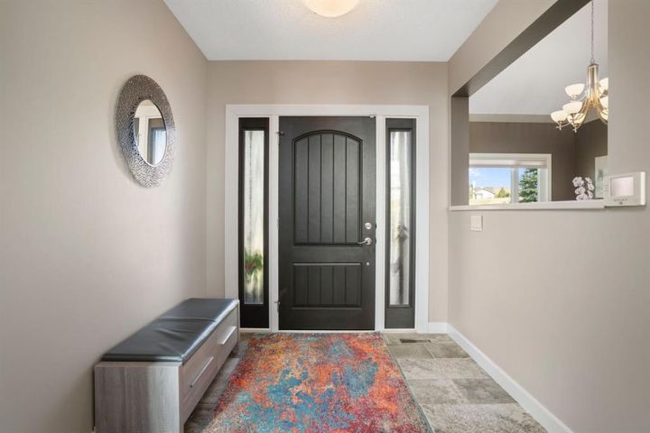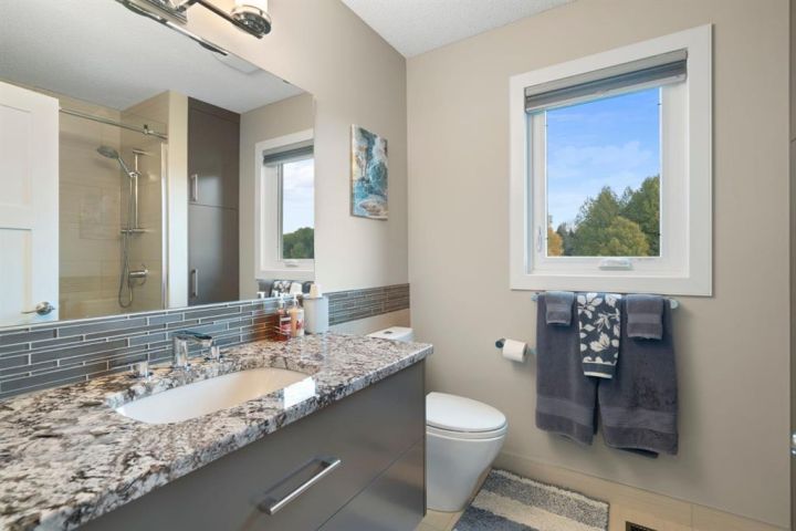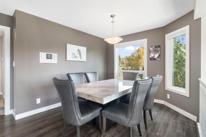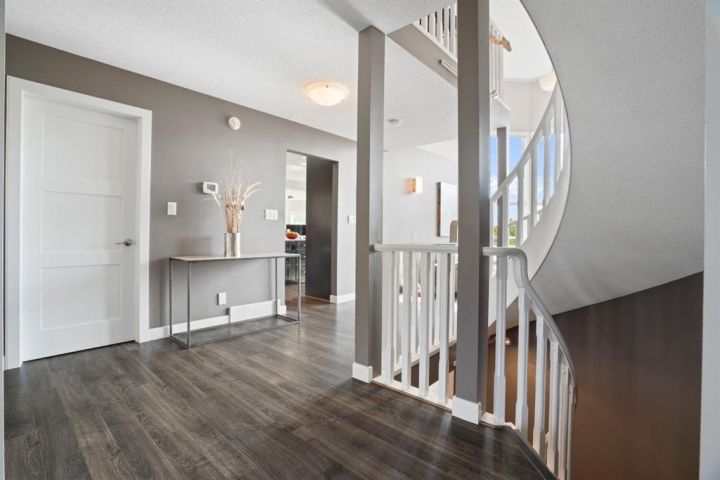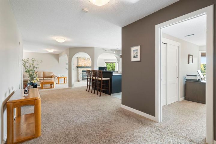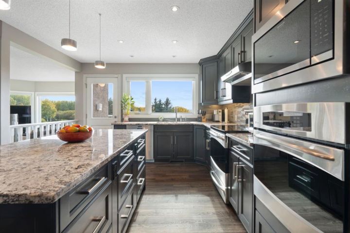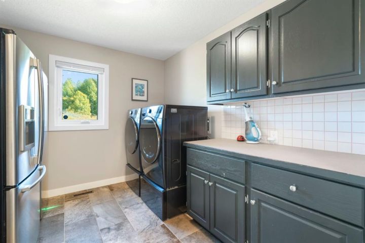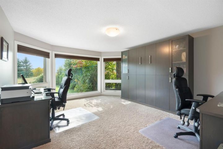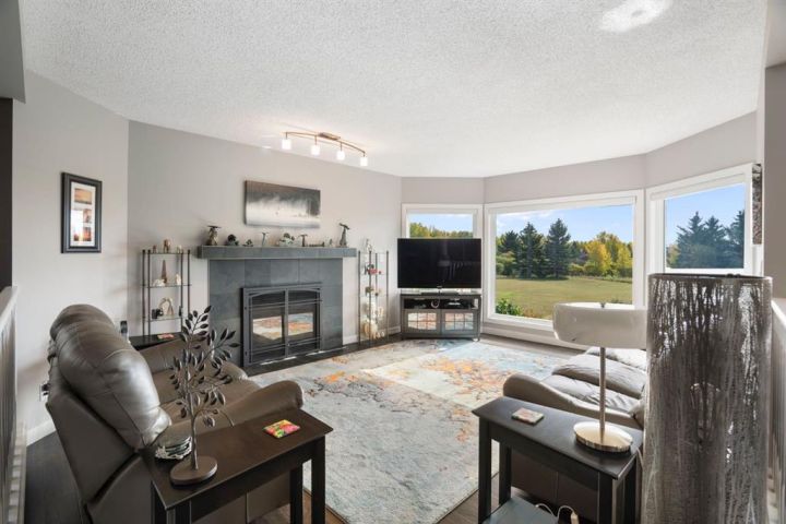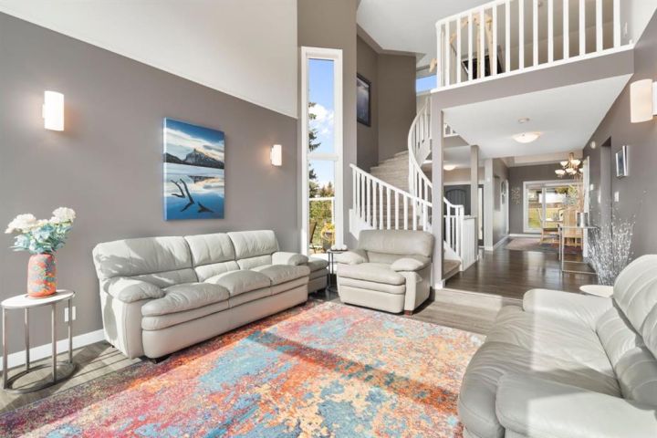 ** Check out our Cinematic Virtual Tour and the iGuide** This home in Blueridge Estates is walking distance to Calgary city limits! Surrounded by lush native landscape and mountain views this warm & inviting two storey walkout offers 4,456 sqft of total living space on a quiet cul-de-sac on 2.47 acres of rolling countryside. Lovingly maintained and upgraded throughout, this 4 bedroom home has many highlights; low-E triple pane windows throughout, oversized triple attached garage with built-in cabinets and workbench, concrete tile roof, 2-sided southwest facing deck with gas bbq line and glass railings , formal dining room with vaulted ceilings, cozy family room with gas fireplace, and dramatic grand room with 17-foot ceilings. The kitchen, overlooking the family room, is complete with premium granite countertops, large island, ample storage, double ovens, and under cabinet lighting. It's proximity to the family room inspires cosy nights with loved ones or lively evenings entertaining. On the 2nd level is an open loft area and 3 bedrooms - including the primary. The private views from the primary are peaceful and just what is needed after a long day. The primary includes a generous walk-in closet and soaker tub ensuite with double sinks. In-floor heat and under cabinet lighting elevate this space into a sanctuary. The walkout basement level is finished with a 4th bedroom/home office, fabulous rec room with stone fireplace, wet bar, bonus room for ample storage, central vacuum (Vacuflo) and access to a fenced-in dog run for your furry family member. Recent upgrades: Driveway Refinished (2025), New Dishwasher(2025), New Washer/Dryer (2024), 2 New Exterior Doors (2022), New Microwave (2022), Removal of Poly-B Piping (2022); New Refrigerator (2020), All eavestroughs/downspouts repaired (2020); New Front Door and Sidelights (2020), Replaced 3 garage doors/motors (2019).The landscaping on this property has been continuously upgraded since 2016, with the addition of numerous new trees and shrubs, as well as brick borders around the beds to create a more refined appearance. This outstanding home offers the best of both worlds...peaceful country living but just minutes from all the city amenities. Don't wait to book your private tour! Your family's new home is waiting for you!