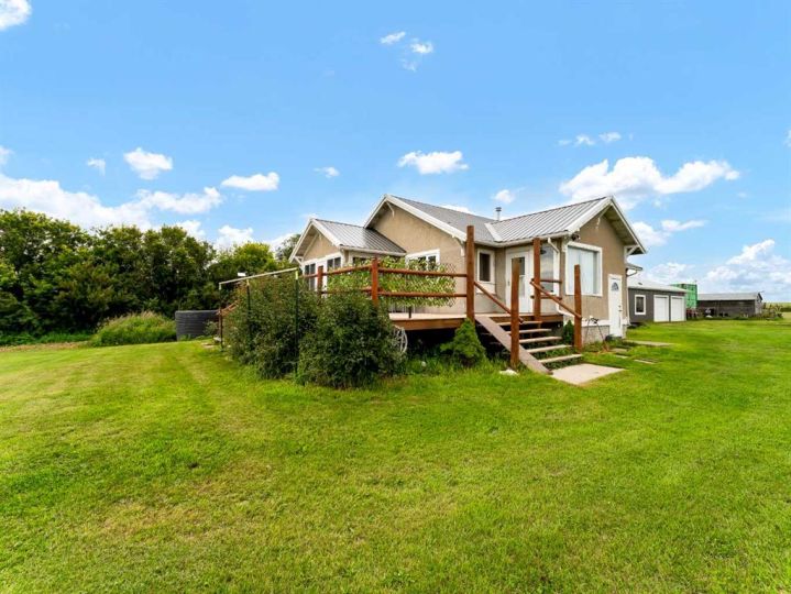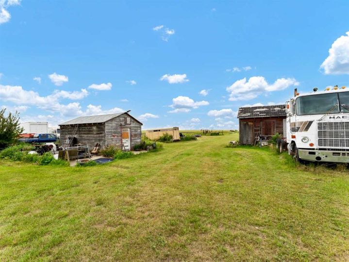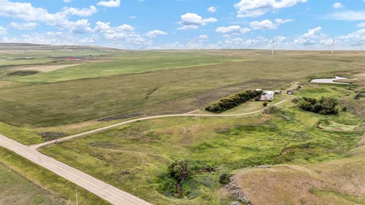 13.02 Acres in Rural Cypress County! Escape to the quiet beauty of rural Cypress County with this 13.02-acre property that blends charm, functionality, and income potential. Located just a short drive from Elkwater, this fully fenced acreage is perfect for those craving wide-open spaces and a slower pace of life. The 1,279 sq. ft. home, originally built in 1943, was placed on a brand-new concrete foundation in 2002. It has seen some updates, including nearly all new windows (95%) and a durable metal roof (2022). Inside, the bright, welcoming layout features 2 bedrooms up and 2 down, 2 full bathrooms, a spacious living room, and an updated kitchen full of character. The basement offers a cozy wood stove, perfect for chilly winter nights. Electrical was updated in 2002. A massive 30x50 insulated garage/workshop, complete with a propane heater, offers endless possibilities for storage, hobbies, or a home-based business. The property is equipped with a septic and tank field system and is connected to the Elkwater Water Co-op (approx. $600/year). Plus, it generates a guaranteed annual wind turbine income of $2,500. Outdoors, you’ll enjoy the 13.02 acres of land; including 4.5 acres of hayfield, an abundance of wild Saskatoon berry bushes, and plenty of room to garden, raise animals, or simply soak up the prairie views. Whether you’re dreaming of a quiet homestead, hobby farm, or a country retreat with bonus income, this acreage offers it all—a rare find you won’t want to miss!