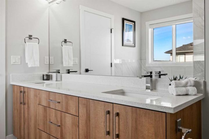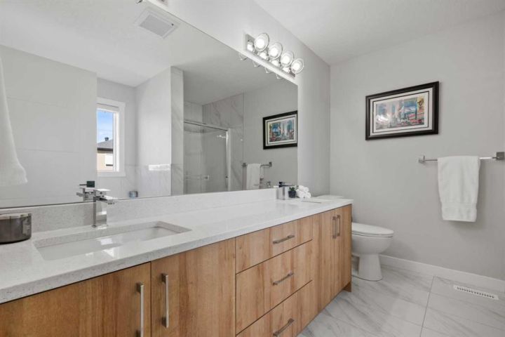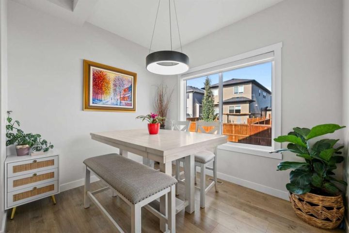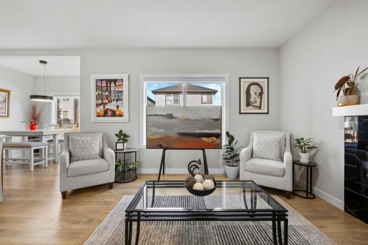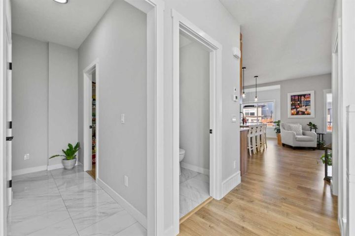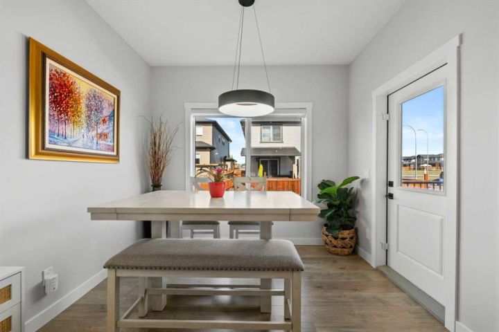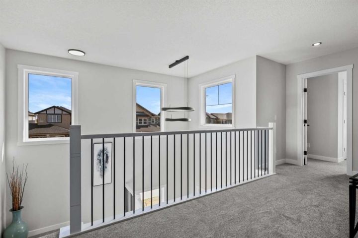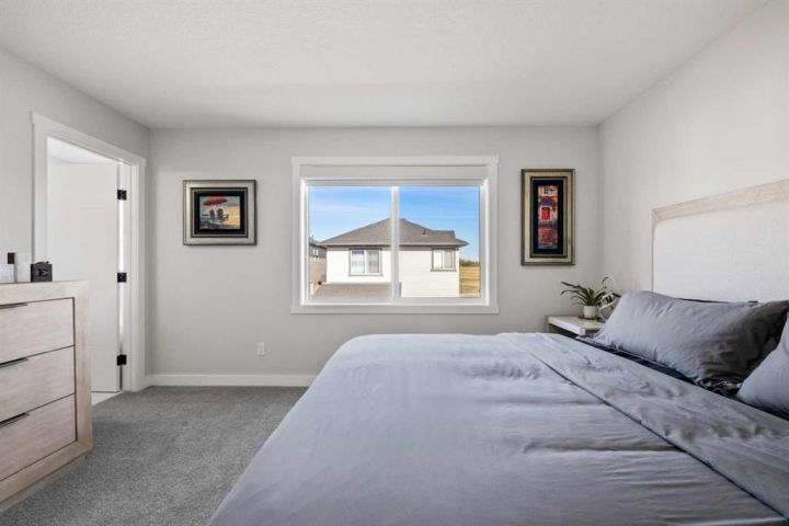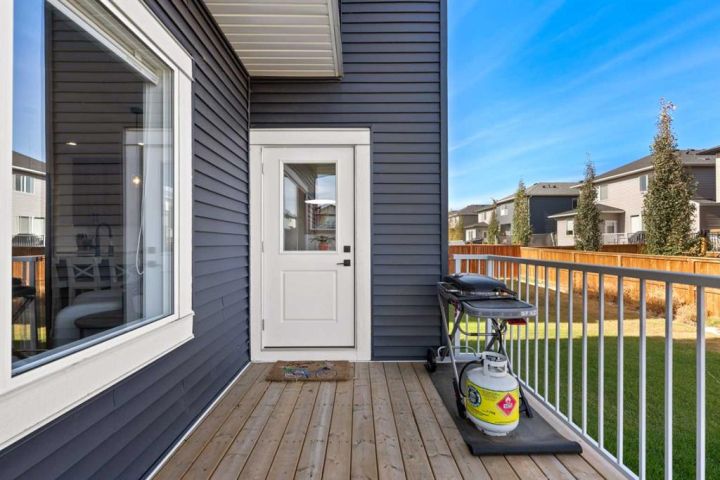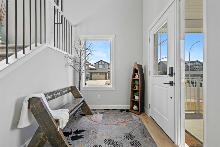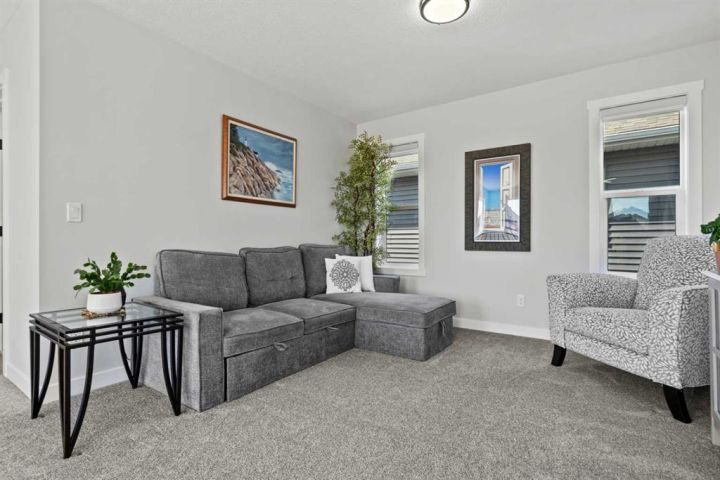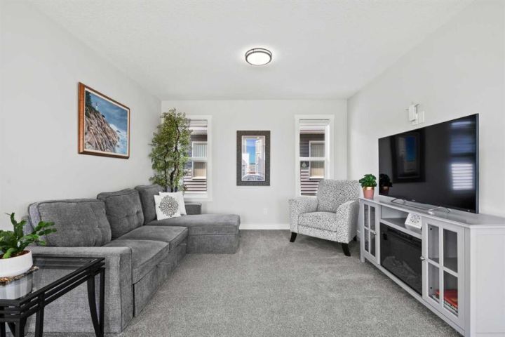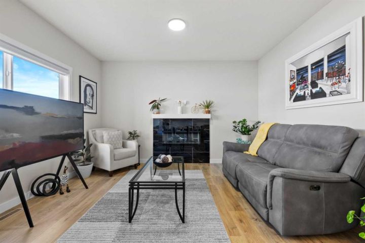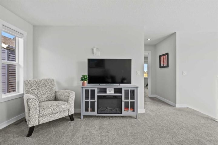 Discover the perfect blend of comfort and style in this like-new semi-detached home, ideally located on a desirable corner lot in the heart of Edgefield, Strathmore. Flooded with natural light, this thoughtfully designed 1,907 sq. ft. home offers a welcoming and functional layout. Step into a spacious entry with a soaring ceiling and a beautiful staircase leading to the second level. Continue past the main floor laundry and powder room to the modern open-concept design with stylish finishes. The main floor is anchored by an exquisite kitchen boasting a large island, quartz countertops, and plenty of cupboard and counter space. The kitchen flows seamlessly into the dining and living areas. The sunny dining nook overlooks the backyard and leads to the deck, offering convenience for barbecuing and outdoor enjoyment. There’s plenty of room to gather in the living room, which features a large window and a striking electric fireplace framed with ceramic tile. At the top of the stairs, you’ll find a cozy bonus room, three generous bedrooms, and a nicely appointed main bath. The primary retreat offers a walk-in closet and a spa-inspired ensuite with dual sinks, a separate shower, and a soaker tub. The unfinished basement is smartly laid out and awaits your creativity, offering two large egress windows, a bathroom rough-in, and a separate side entry. This thoughtful design provides exciting possibilities for a future suite or multi-generational living (secondary suite subject to municipal approval and permitting). Outside, the spacious backyard is a blank canvas ready for your landscaping ideas. Located in a growing community with a K–9 school and the Strathmore Sports Centre just steps away, plus shopping, scenic pathways, and nearby amenities, this home is ideal for families and savvy investors alike. Strathmore offers affordable living with a strong sense of community—only 25 minutes east of Calgary—making this the perfect place to plant roots and grow.
