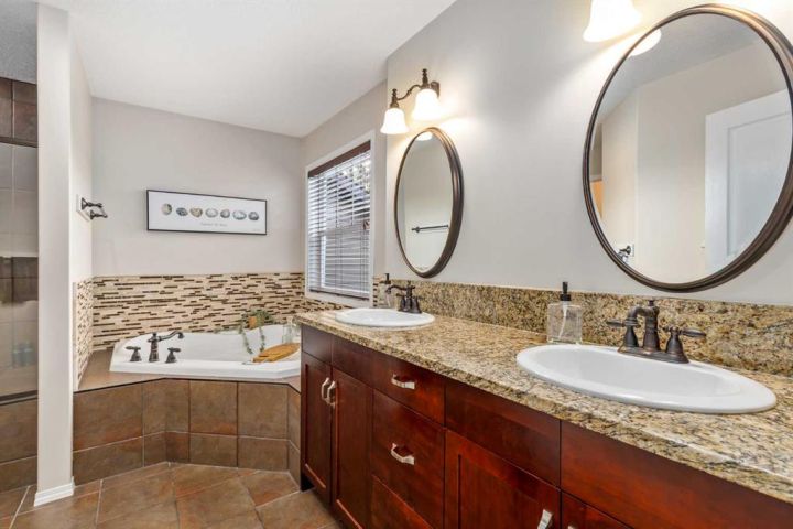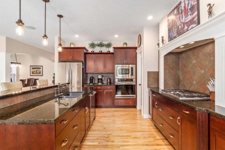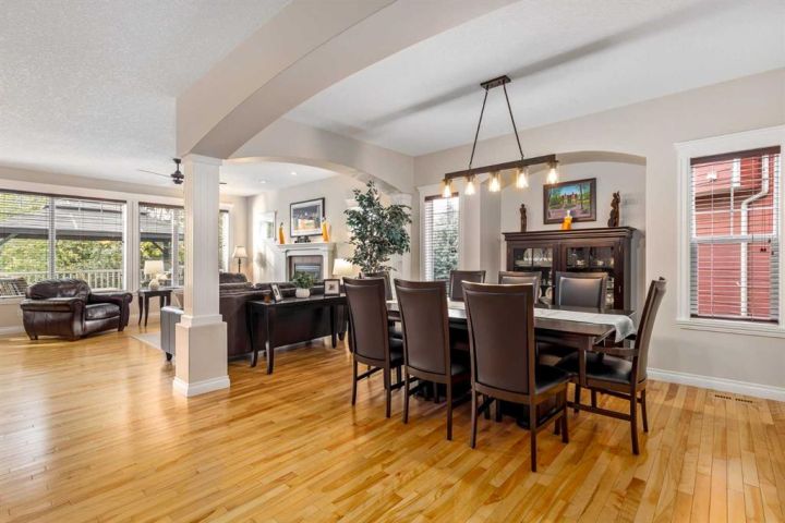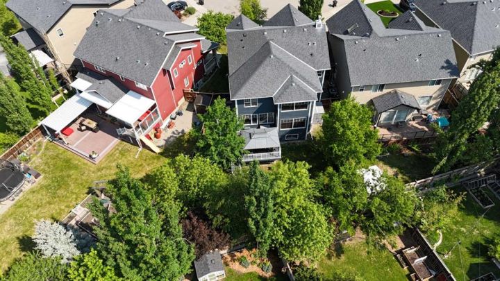 Welcome to this meticulously maintained, original-owner Morrison-built home tucked away on a quiet crescent in the heart of Auburn Bay. With an oversized pie-shaped, southwest-facing lot that’s both well-treed and private, and just four houses from the playground, this property perfectly blends family living with an unbeatable location. Step inside the vaulted front entry, where a spacious den sets the stage for a home office or study. A formal dining room with bright windows and a niche adds elegance for entertaining. At the back of the home, a welcoming family room with a central gas fireplace flows into the expansive kitchen and sunny breakfast nook. The kitchen features a large island with raised breakfast bar, gas stove, dark stained cabinetry, sleek black quartz countertops, stainless steel appliances, and a classic box-style hoodfan that gives the space an elevated, timeless feel. A built-in bar with wine rack and glass accents doubles as a coffee station, while a full pantry keeps everything organized. Blonde hardwood runs throughout the main level, and a practical mudroom with a 2-piece bath connects to the double garage. Upstairs, the vaulted bonus room offers a cozy corner fireplace and is surrounded by open railings that carry throughout the upper hallway, giving the entire level a bright, open feel. Two generously sized kids’ bedrooms, a 4-piece bath, and an upper laundry room add family-friendly convenience. The primary retreat is a showstopper with dual French doors, a bay-window sitting area, massive walk-in closet, and a spa-inspired ensuite featuring dual sinks with granite counters, a large corner soaker tub, and a stand-alone shower. The fully finished basement offers even more living space with a large rec room (with barn door separation), a full-sized bedroom, 4-piece bath, sunshine windows, and loads of storage. Berber carpet throughout adds warmth, while central A/C keeps the home comfortable year-round. Outside is where this home truly shines. The oversized, pie-shaped lot is surrounded by mature trees, offering privacy and serenity rarely found in the community. A large back deck with gazebo overlooks the yard, while a smartly designed dog run extends directly from the deck for ultimate convenience. With a southwest-facing backyard, you’ll enjoy sun all day and evening — perfect for summer gatherings. And of course, life in Auburn Bay means year-round lake access and endless recreation: swimming, paddleboarding, skating, fishing, and more. Add in schools, parks, shopping, restaurants, the South Health Campus, YMCA, and easy access to Deerfoot and Stoney Trail — and you’ve found a community that offers it all. This is more than a home. It’s a lifestyle in one of Calgary’s most desirable lake communities.