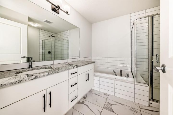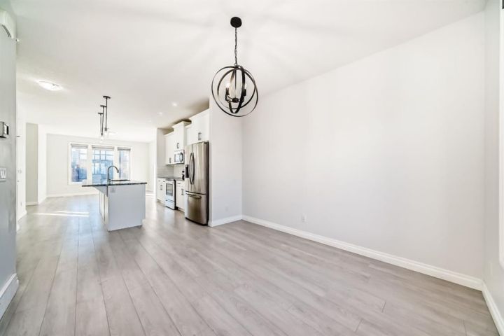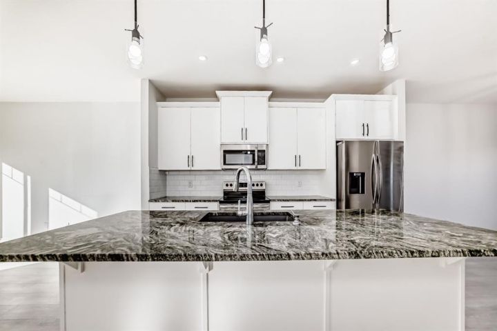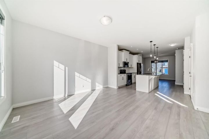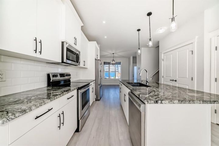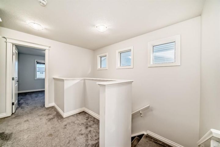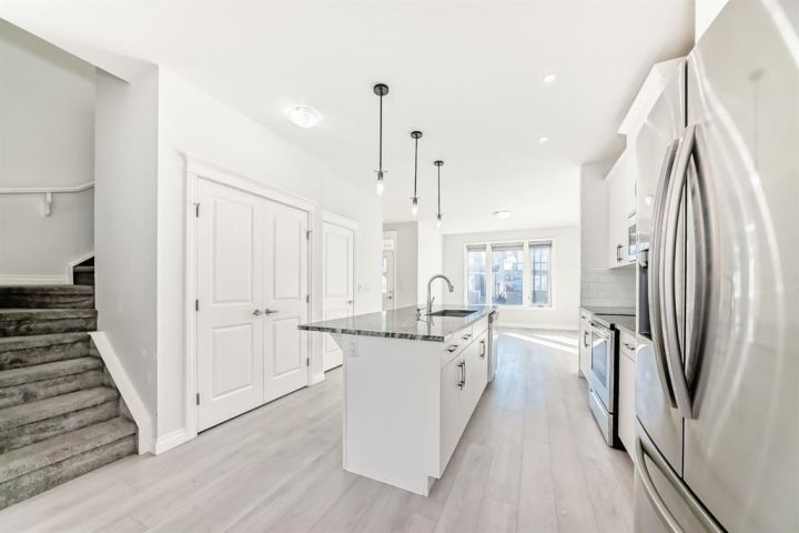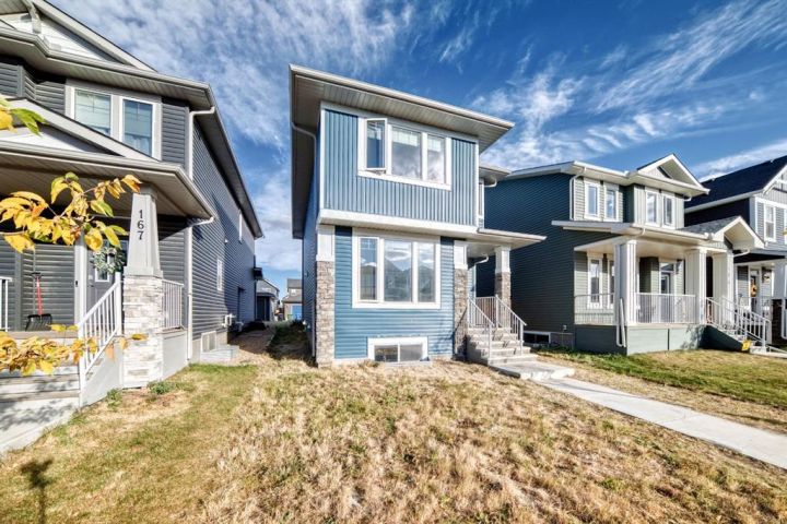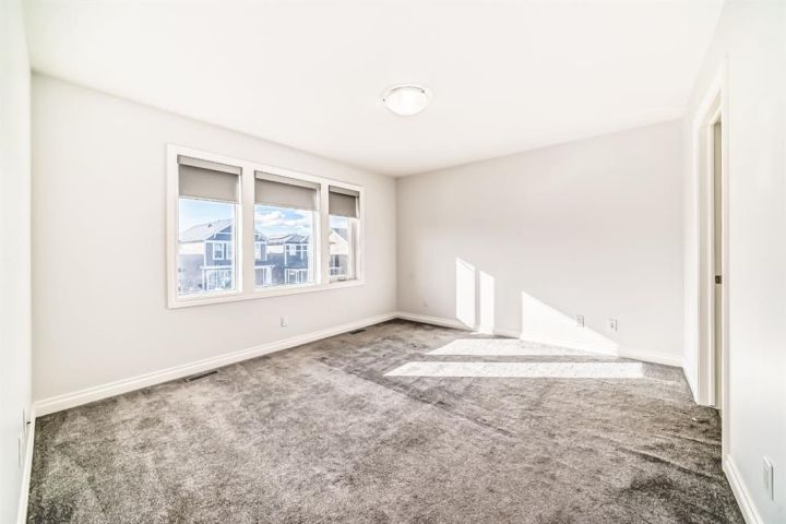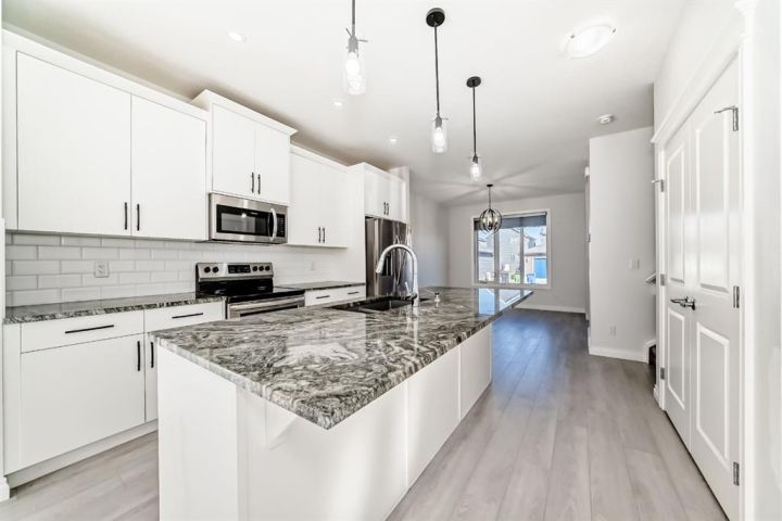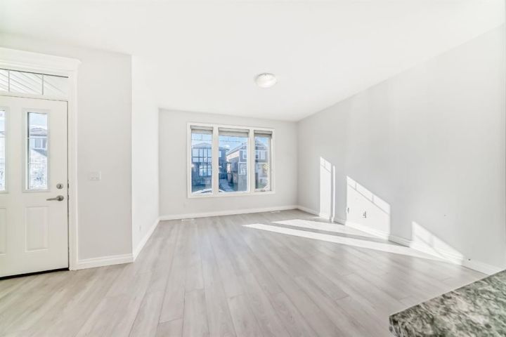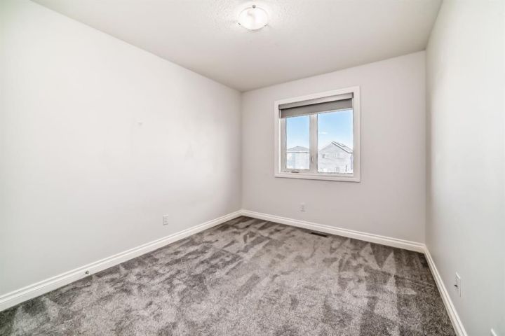 Step into this beautiful home in the charming community of Evanston! This 3-bedroom, 2.5-bathroom house perfectly blends style, comfort, and functionality. The main floor welcomes you with a bright and open living space, ideal for family gatherings or entertaining guests. The modern kitchen features stainless steel appliances, a large island, and a pantry, seamlessly connecting to the dining and living areas. Large windows flood the space with natural light, creating a warm and inviting atmosphere. A convenient powder room completes the main level. Upstairs, the primary bedroom is your private retreat with an ensuite and walk-in closet, while the two additional bedrooms are spacious and versatile. Common bathroom and upstairs laundry add to the home's convenience. The unfinished basement comes with a separate entrance, 9-foot ceilings, and rough-ins, offering plenty of options to create the space of your dreams. Located close to shopping plazas, parks, playgrounds, walk-in clinics, and easy access to Stoney Trail, this home combines modern living with community convenience. Be the first to make this gorgeous house your dream home!