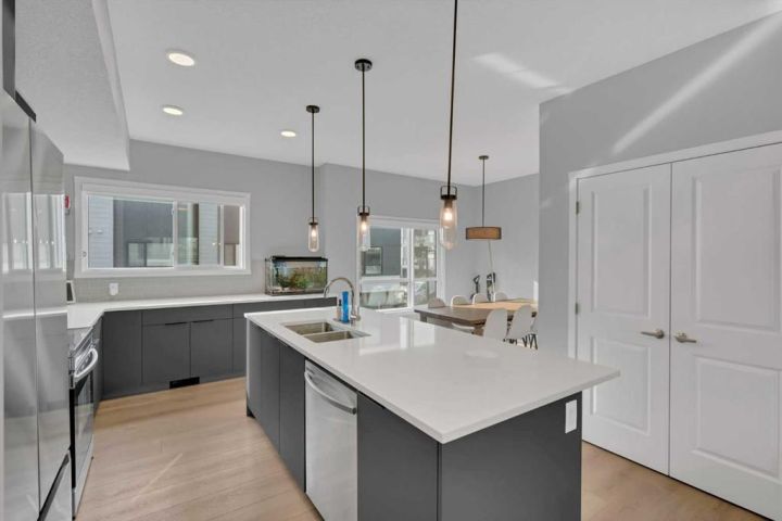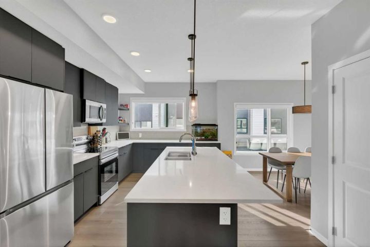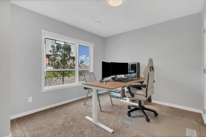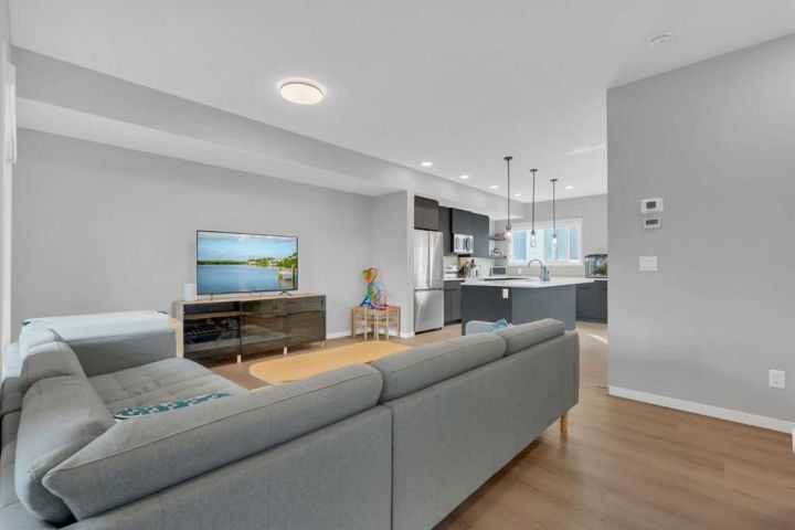 Looking for a beautifully appointed townhome in South Calgary? Look no further! This prestigious 3-bedroom plus an office/den townhouse in the vibrant, family-oriented community of Seton is a must-see. Perfectly situated near the South Health Campus Hospital, top-rated schools, shopping, restaurants, and parks, this home offers the ideal balance of comfort and convenience. Recently built and thoughtfully upgraded, this home features: Central Air Conditioning, an oversized, fully insulated and drywalled 2-car garage with remote opener and an Instant hot water tank for added efficiency. The main floor welcomes you with a bright open-concept layout. The elegant kitchen showcases stylish cabinetry, stainless steel appliances, modern countertops, and a chic backsplash. It flows seamlessly into the dining area, highlighted by a large south-facing window that fills the space with natural sunlight throughout the day. The spacious living room opens through patio doors to a balcony—perfect for entertaining while enjoying the peaceful views. A powder room completes this level. Upstairs, retreat to the primary suite, featuring a walk-in closet and a luxurious ensuite with a standing shower and double vanity. Two additional bedrooms, a 4-piece main bath, and a roomy laundry area add convenience for family living. A bonus den/home office provides the perfect space for working from home or extra family needs. The neighborhood is walkable, beautifully landscaped, and just steps from serene wet ponds, walking/biking paths, and nature at your doorstep. Everyday essentials—grocery stores, cafés, parks, and transit—are all close by. Your family will fall in love with this home! Contact us today to schedule a private showing—this one won’t last long.