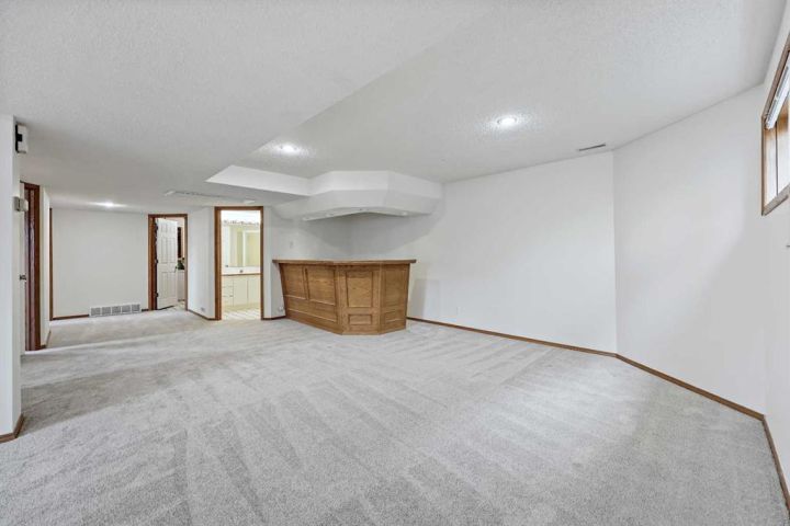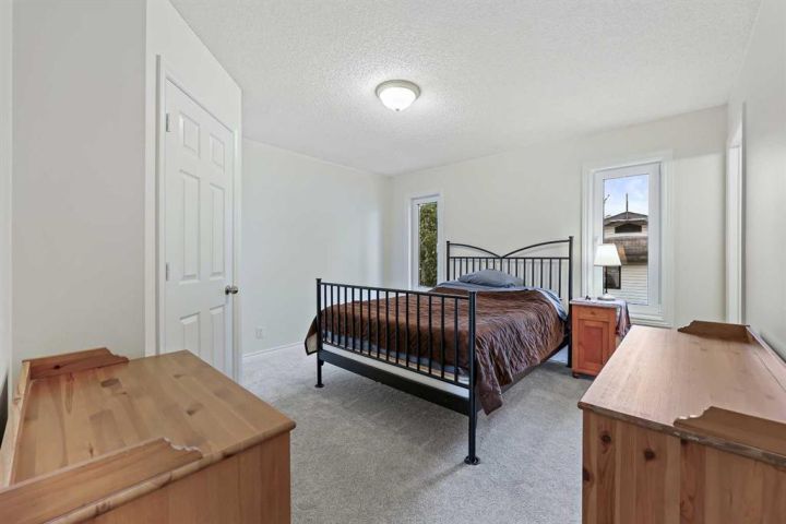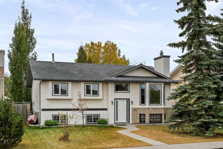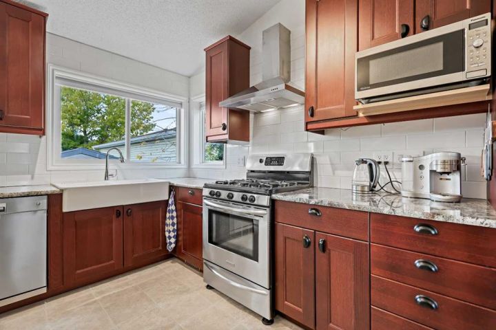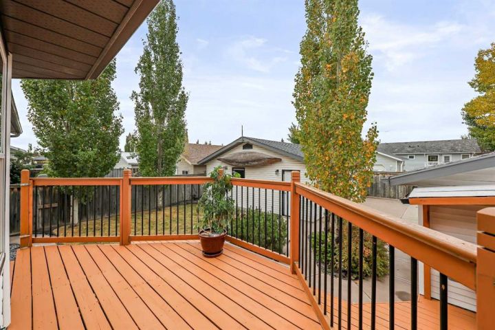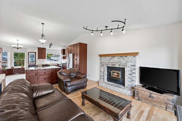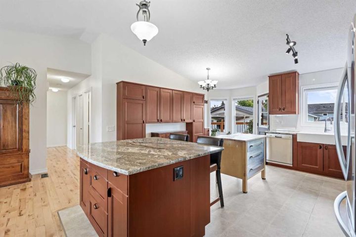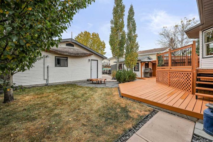 A fully developed (i.e. 2,334 sq ft total) and extensively improved 4-bedroom bi-level nestled into the heart of a mature, well-established neighbourhood; offering exceptional curb appeal & move-in ready comfort. Big bright front foyer leads into an open main floor plan with sky-high vaulted ceiling, spacious living room with wood-burning fireplace, newer kitchen with granite counters/island/breakfast bar/upgraded stainless steel appliances (i.e. including gas stove & double door fridge)/farm sink overlooking backyard/plenty of counter/cupboard space, dining area, primary bedroom with large walk-in closet/ensuite, 2 additional bedrooms and full 4-piece bathroom. Lower level is fully developed to include family room with gas fireplace, wet bar, a substantial 4th bedroom, bathroom, laundry and storage. Large private mature SW-facing backyard, complete with freshly painted upper (8' X 11') and lower (11' X 19') decks (i.e. lower being partially covered), a substantial storage shed and swing gate access to/from alley leading to concrete RV/trailer/toy parking pad. The true oversized (i.e. 23' X 23') double detached garage is an absolute standout: heated/insulated/ 240V-equipped/built-in workbenches/shelves/storage and offering drive-through access via rear overhead door (i.e. from alley), side barn door (i.e. to/from concrete parking pad in yard) and front man-door entries for unmatched accessibility, versatility and storage. Extensive list of recent upgrades includes: New windows, new front door, new light fixtures, new flooring, newer roof, newer high-efficiency furnace, newer water heater & softener, newer appliances & fresh professional paint throughout. Whether you’re a growing family, downsizer, or toy enthusiast, this home delivers the space and upgraded style in one complete package. Don't miss out; book your private showing today.